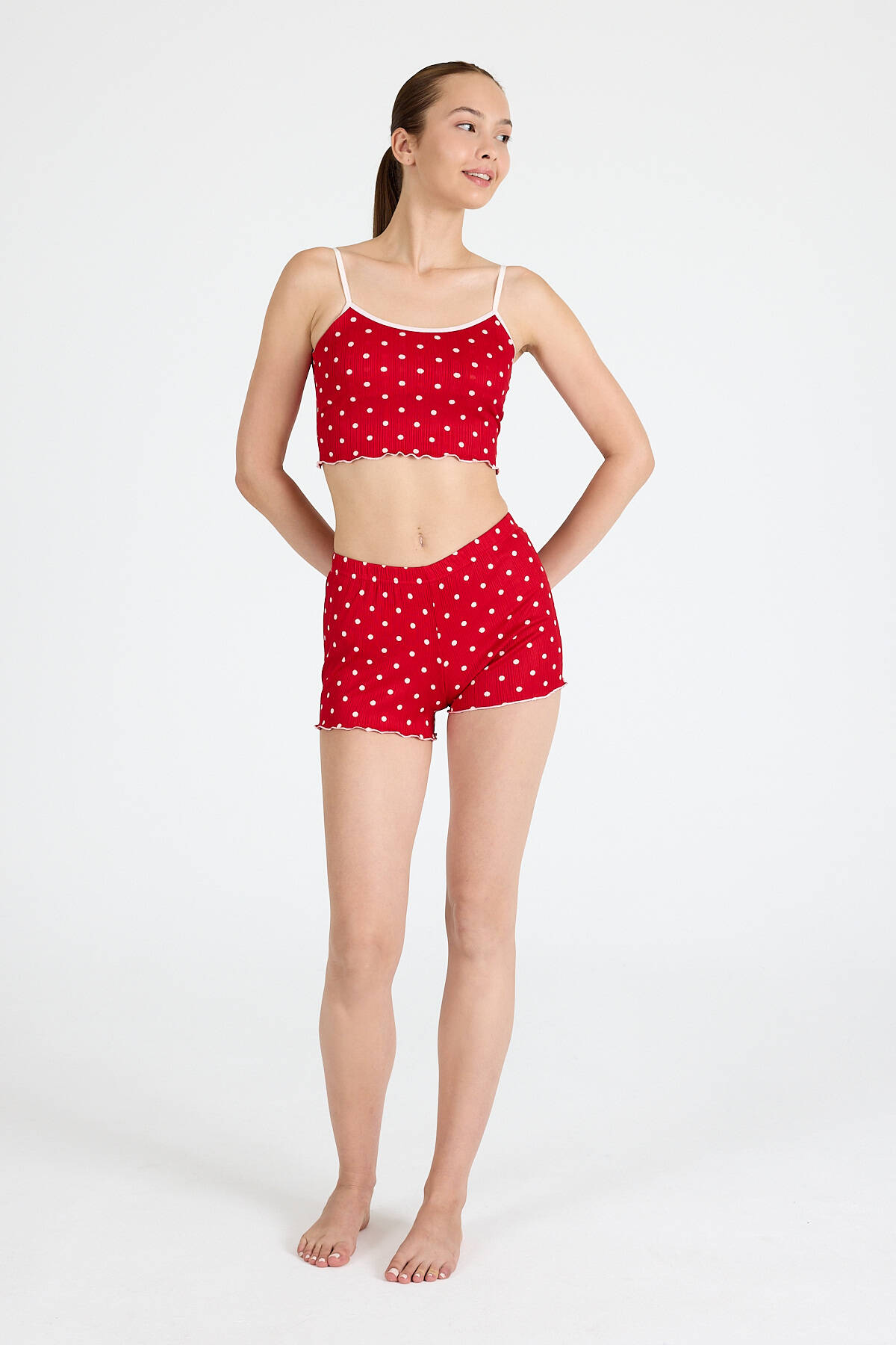Kırmızı Puantiye Desenli Atlet Şort Takım 3404