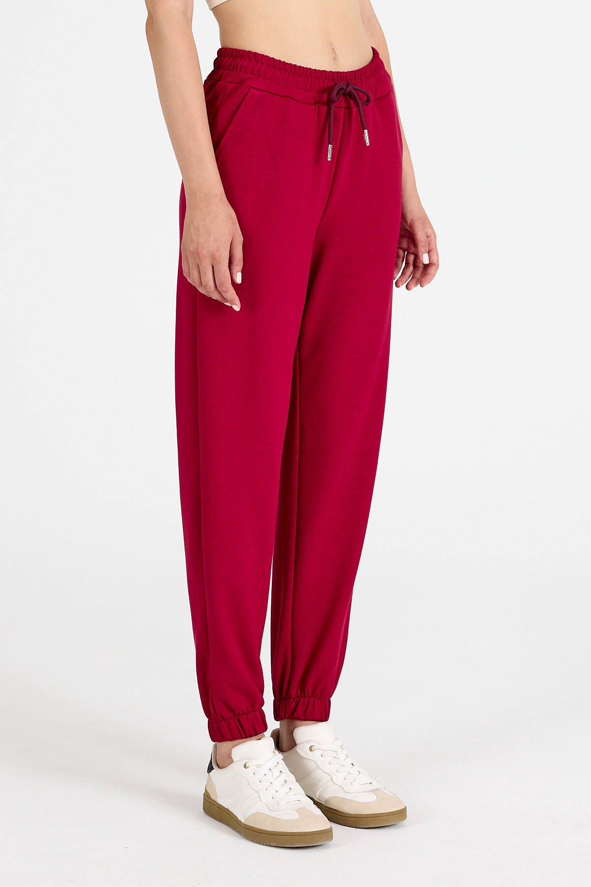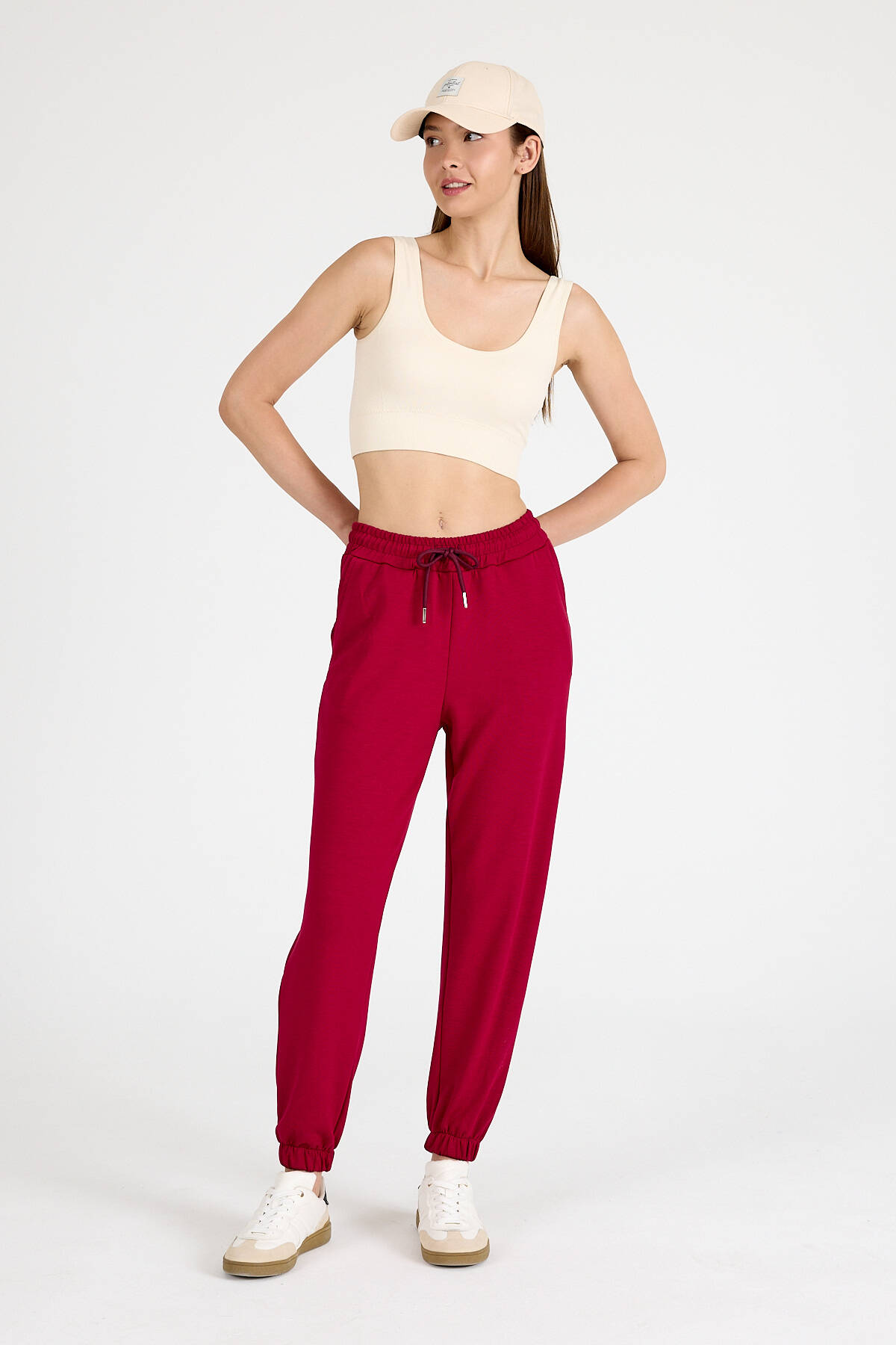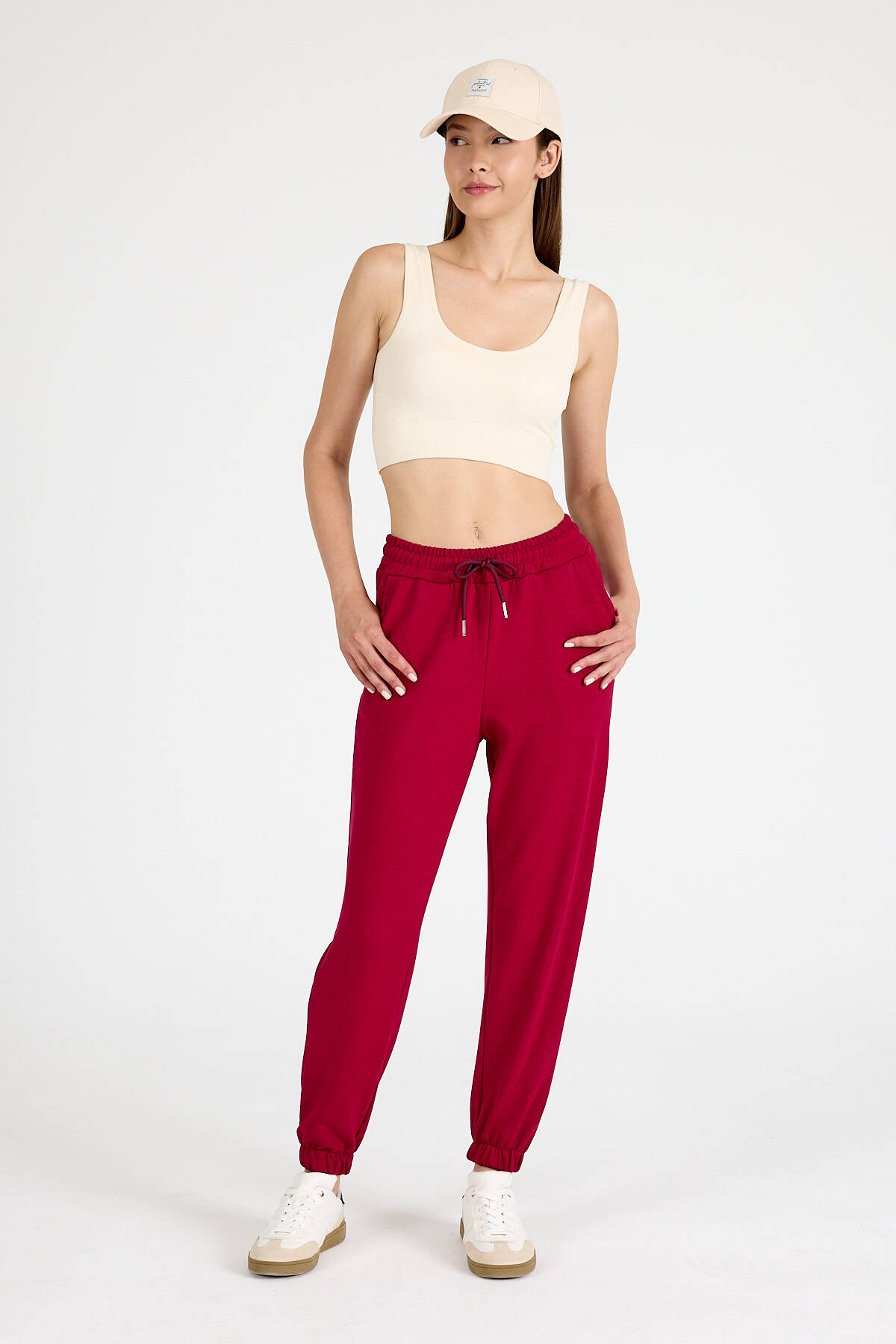 Kırmızı Yumuşak Dokulu Esnek Premium Kumaş Rahat Kalıp Eşofman Altı 8242