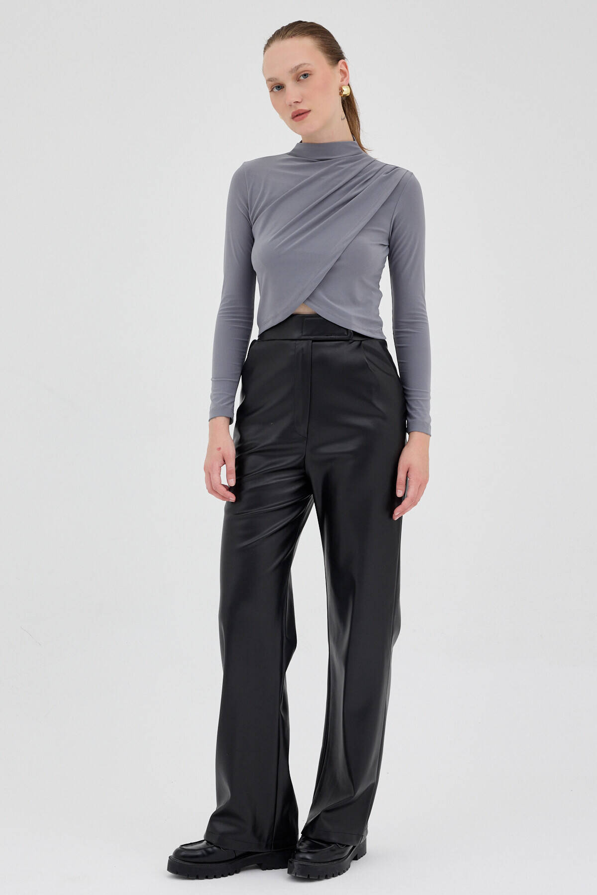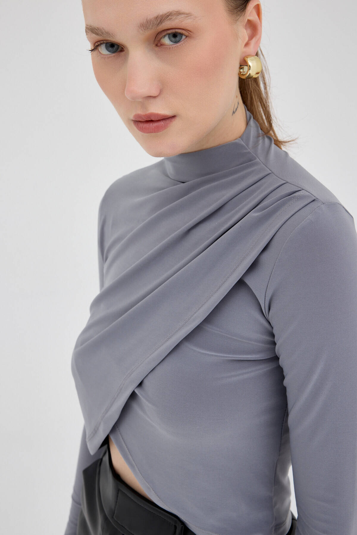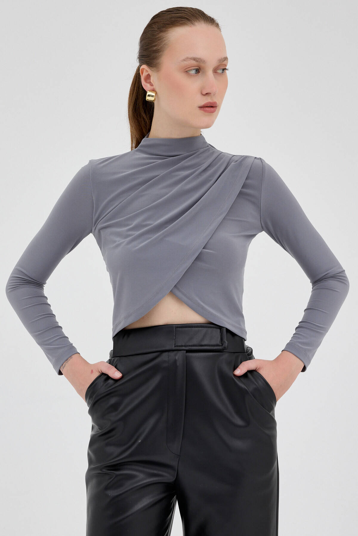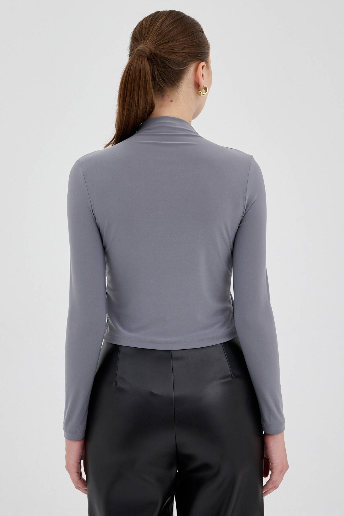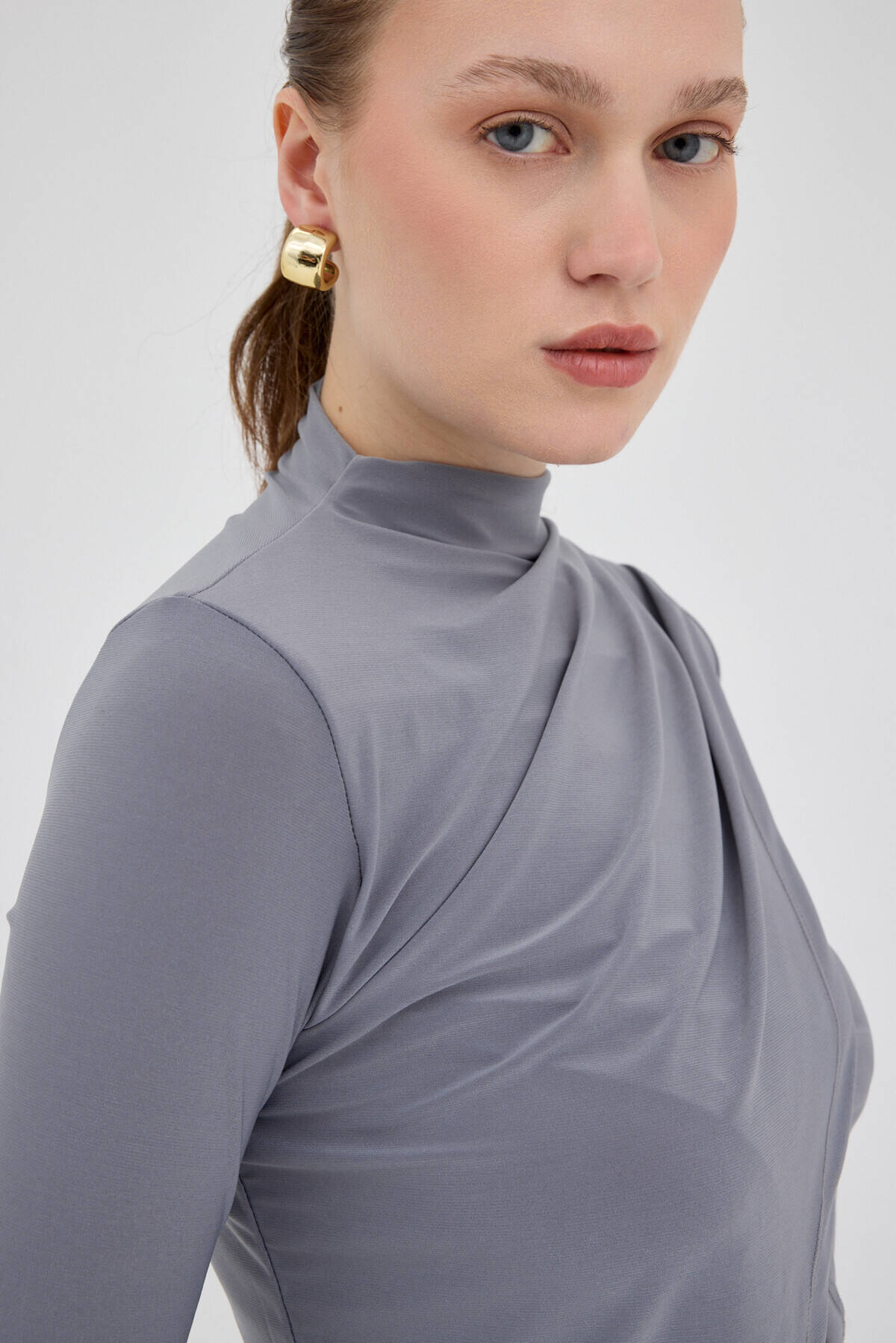 Koyu Gri Drapeli Yüksek Yaka Uzun Kollu Bluz 2379