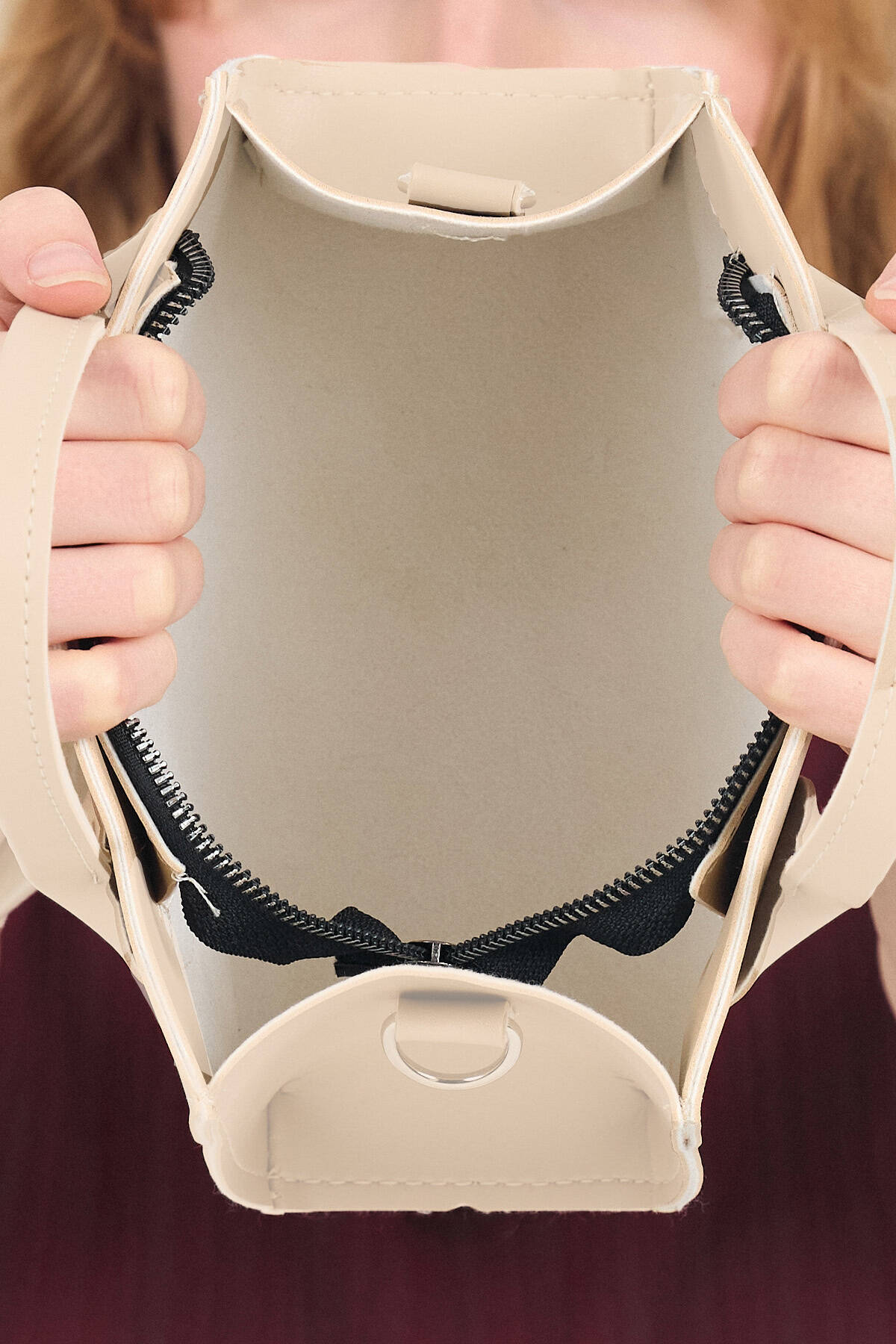 Bej Kapüşonlu Cepli Fermuarlı Kap 4572A