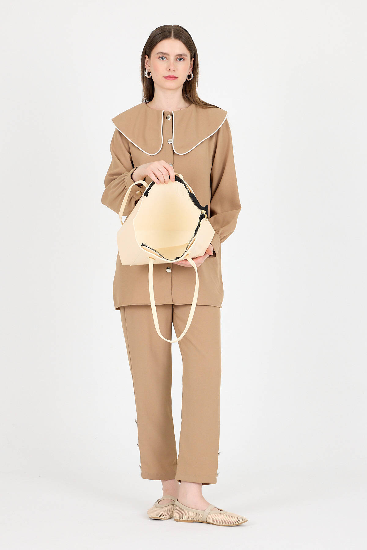Krem Dikiş Detaylı Omuz Çantası 9212
