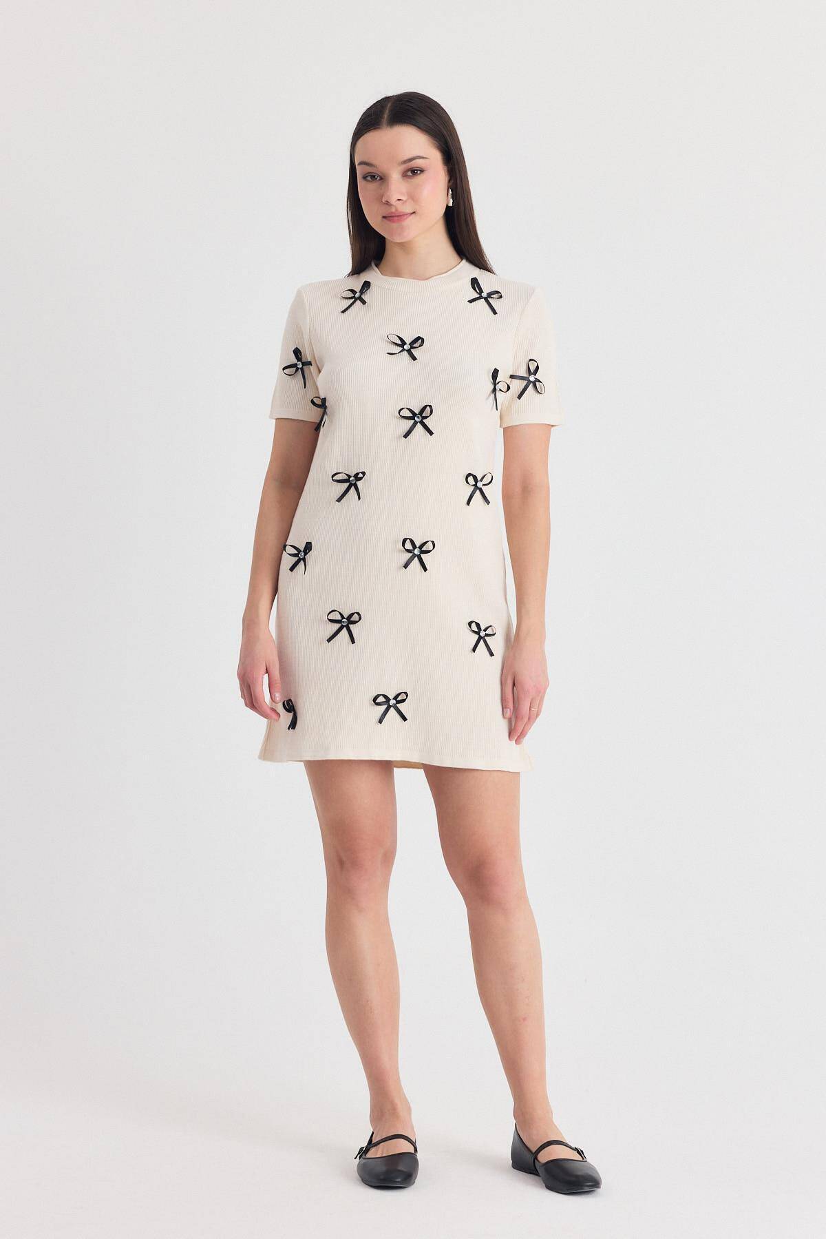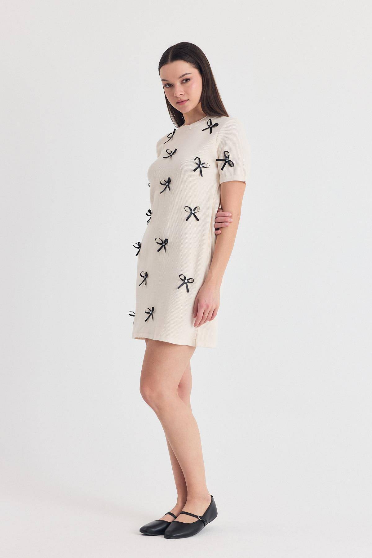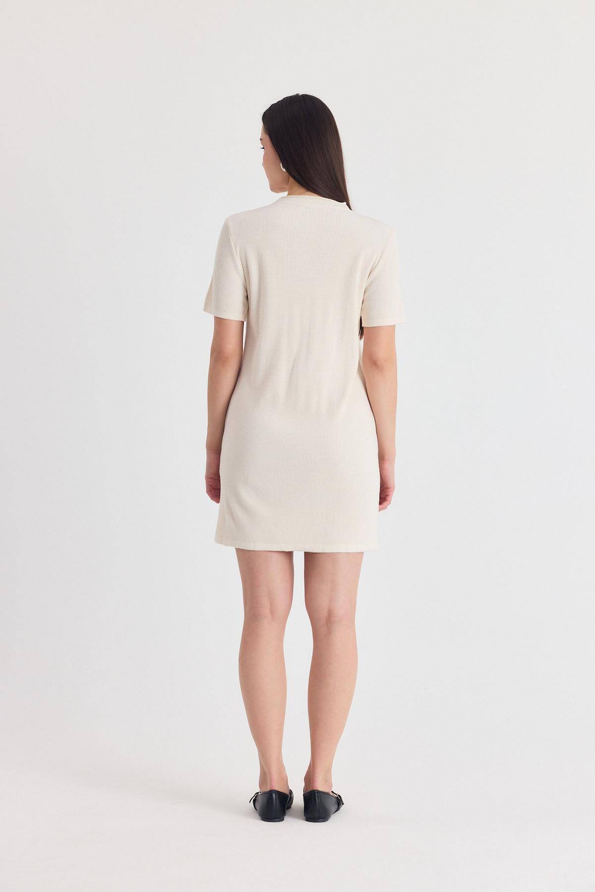 Krem Kurdela Detay Triko Elbise 2117