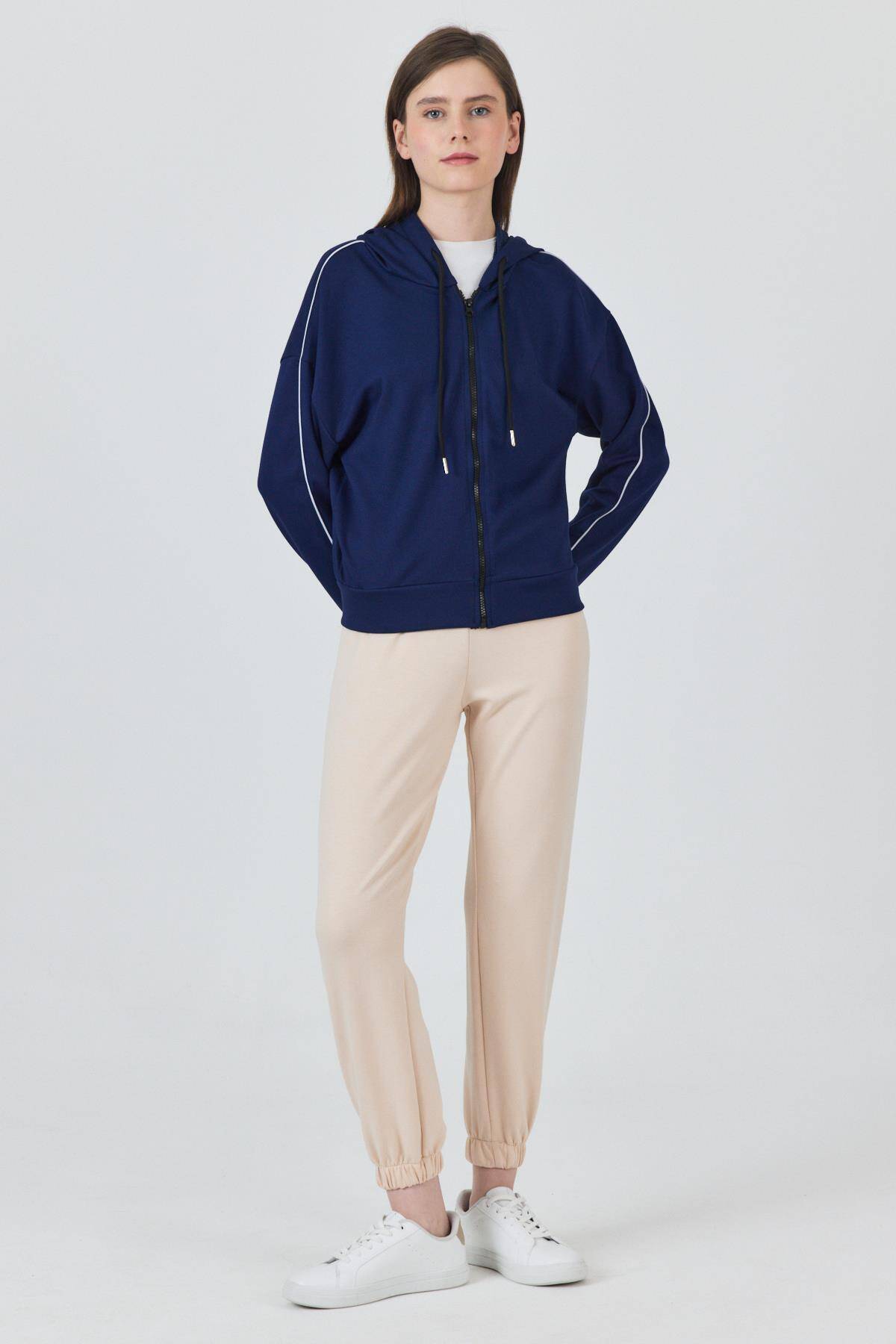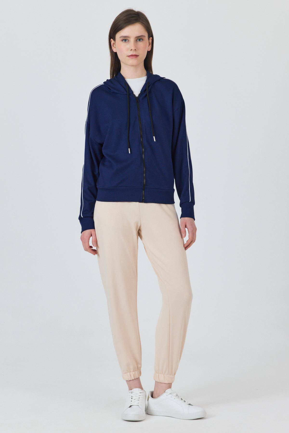 Laci Fermuarlı Kapüşonlu Şerit Detaylı Sweatshirt 3045