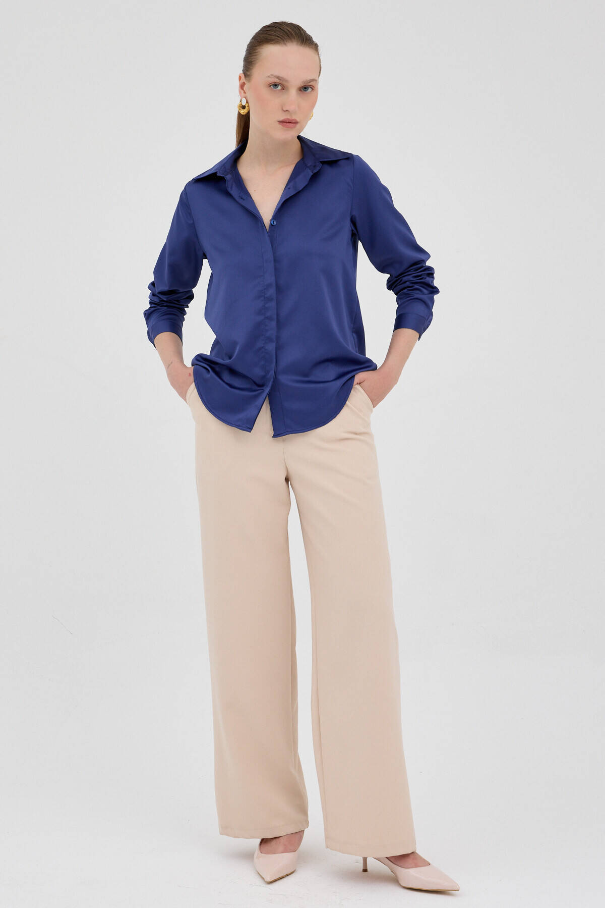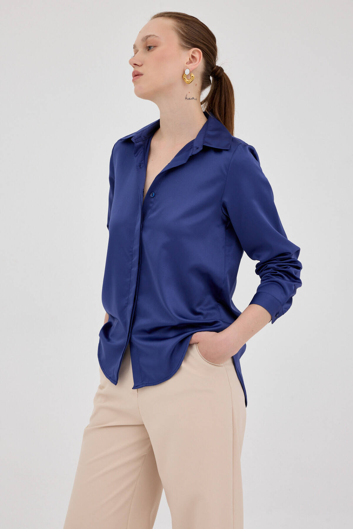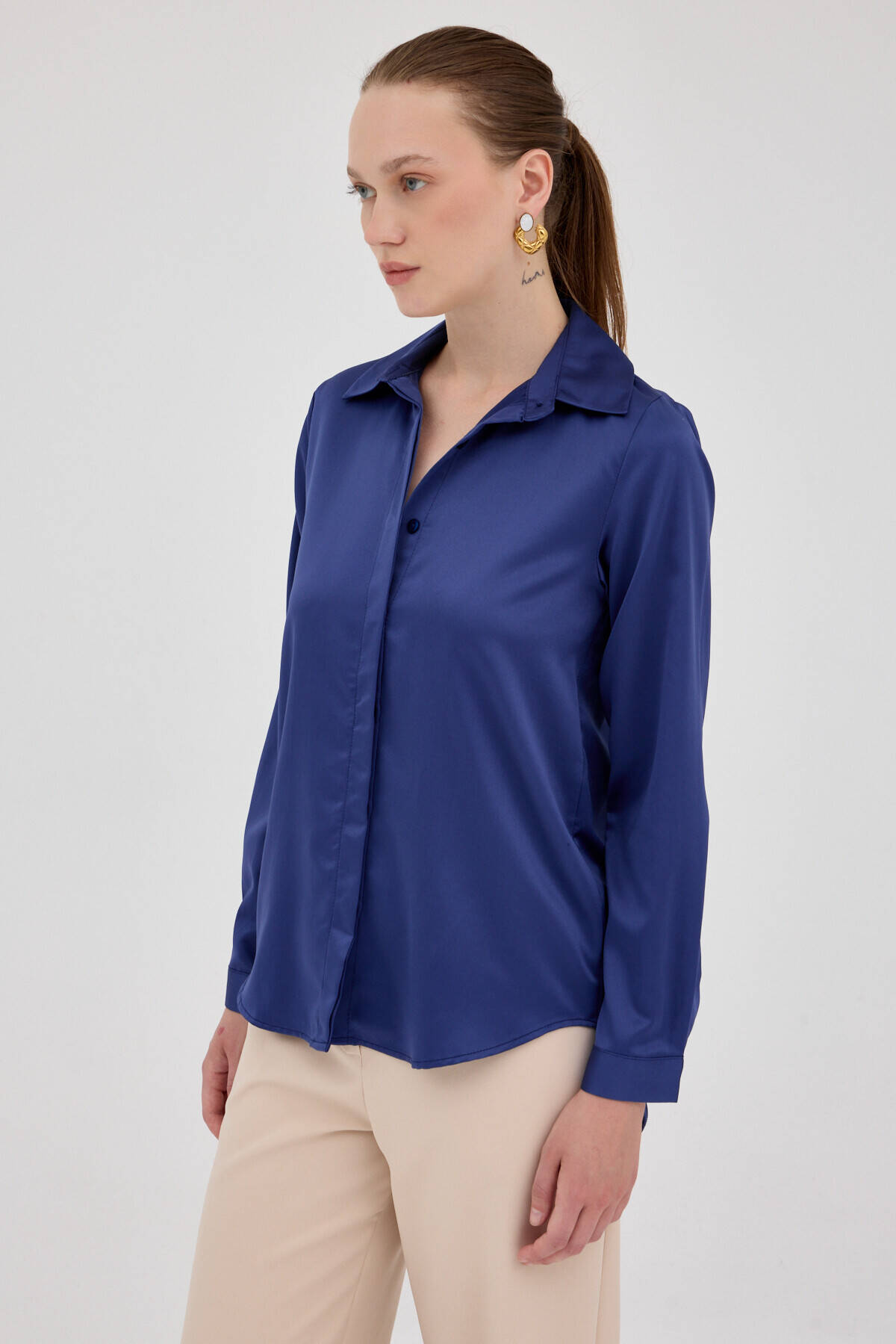 Laci Gizli Düğmeli Saten Kadın Gömlek 4057A