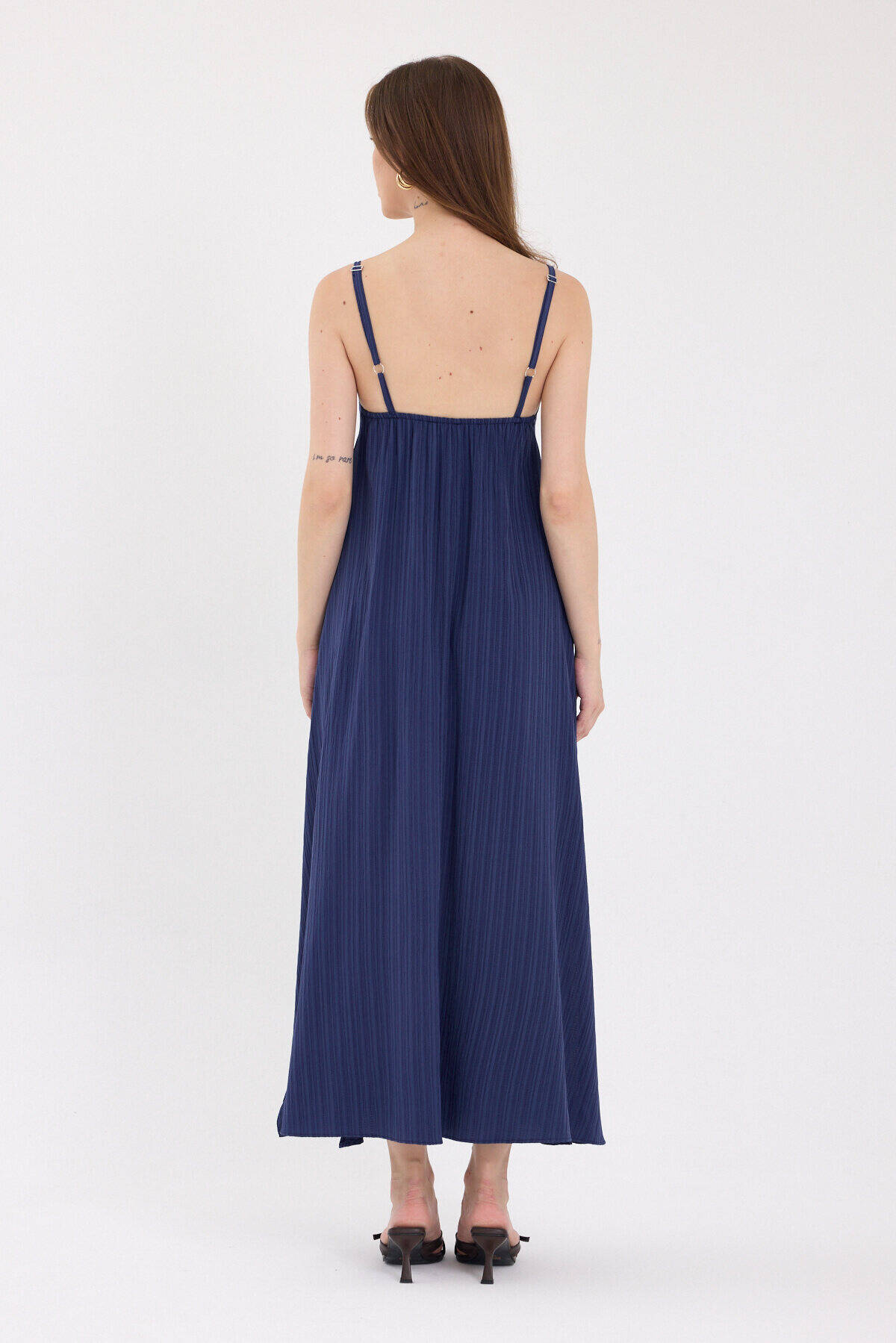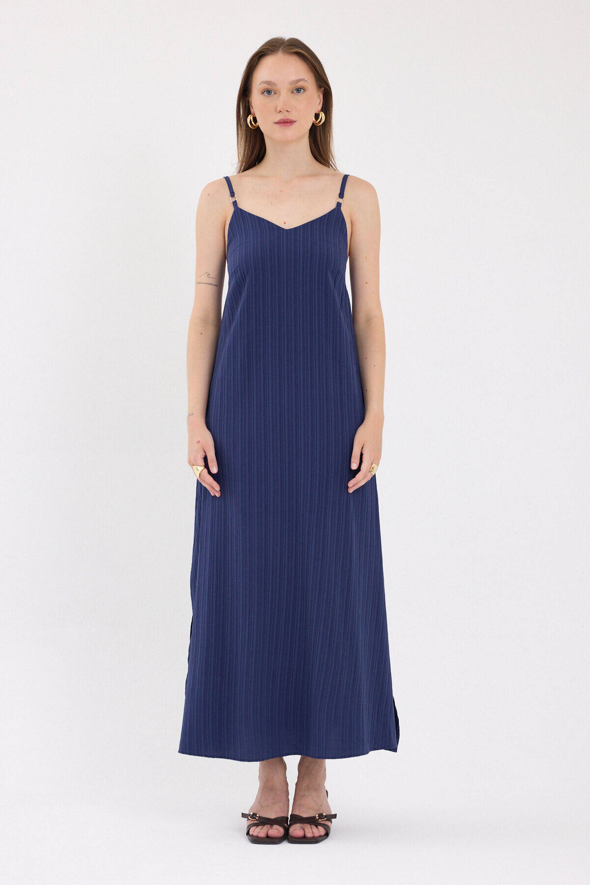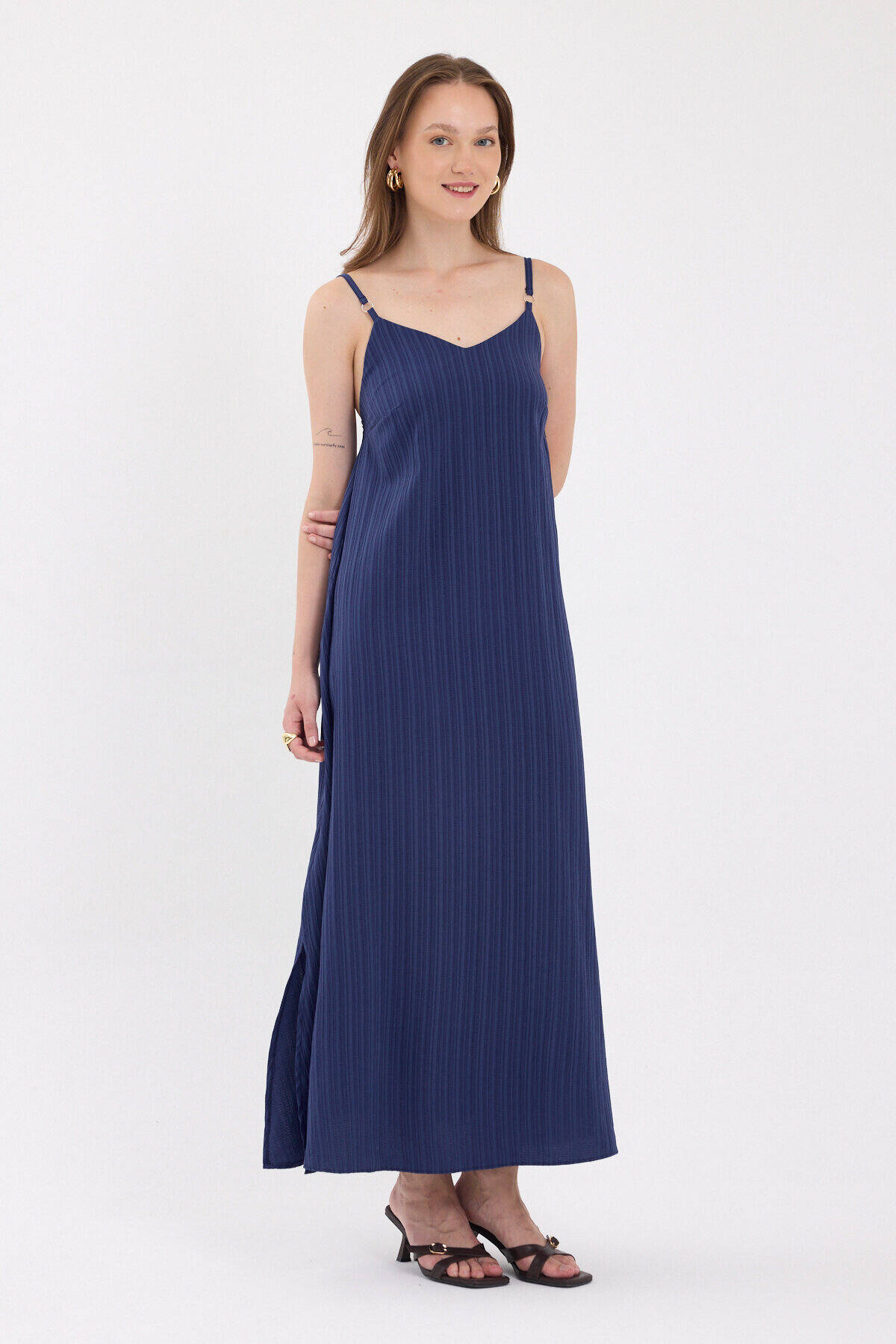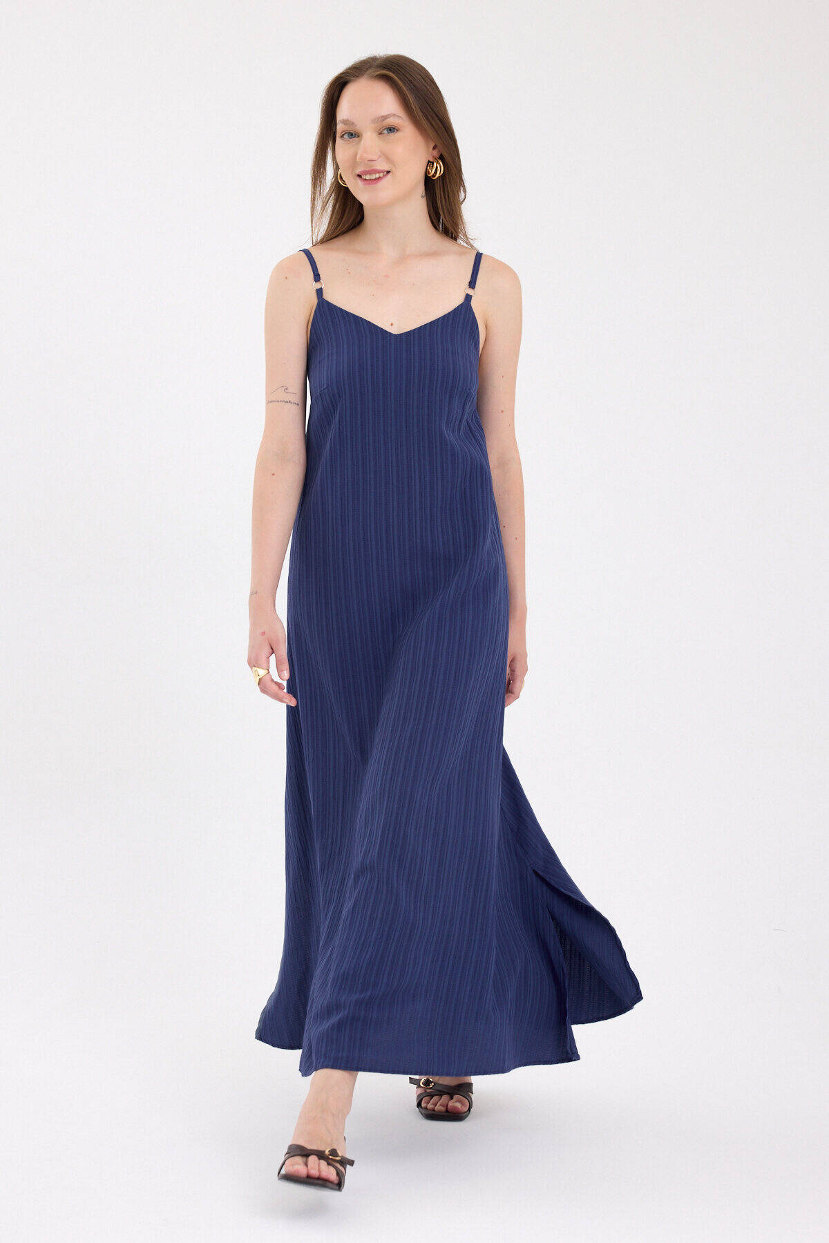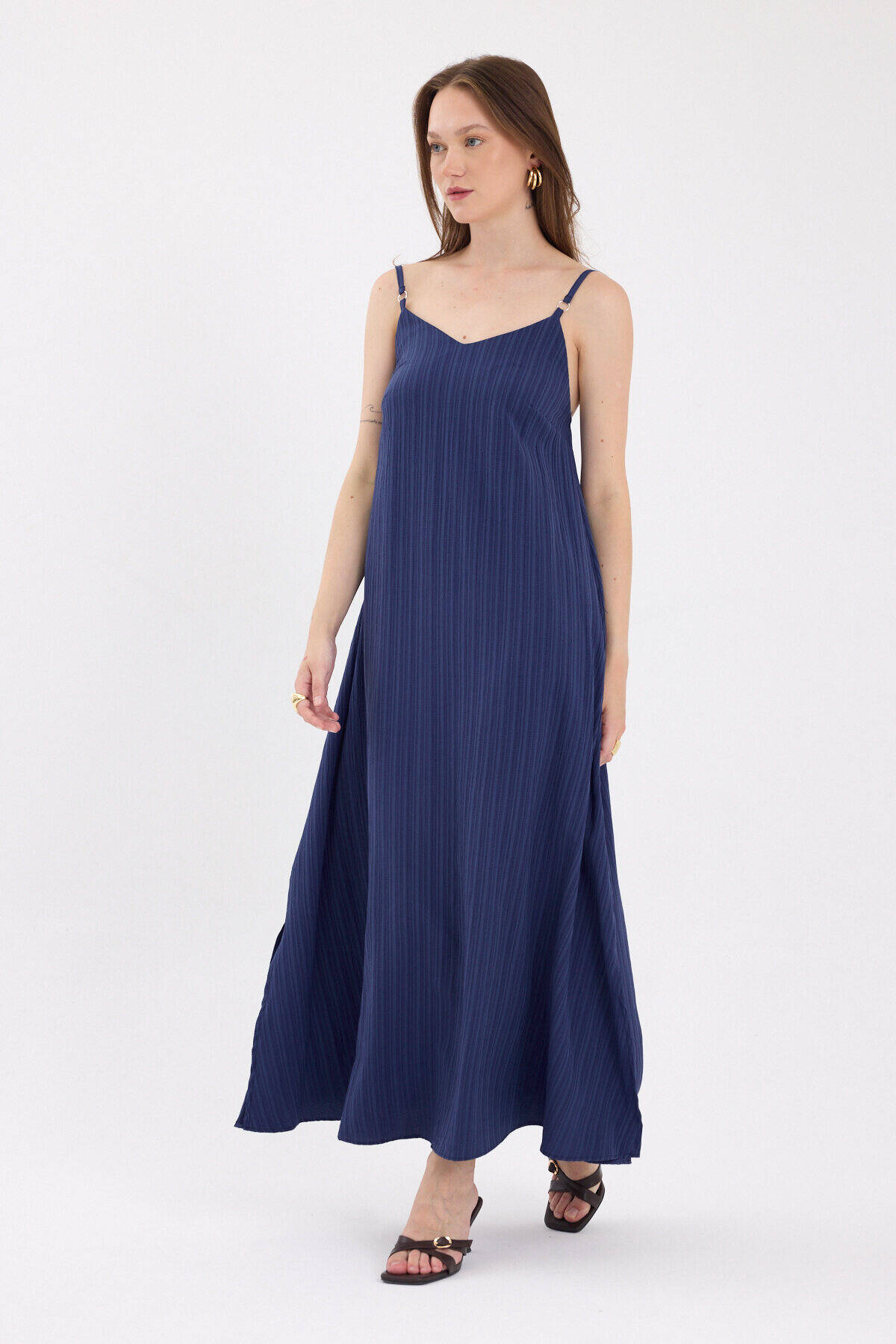 Laci İnce Askılı V Yaka Uzun Elbise 8026A