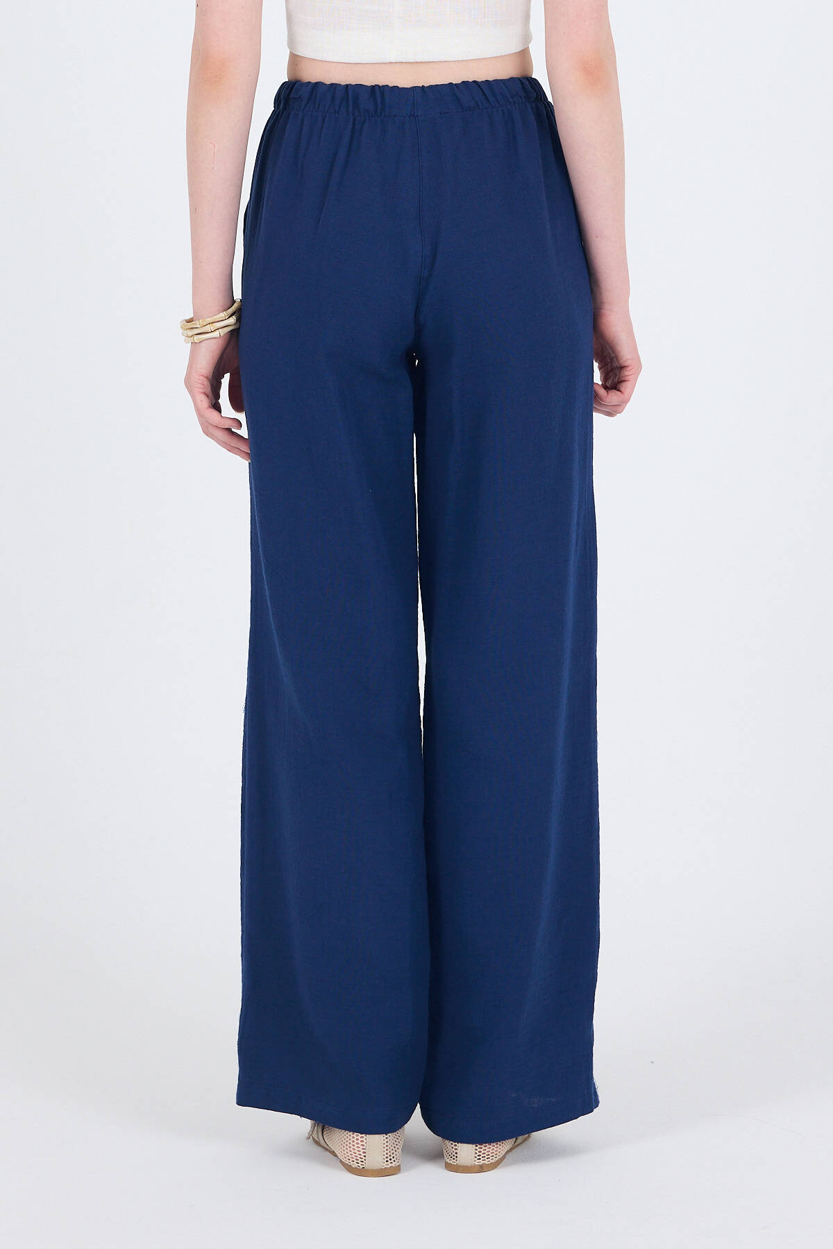 Laci Keten Görünümlü %100 Pamuk Cepli Bol Paça Pantolon 8054A