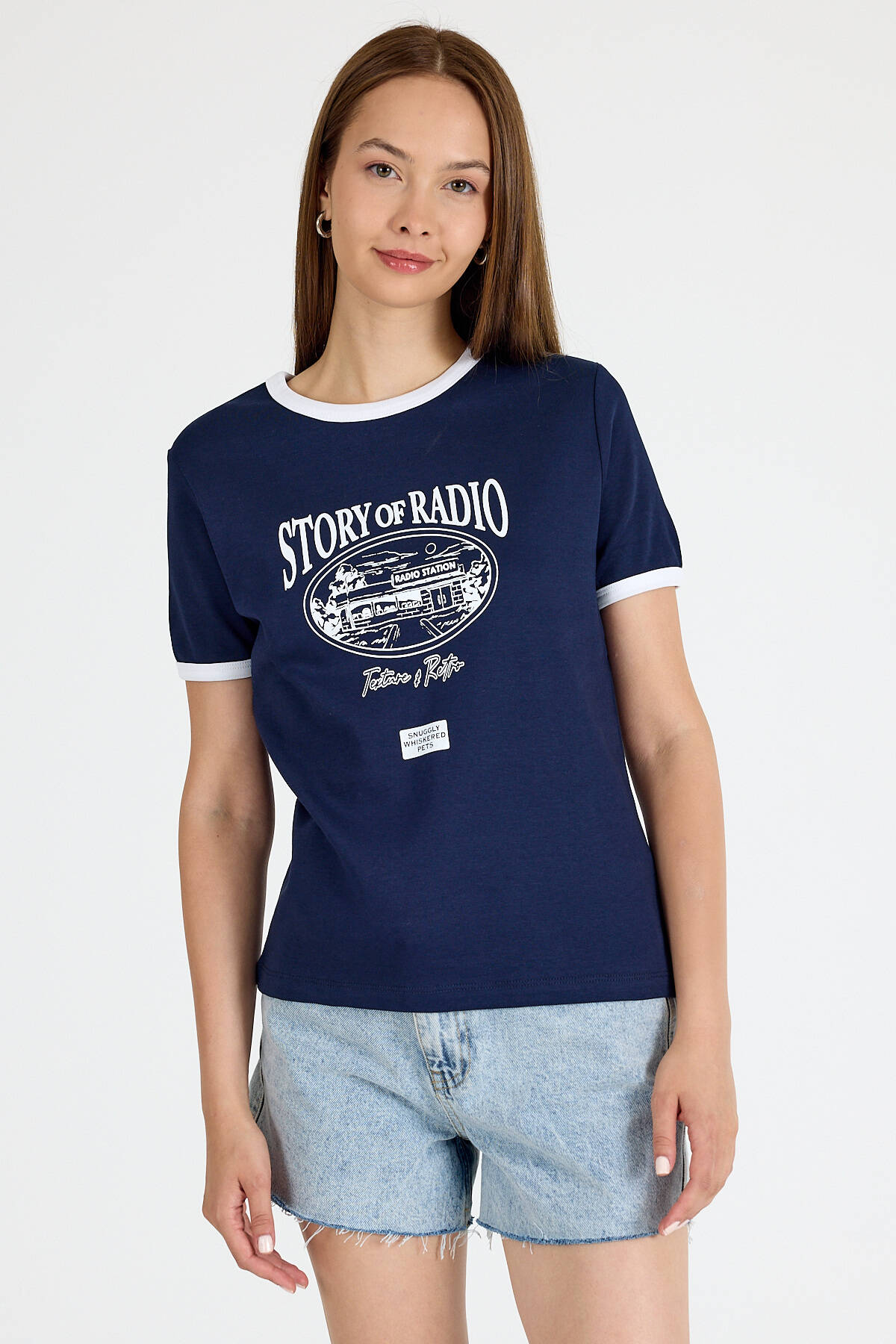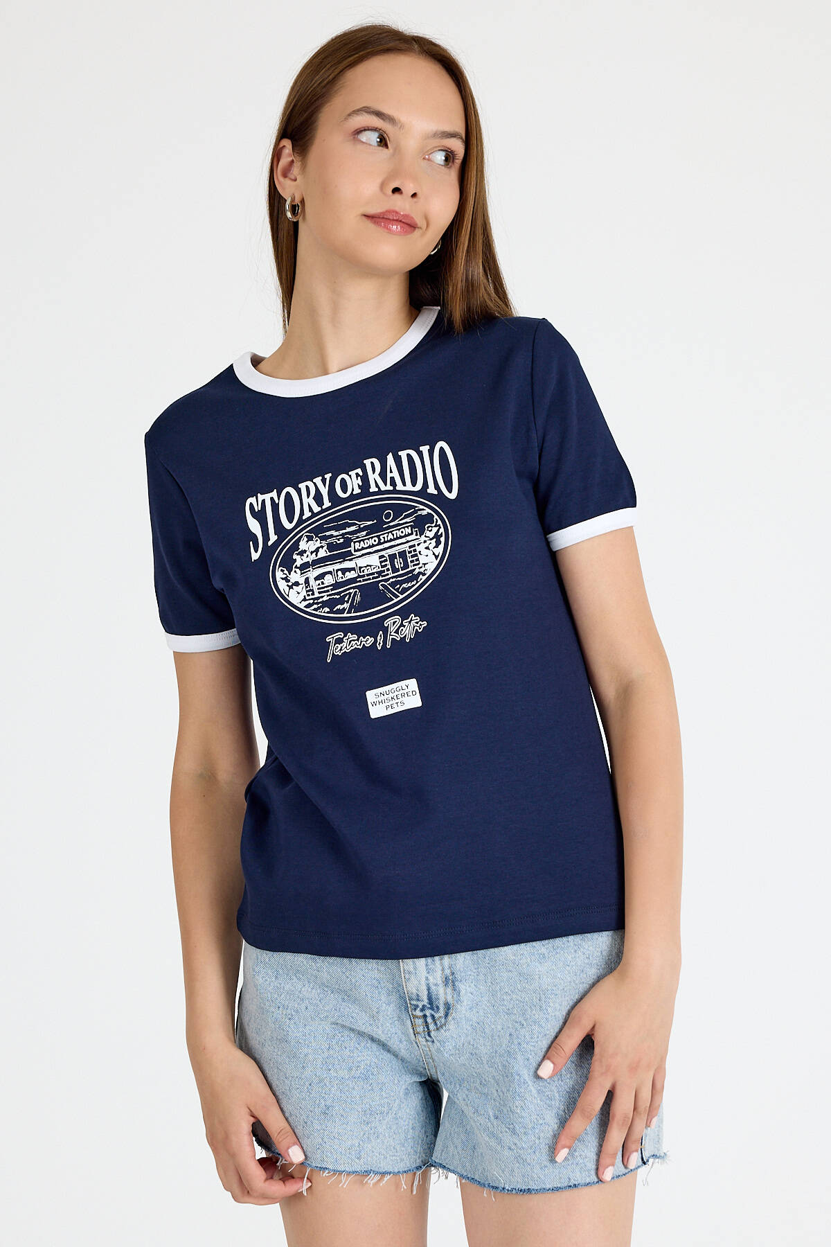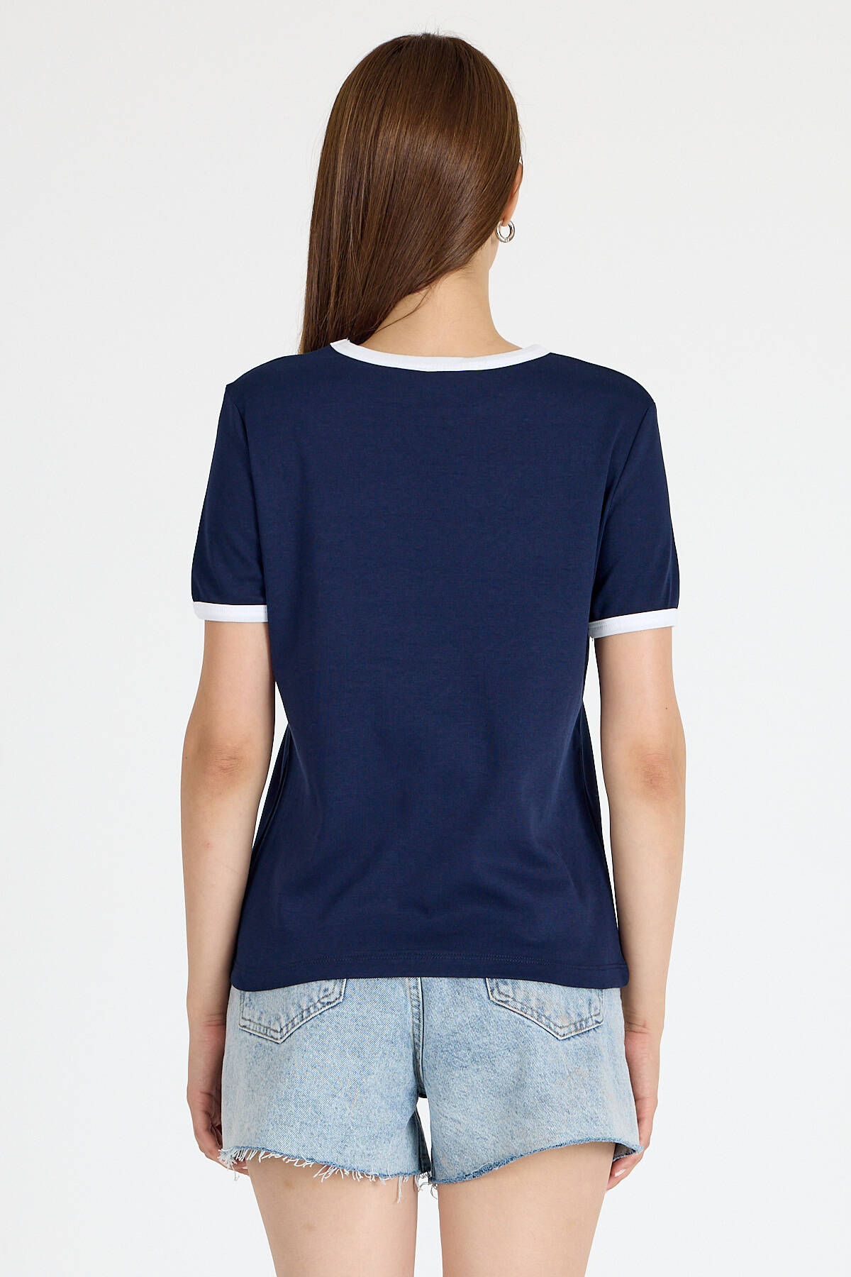 Laci Ribana Yaka ve Kol Detaylı Yazı Baskılı Tişört 5875