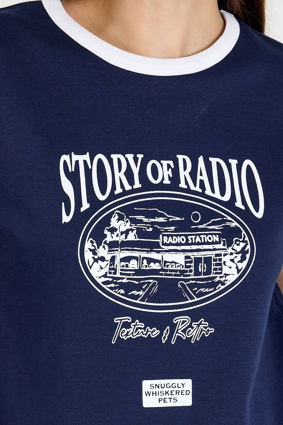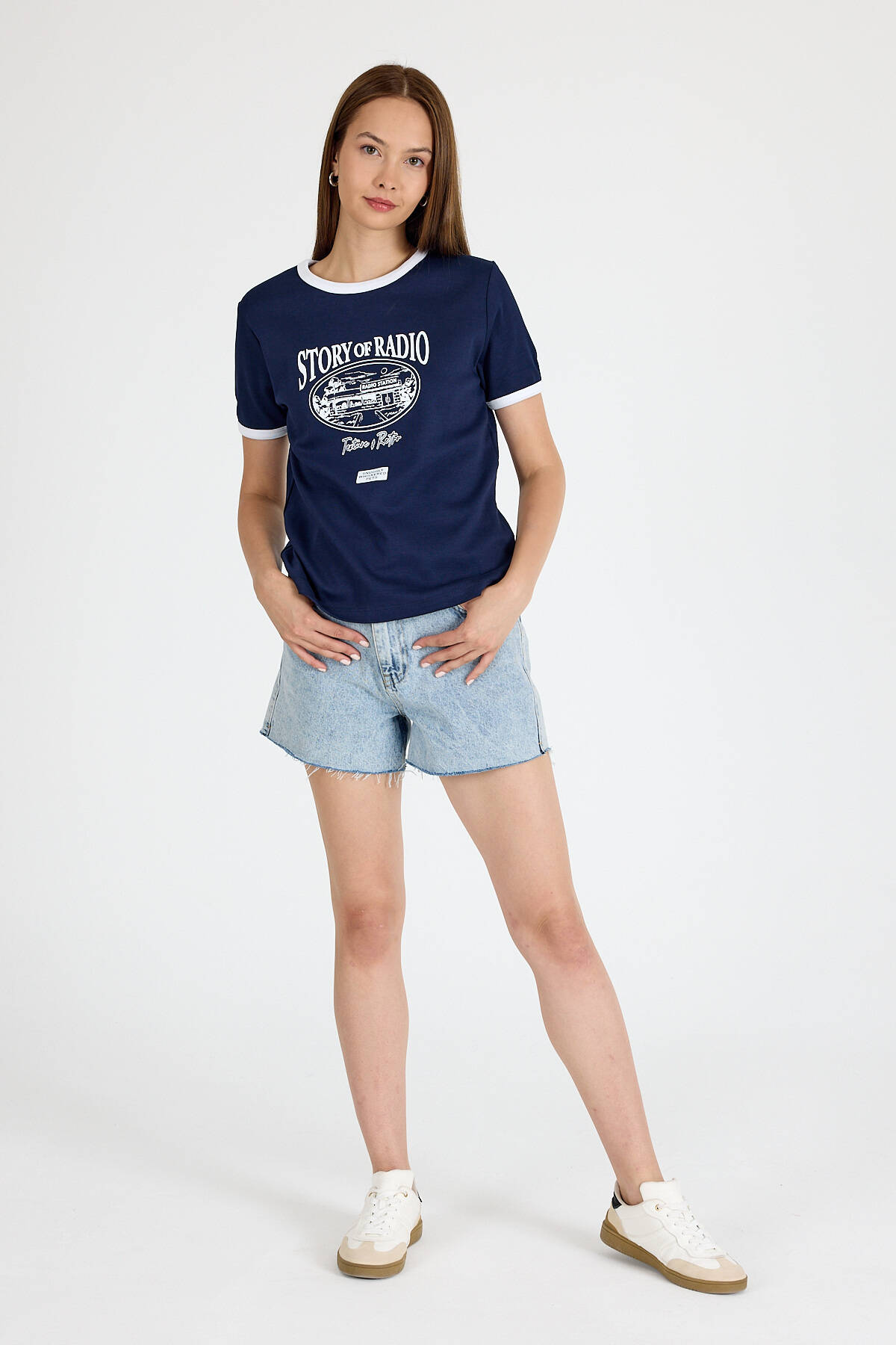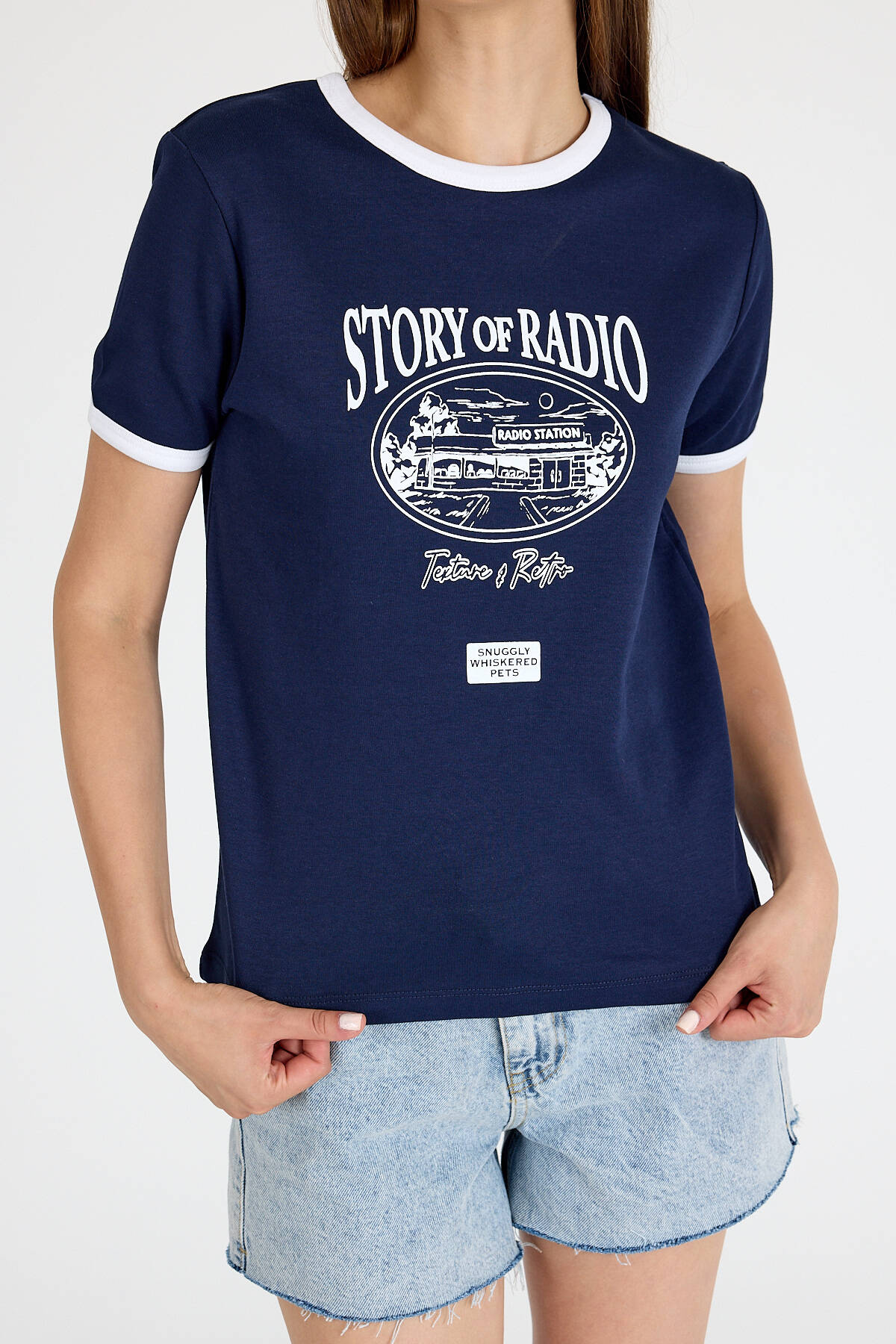 Laci Ribana Yaka ve Kol Detaylı Yazı Baskılı Tişört 5875