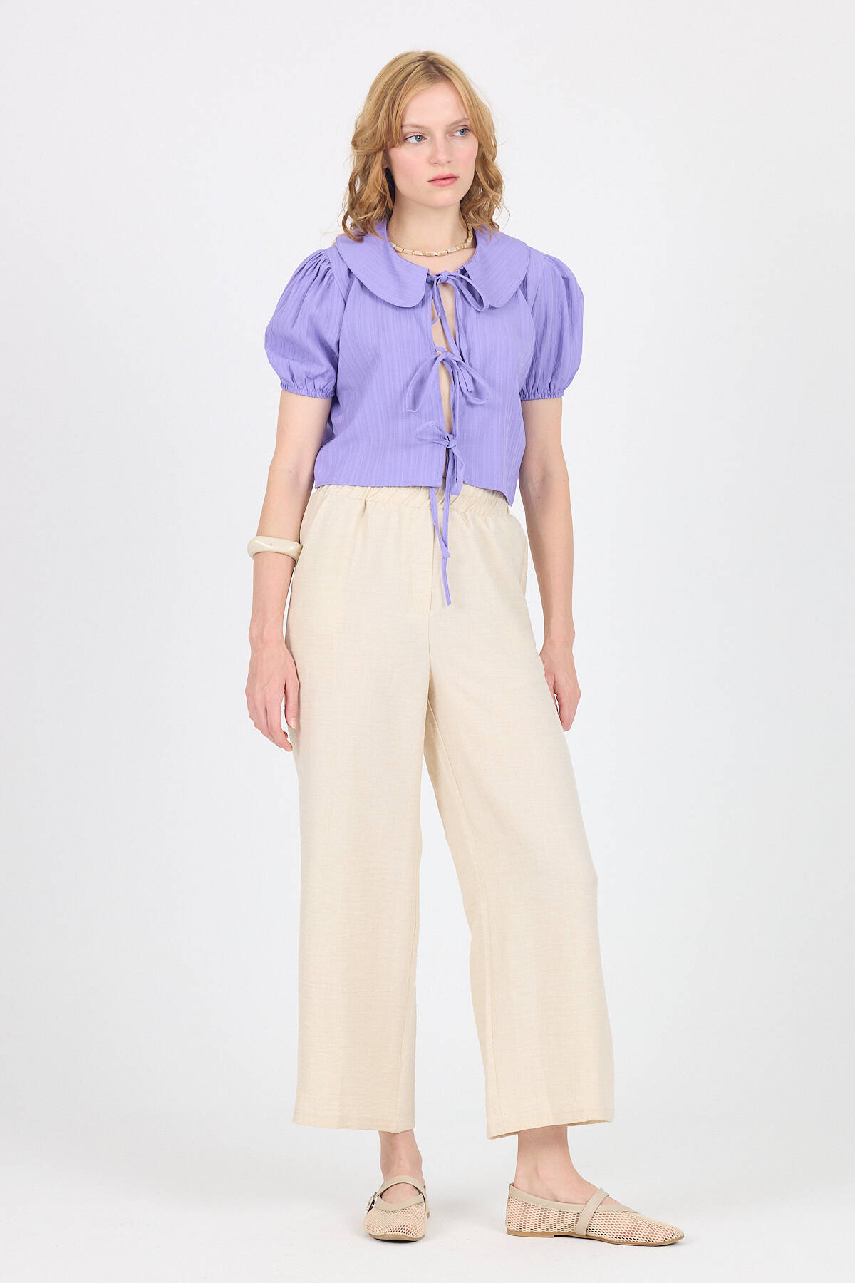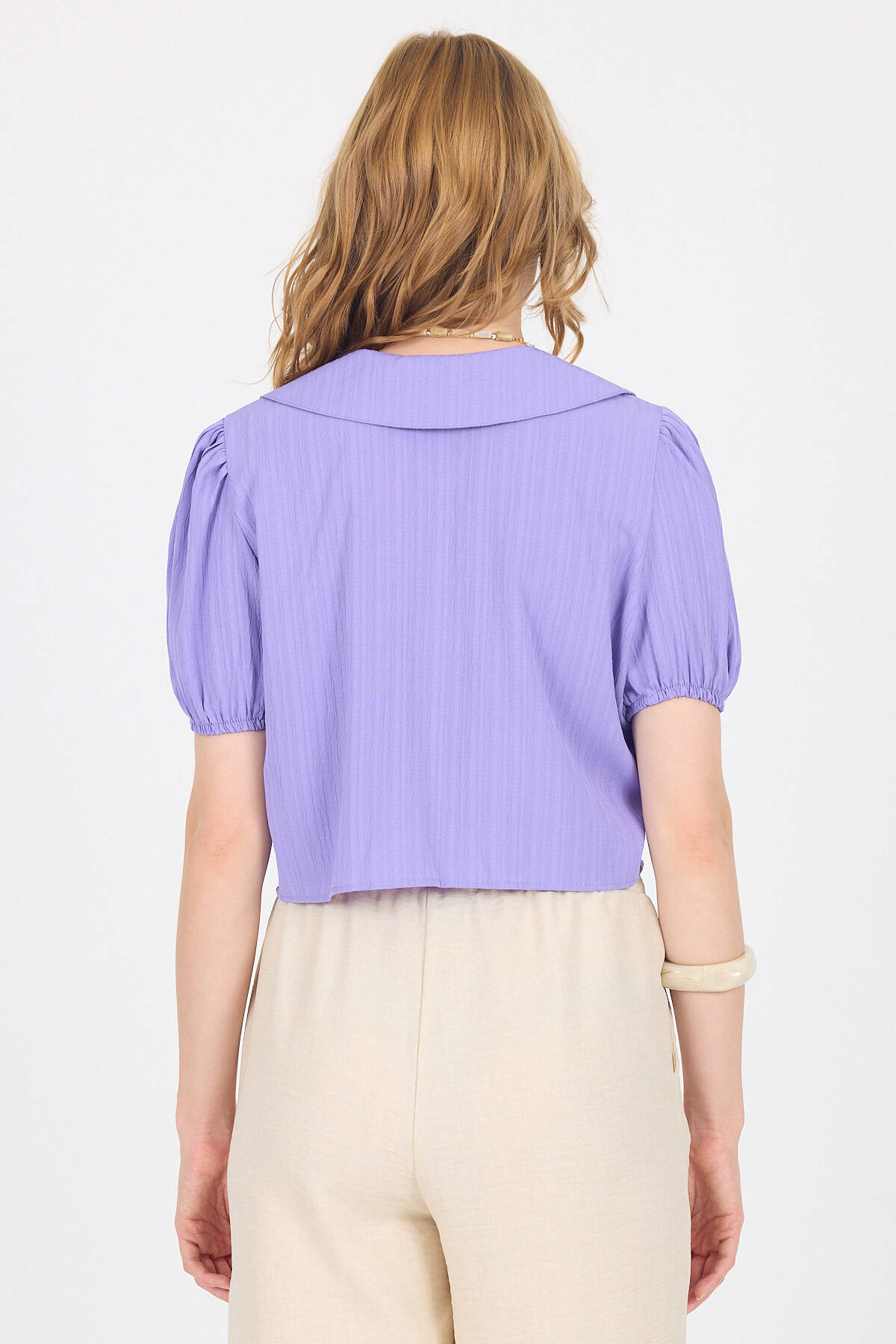 Lila Bağlama Detaylı Bebe Yaka Crop Bluz 8064