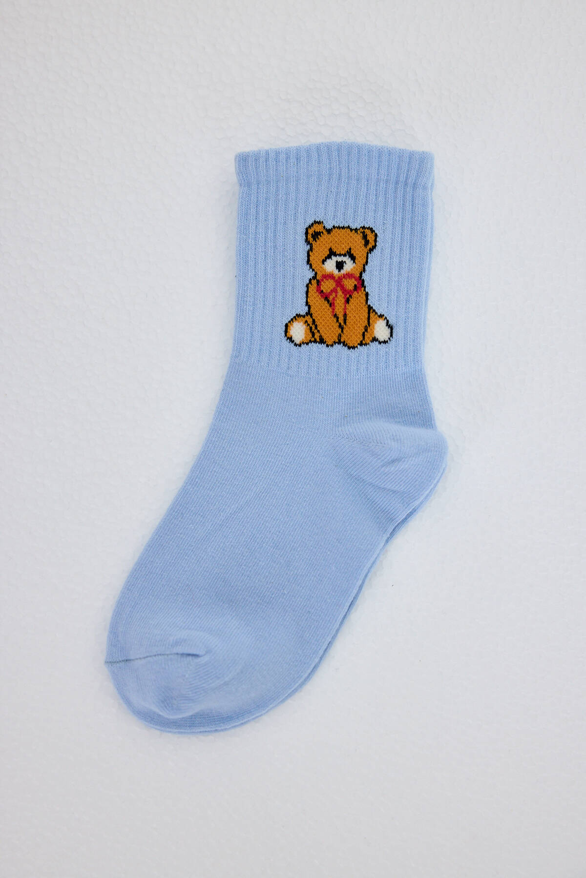 Mavi Ayı Desenli Örme Soket Çorap 1214