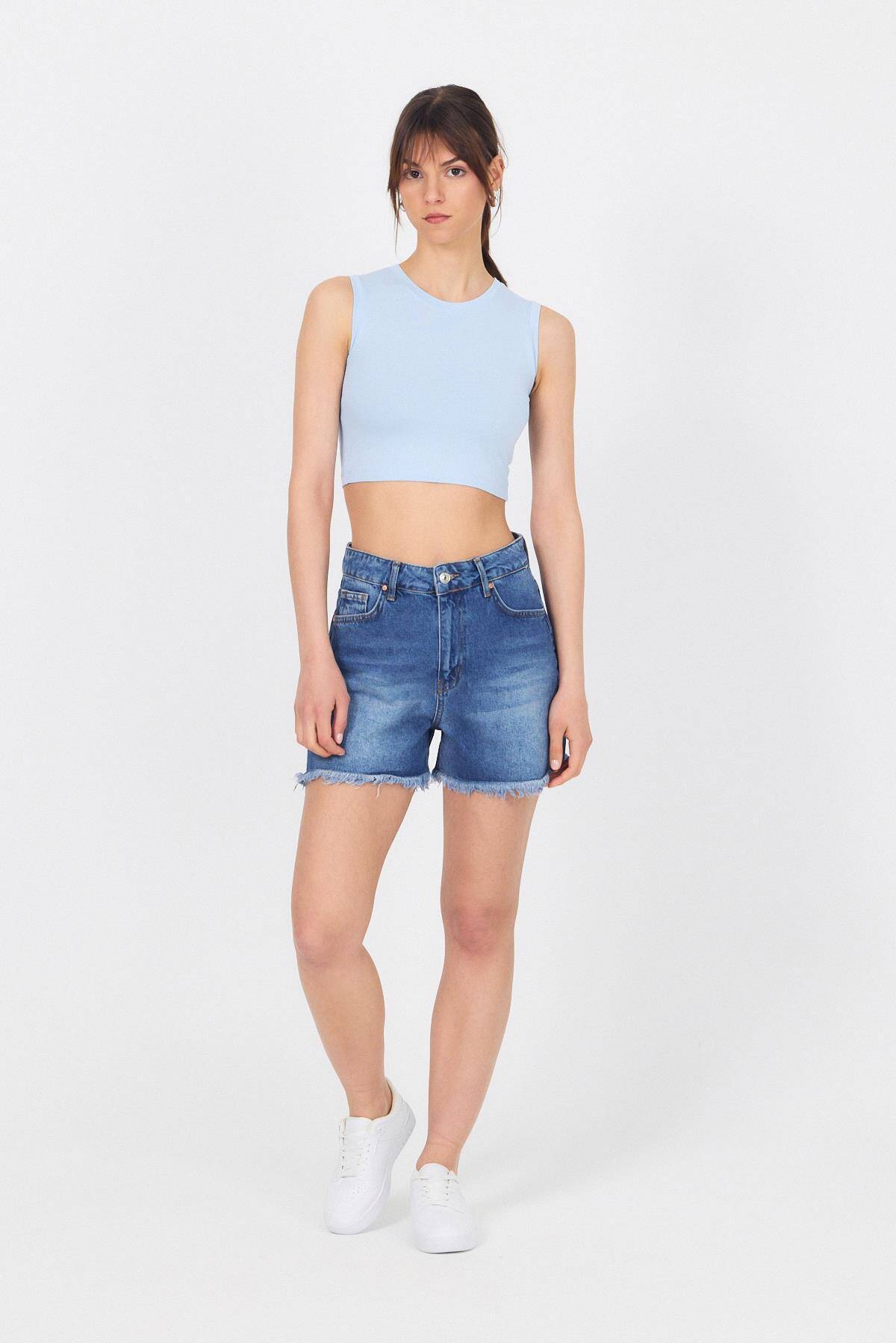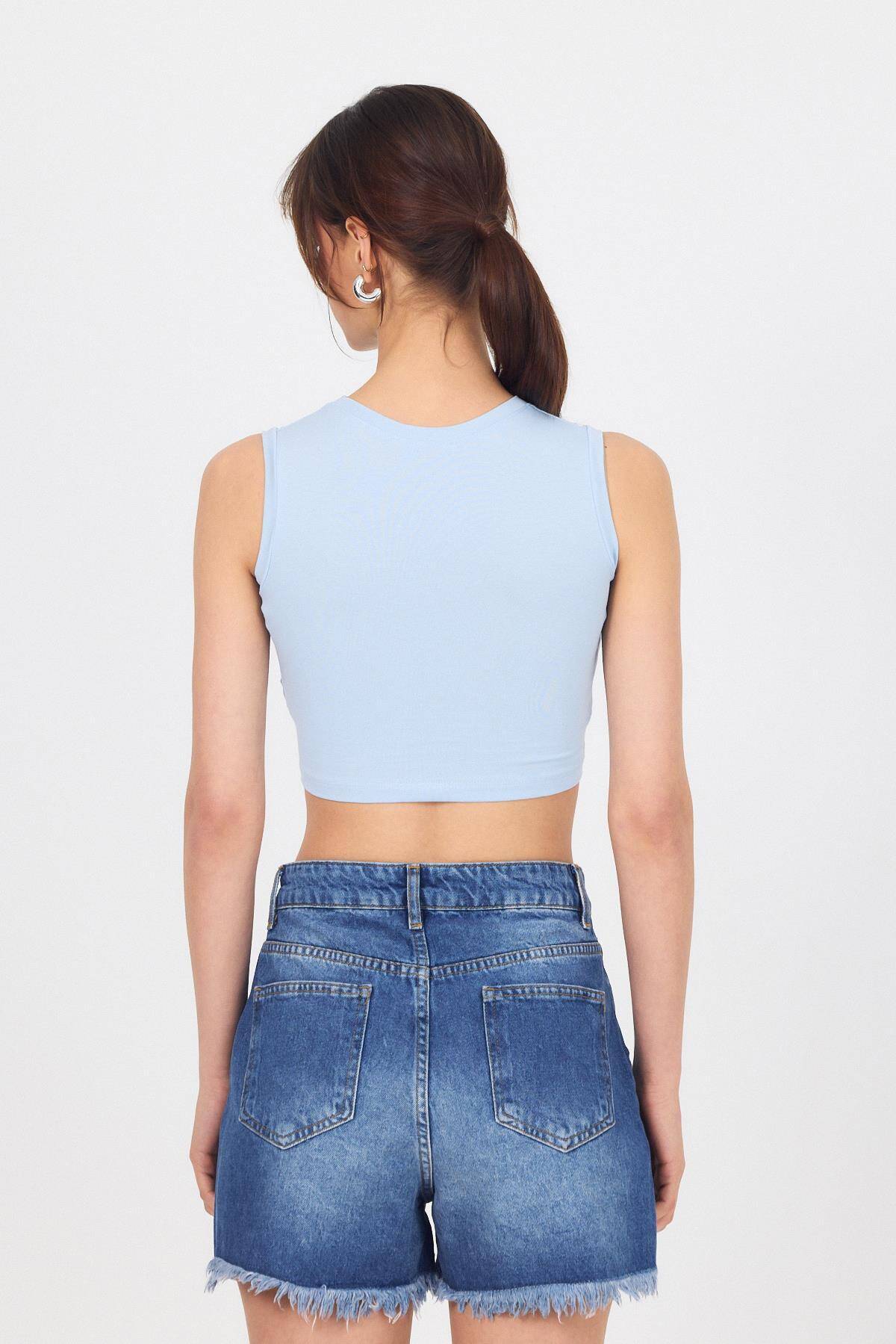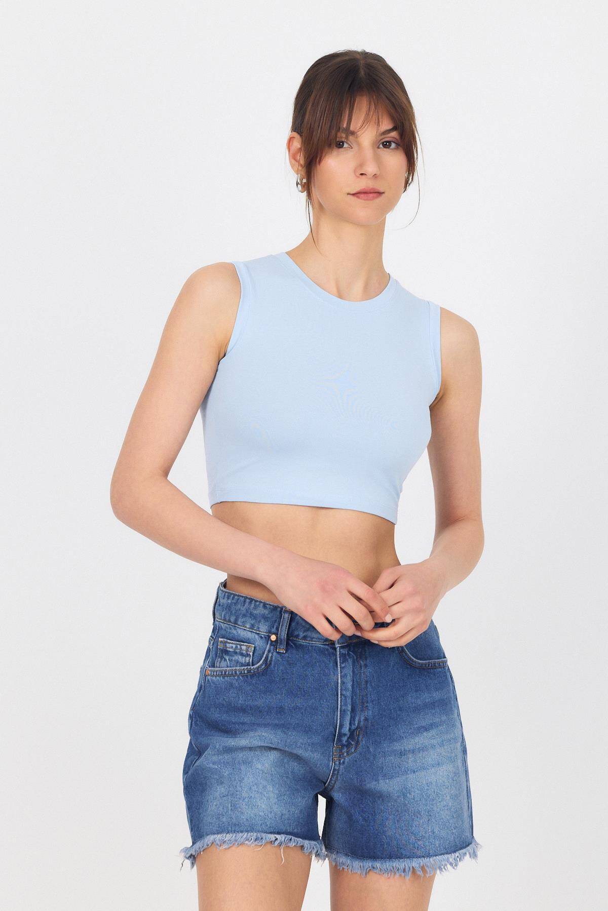 Mavi Bisiklet Yaka Crop Atlet 9189M