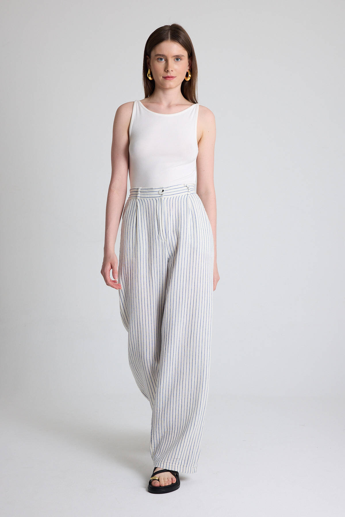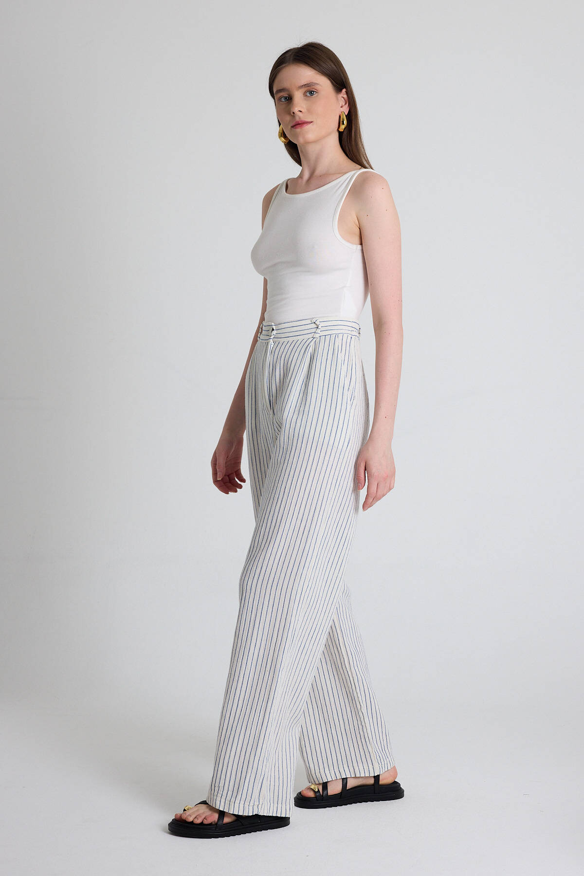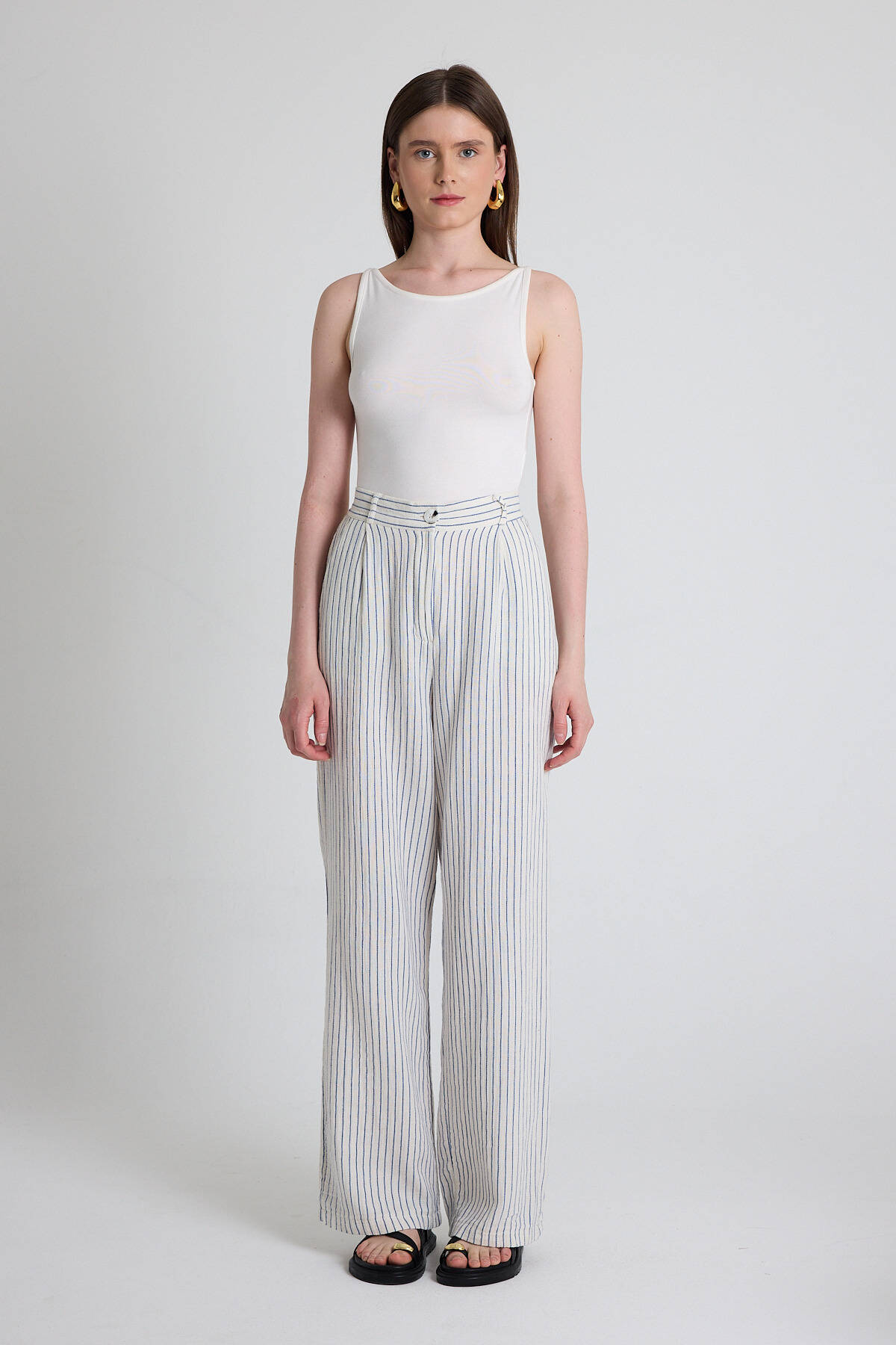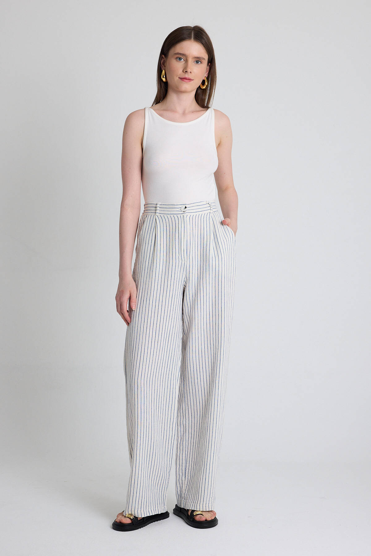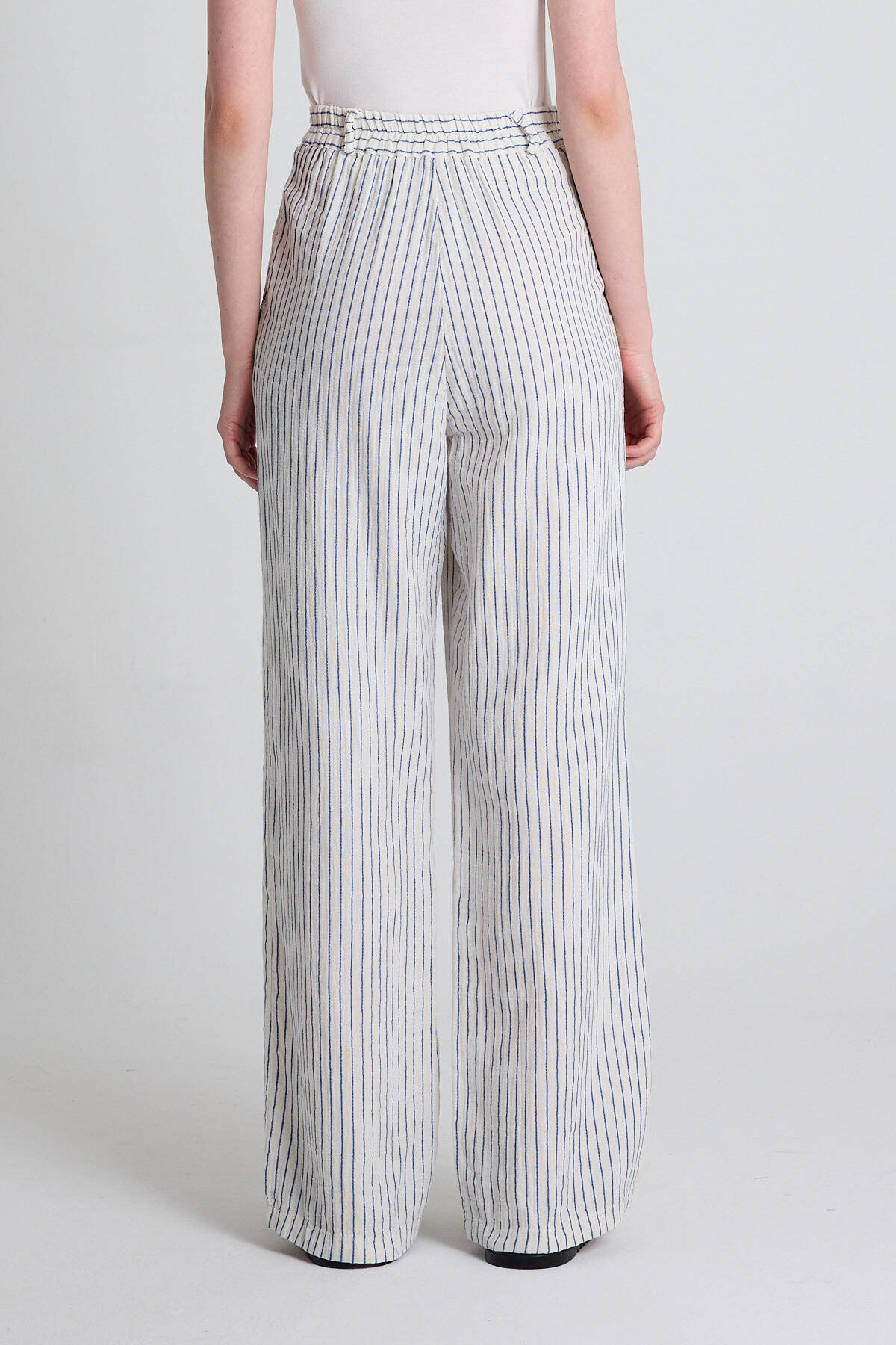 Mavi Geniş Paça Çizgili Pantolon 2334