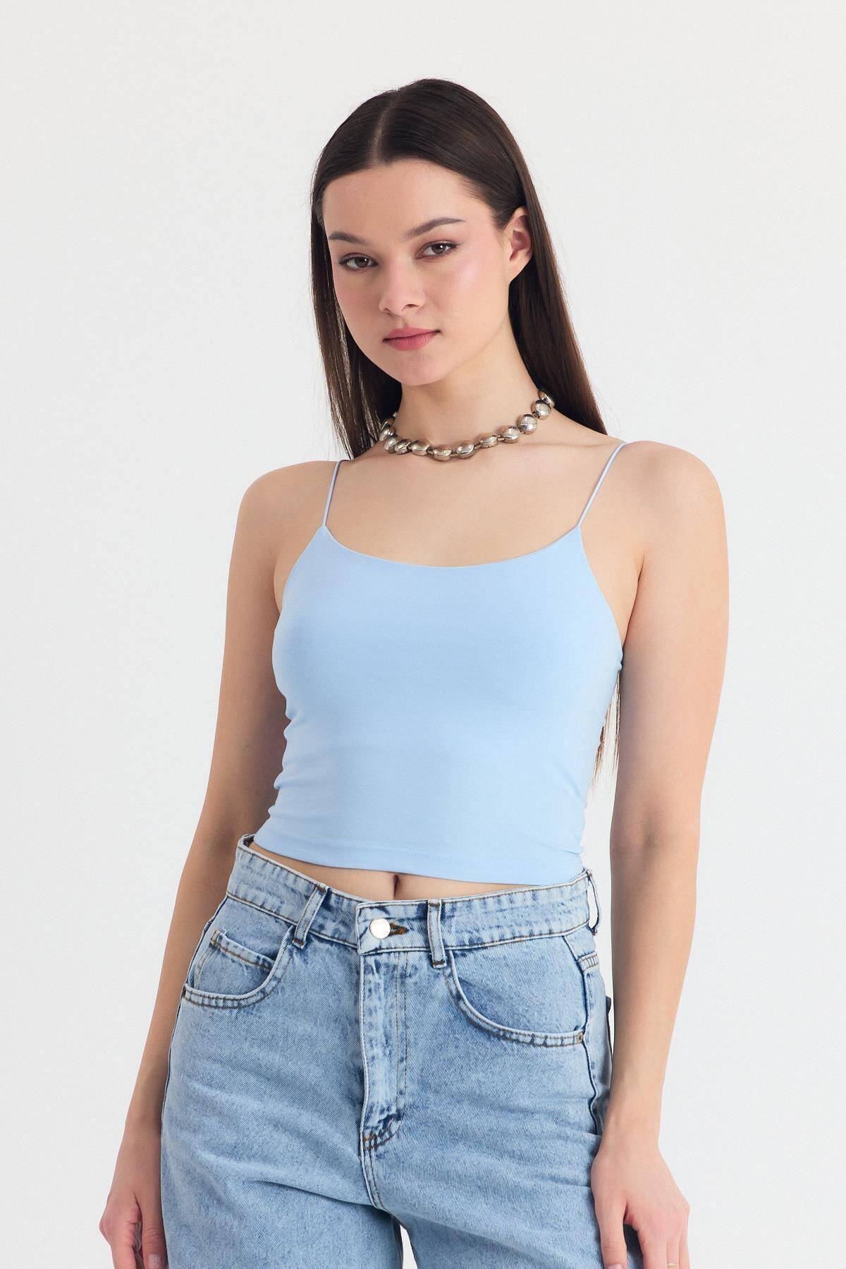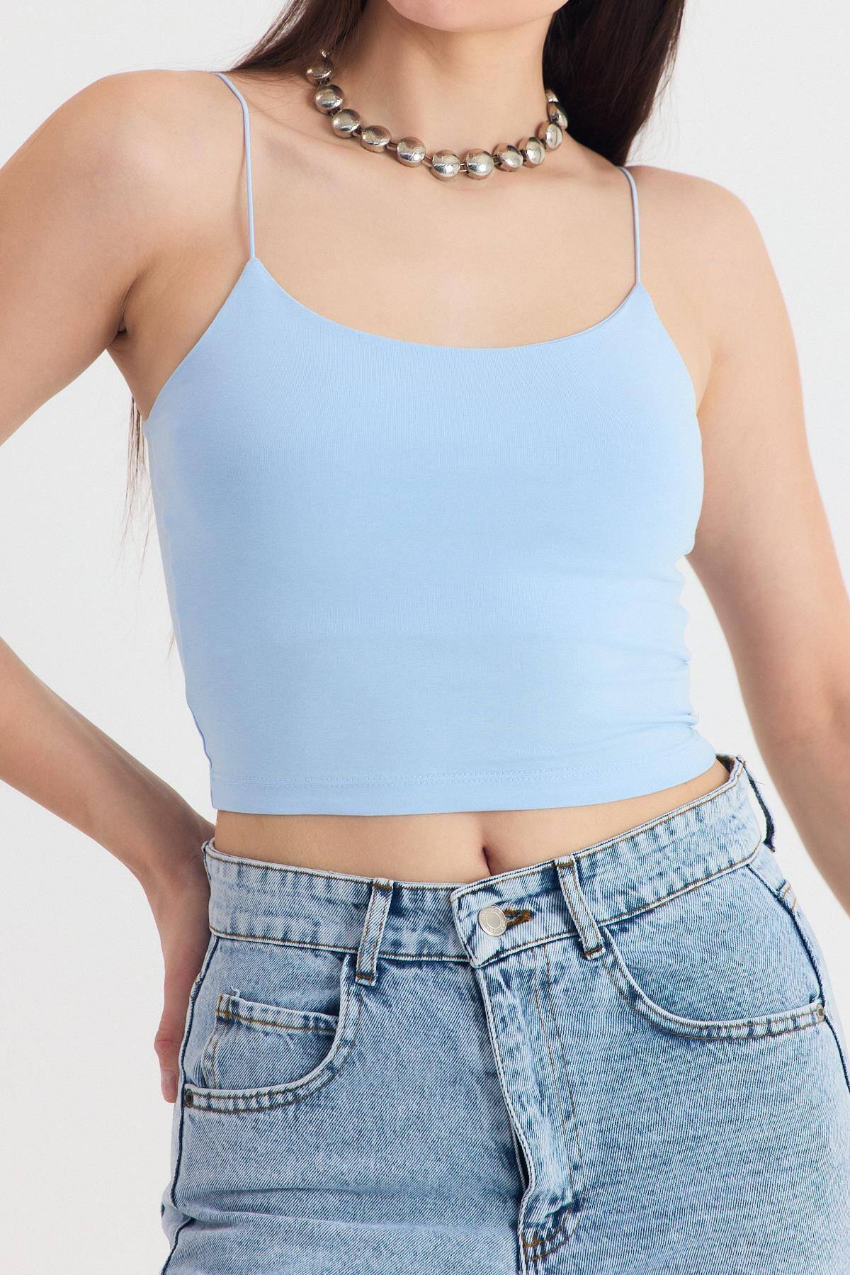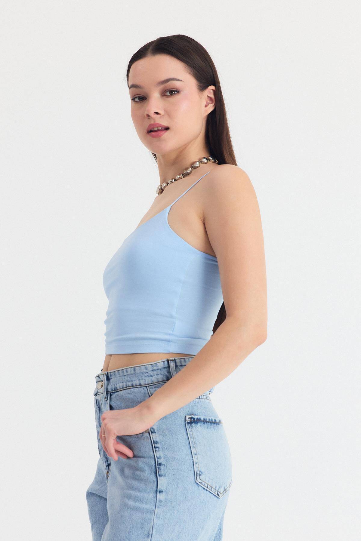 Mavi İnce Askılı Fitted Basic Atlet 947