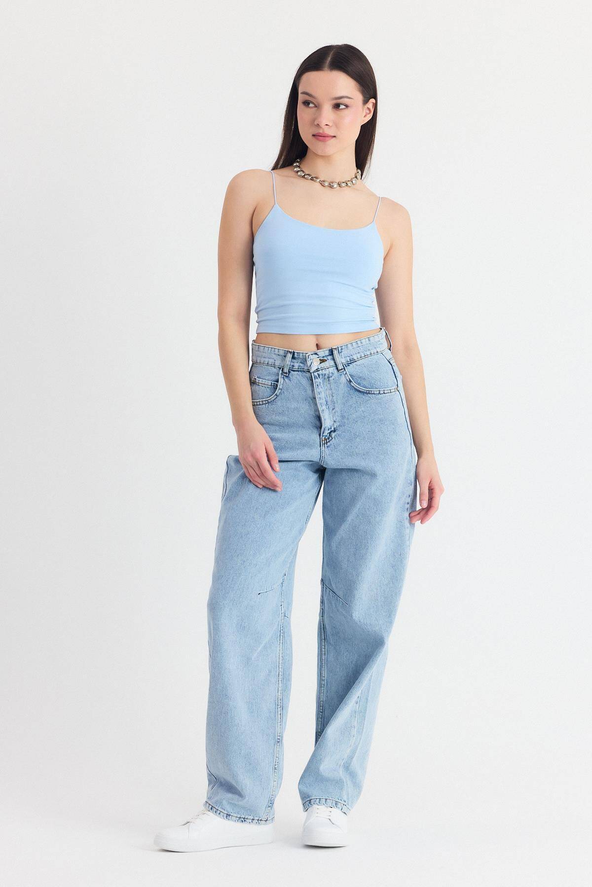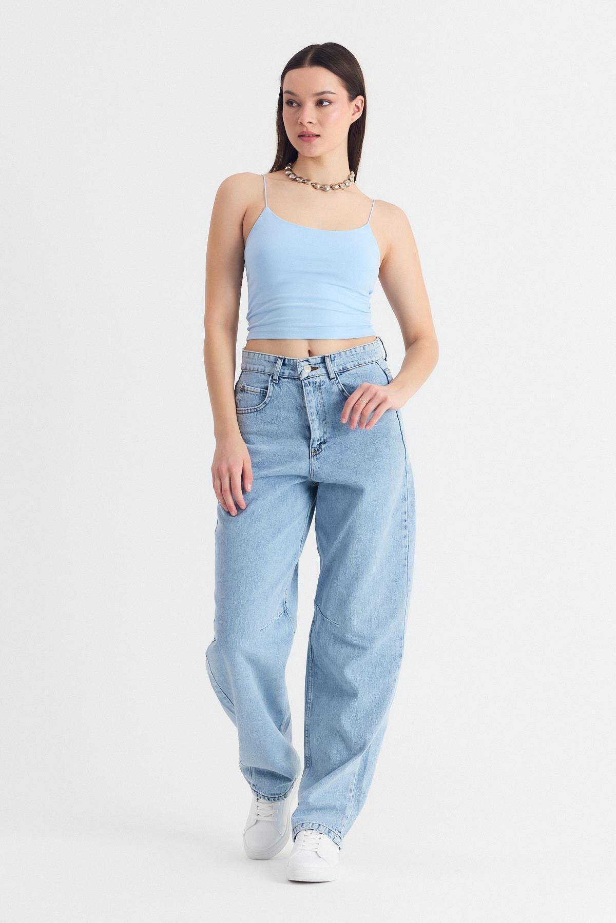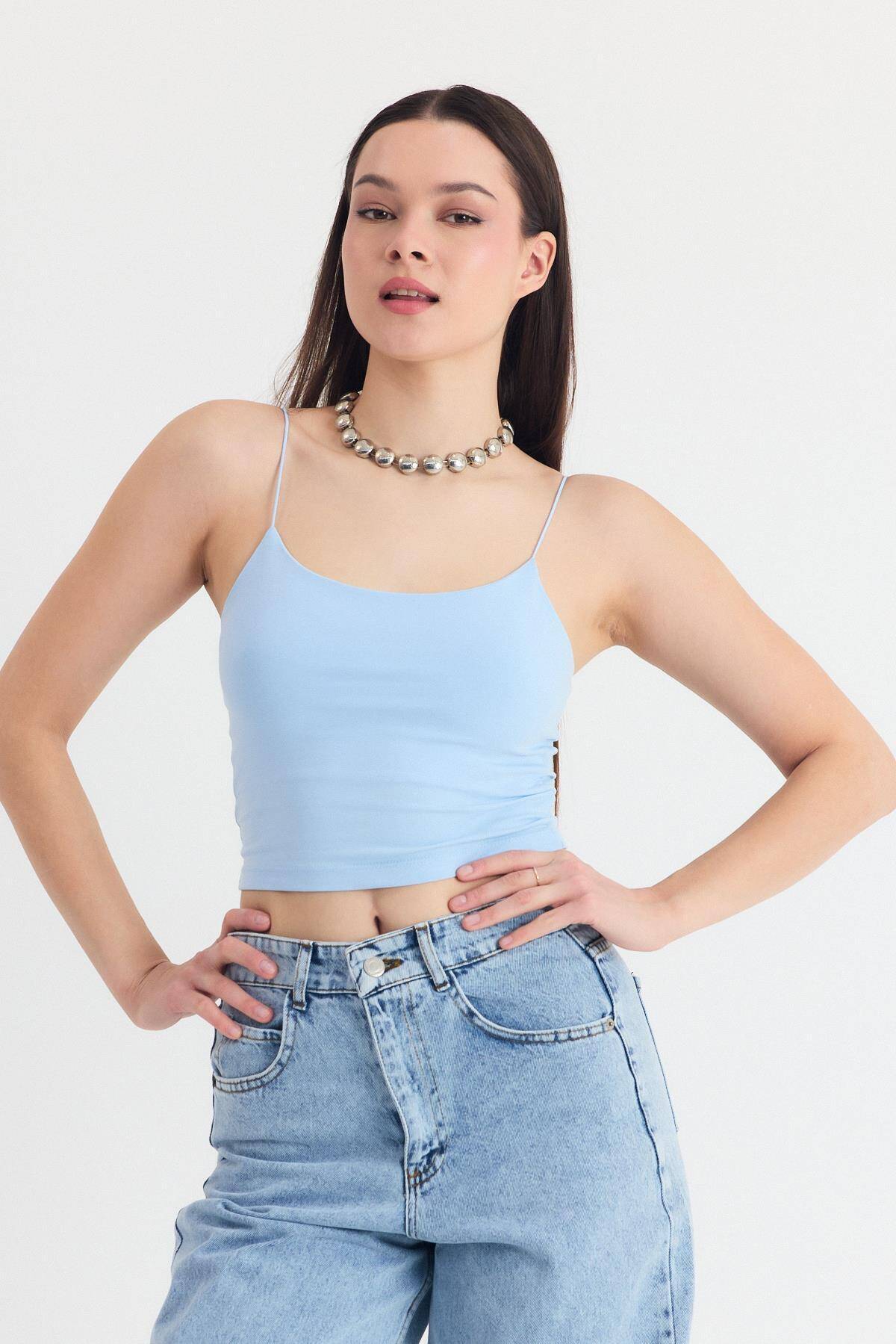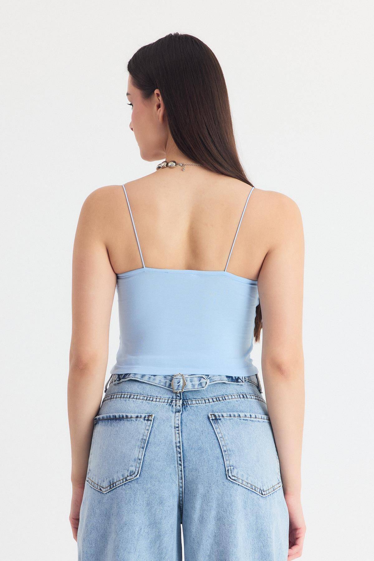 Mavi İnce Askılı Fitted Basic Atlet 947