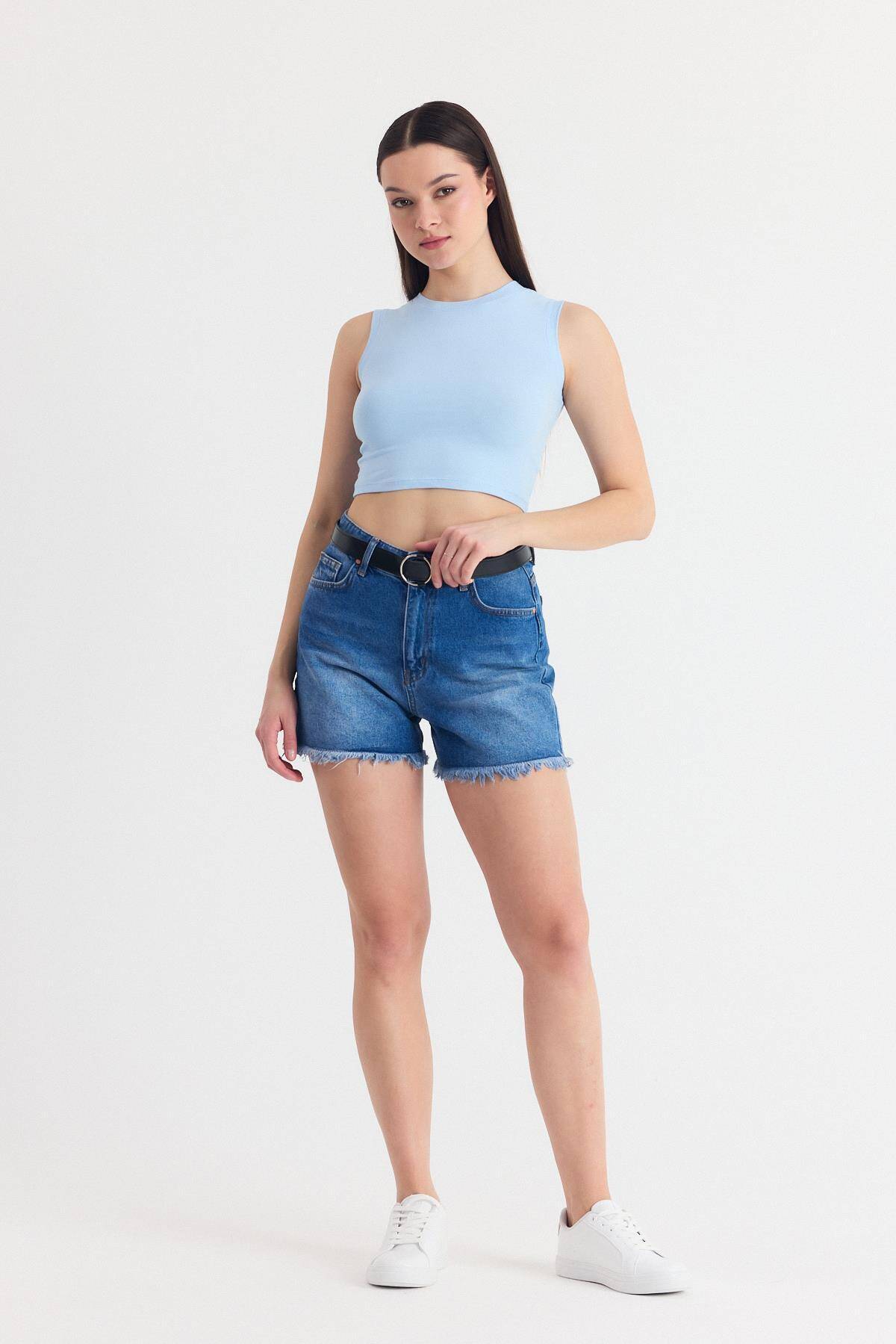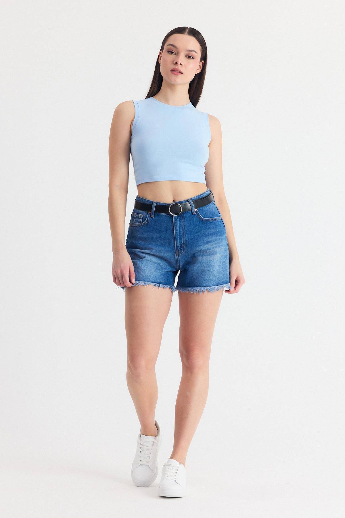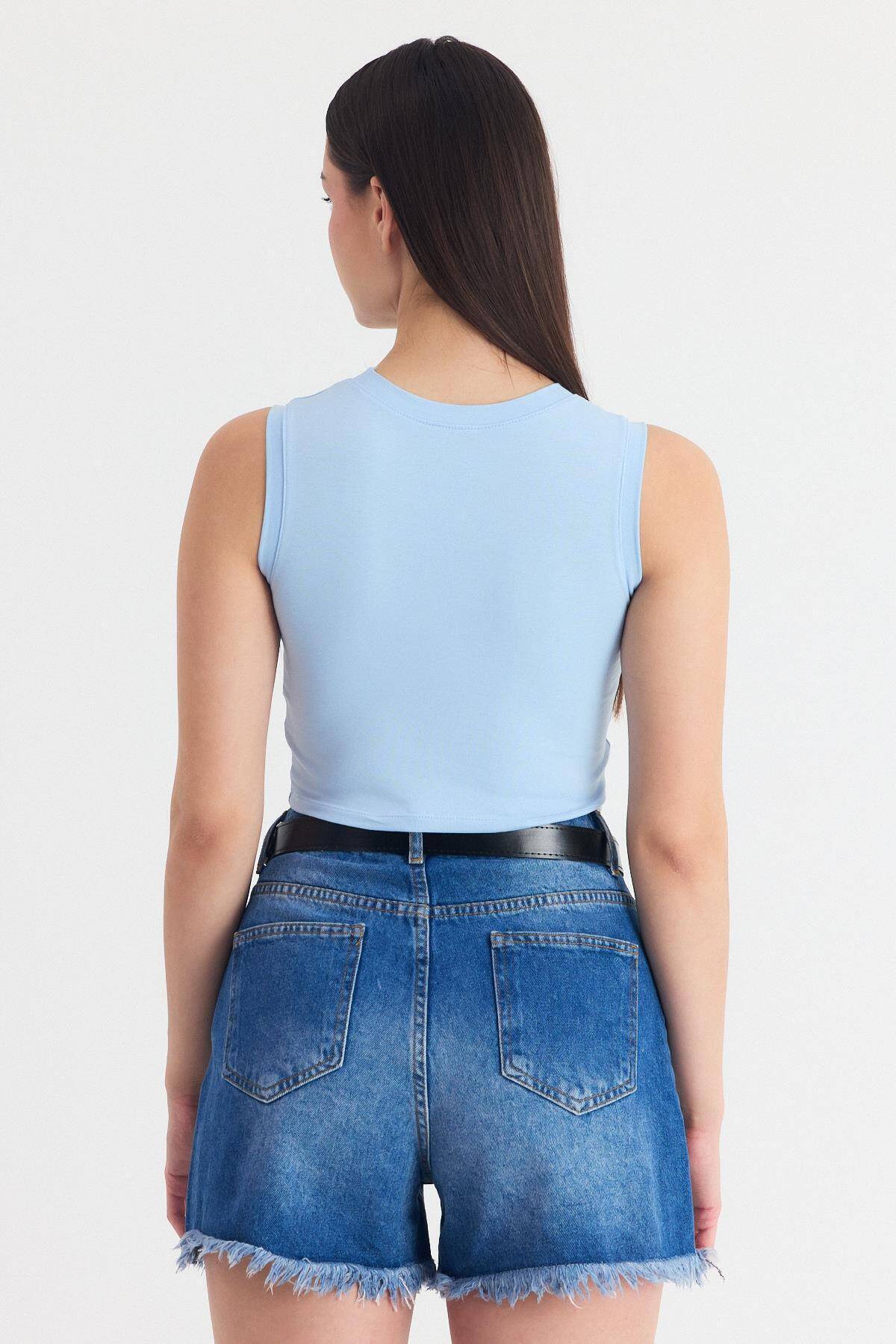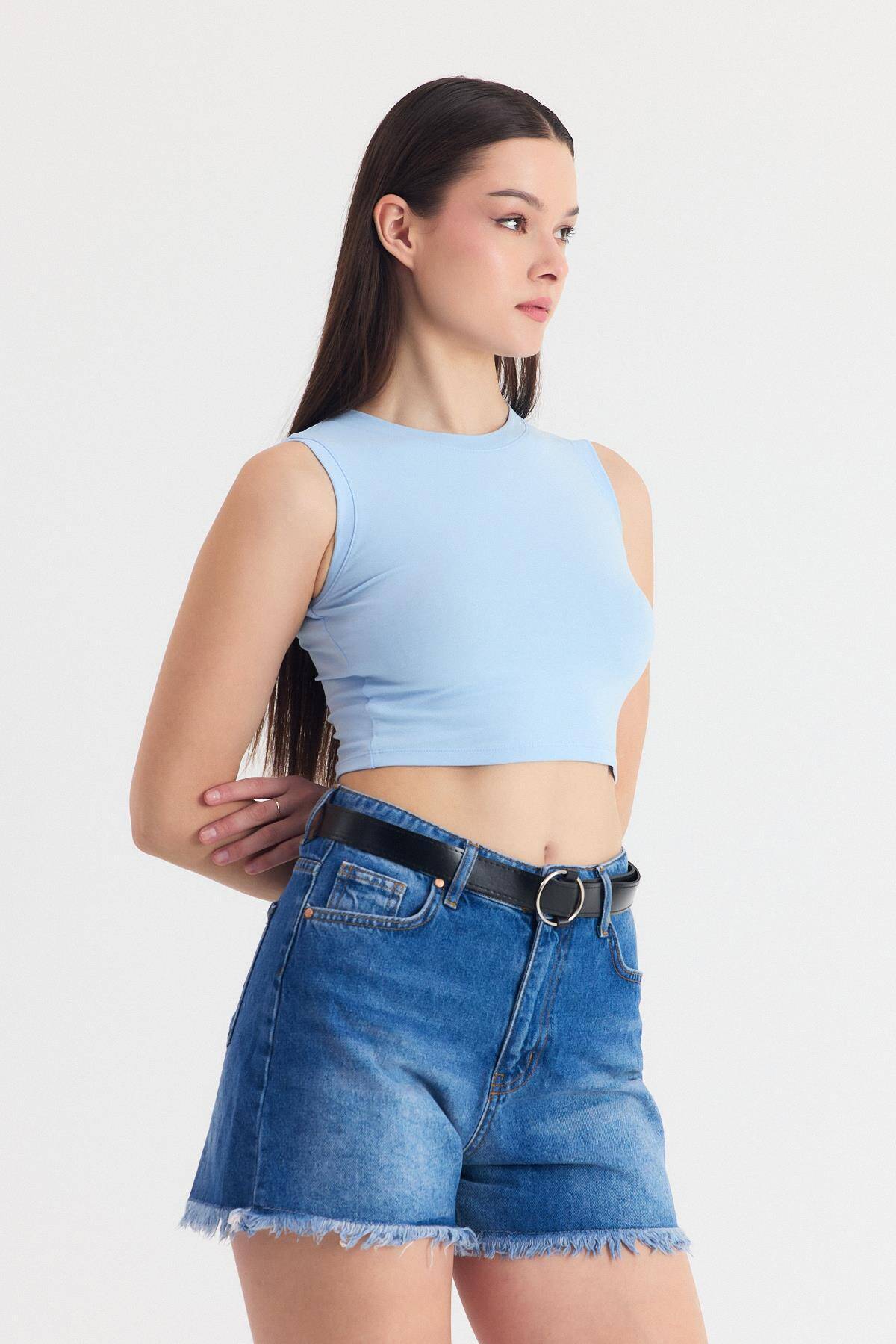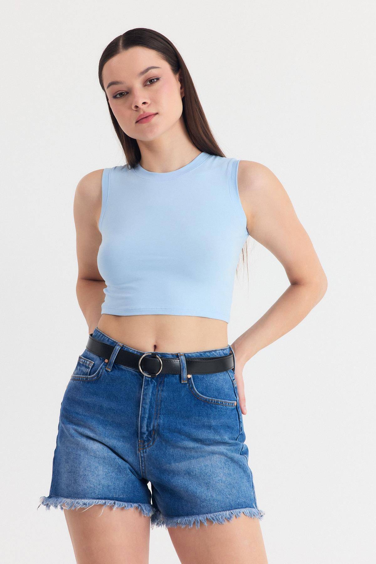 Mavi Kolsuz Bisiklet Yaka Crop Atlet 318