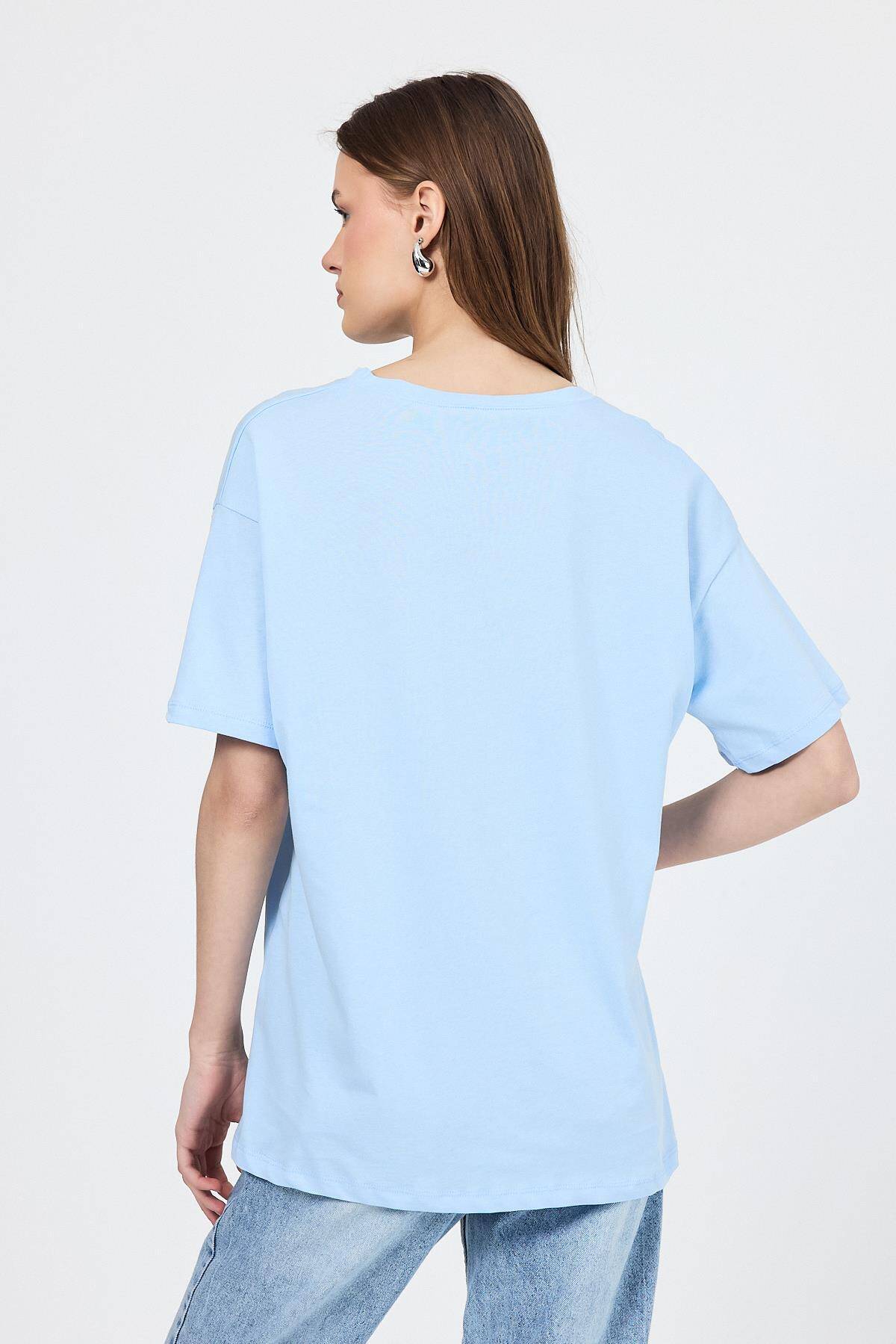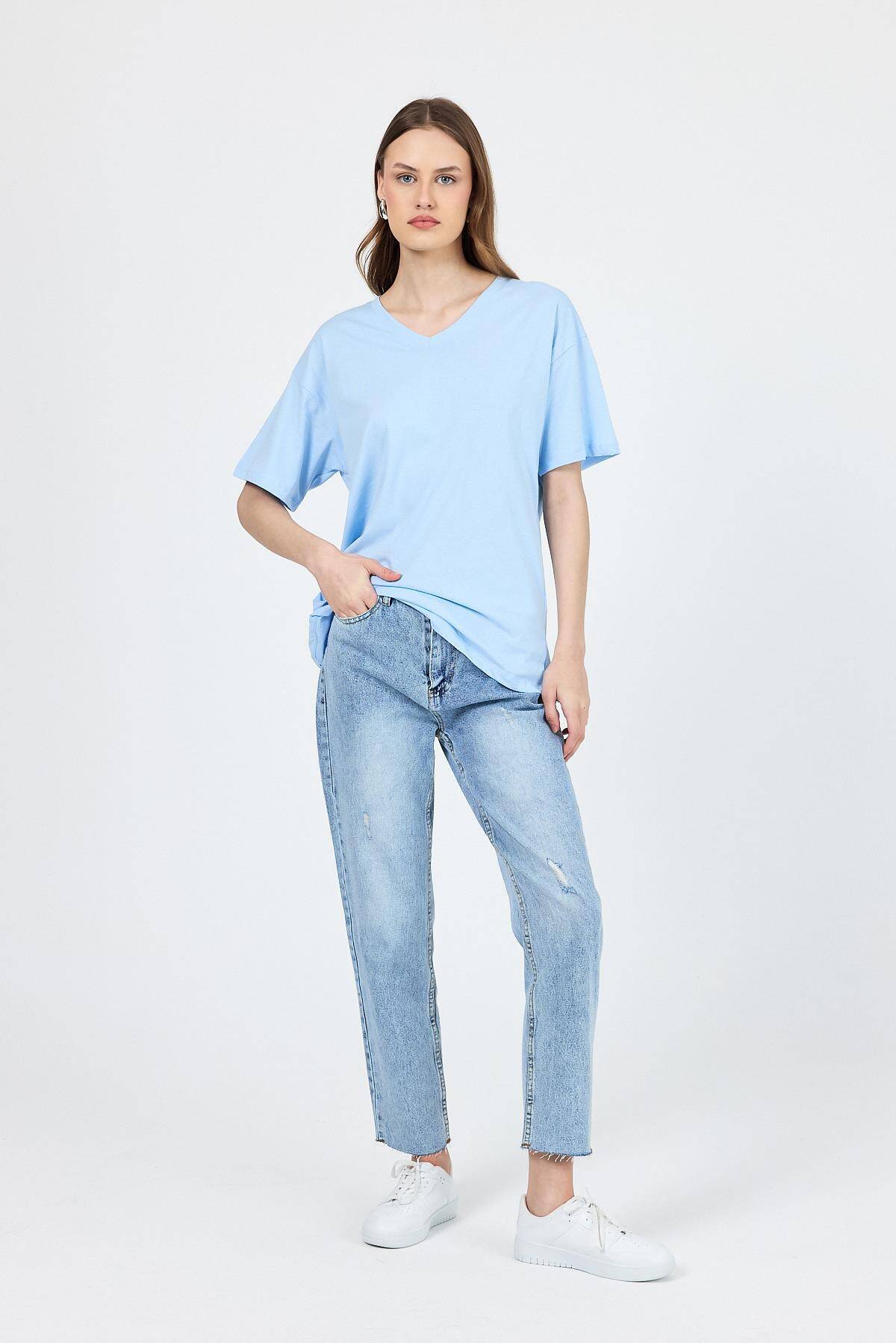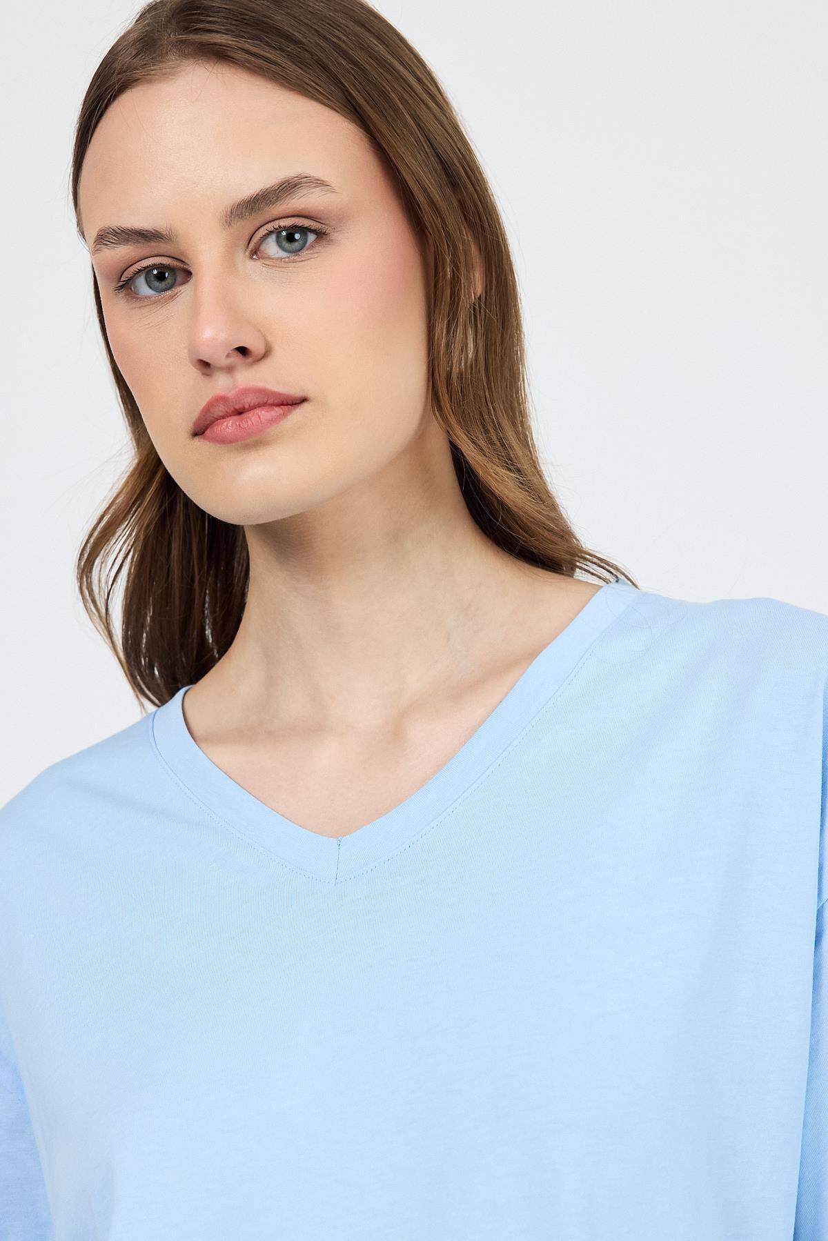 Mavi V Yaka %100 Pamuk Comfort Fit Tişört 2143M