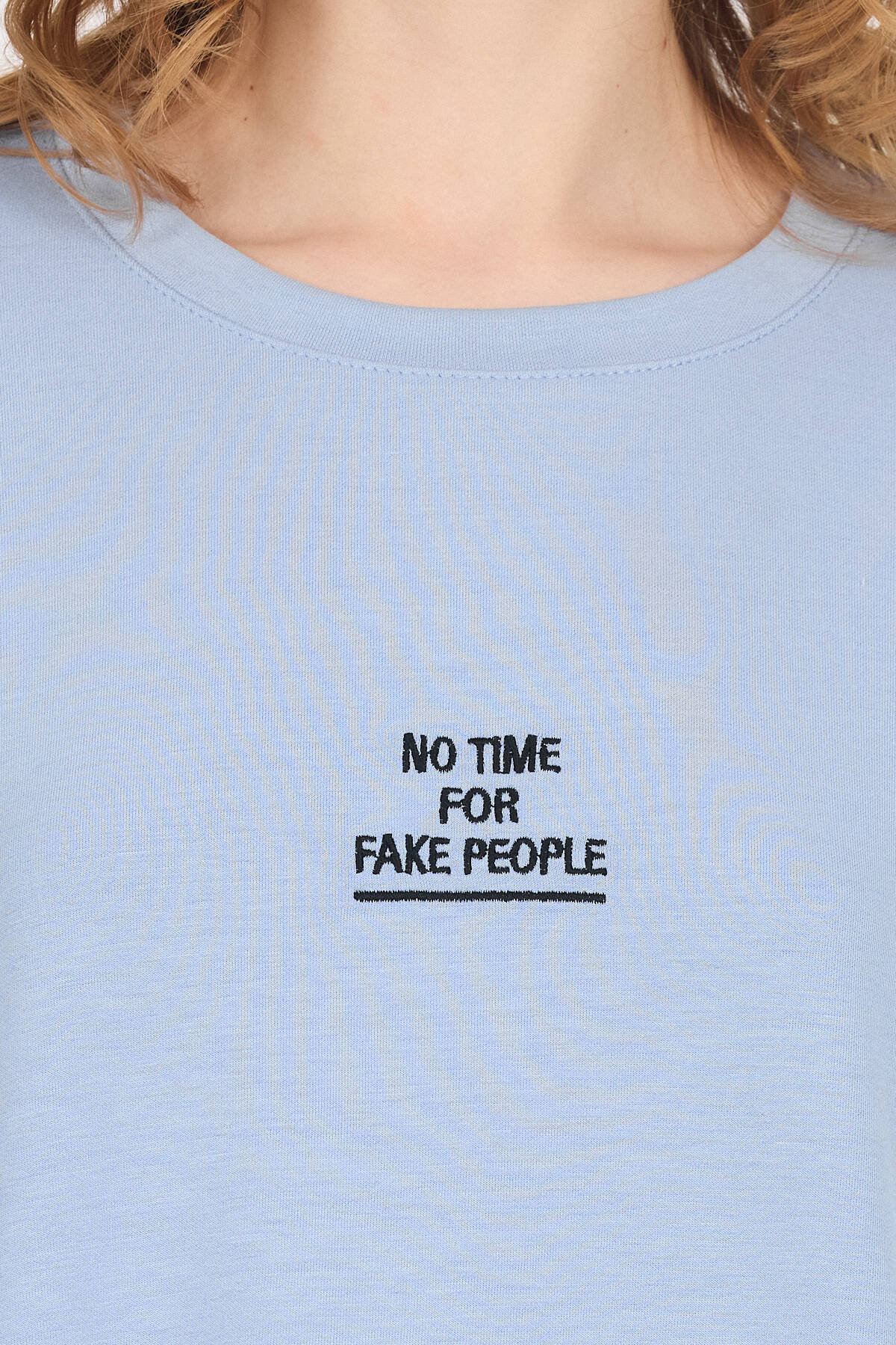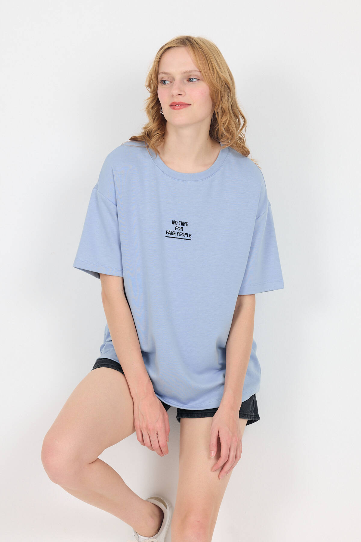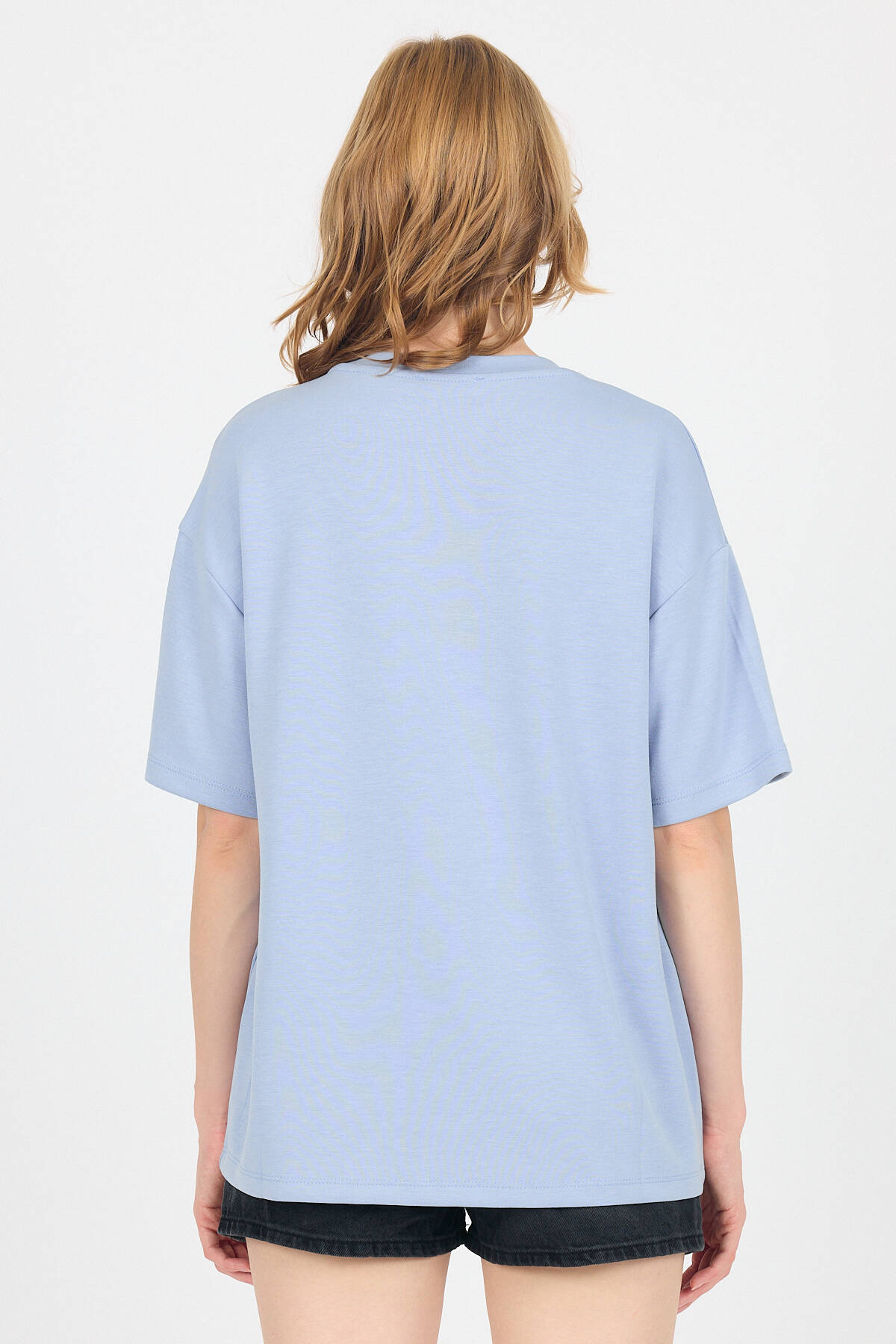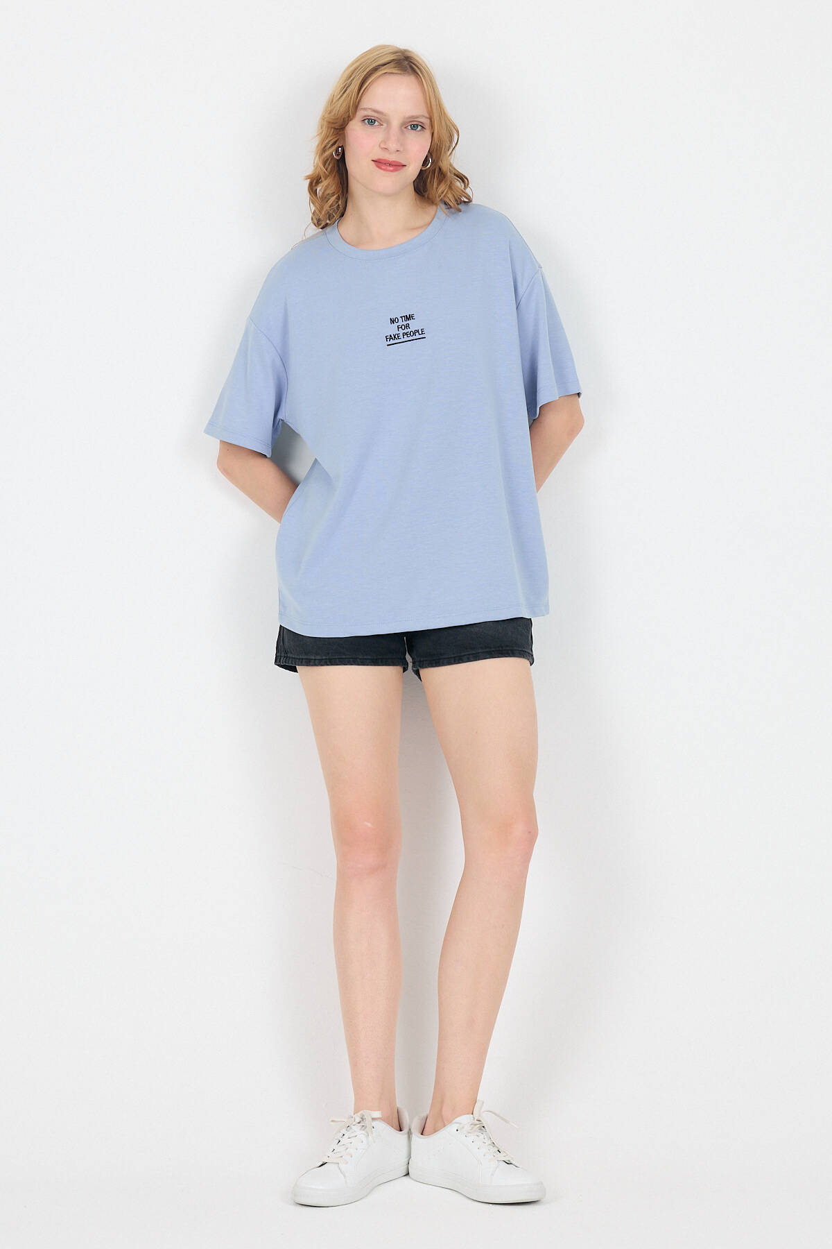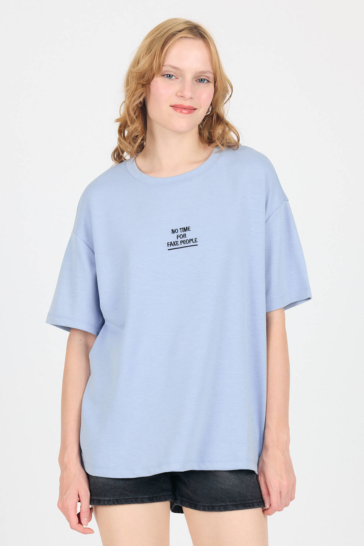 Mavi Yumuşak Dokulu Yazı Baskılı Oversize Tişört 6265