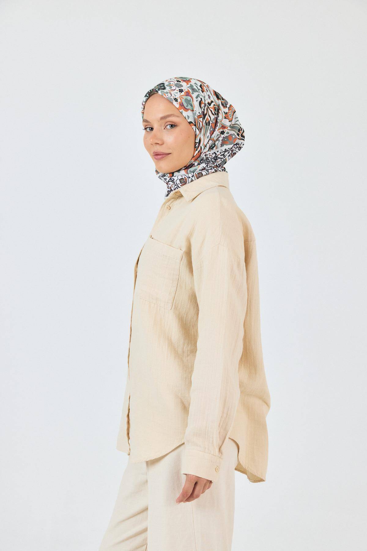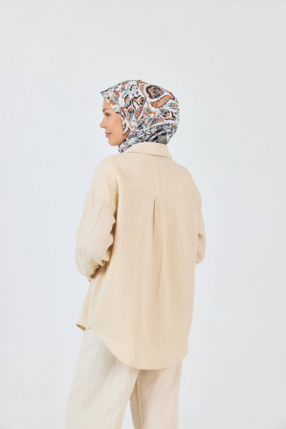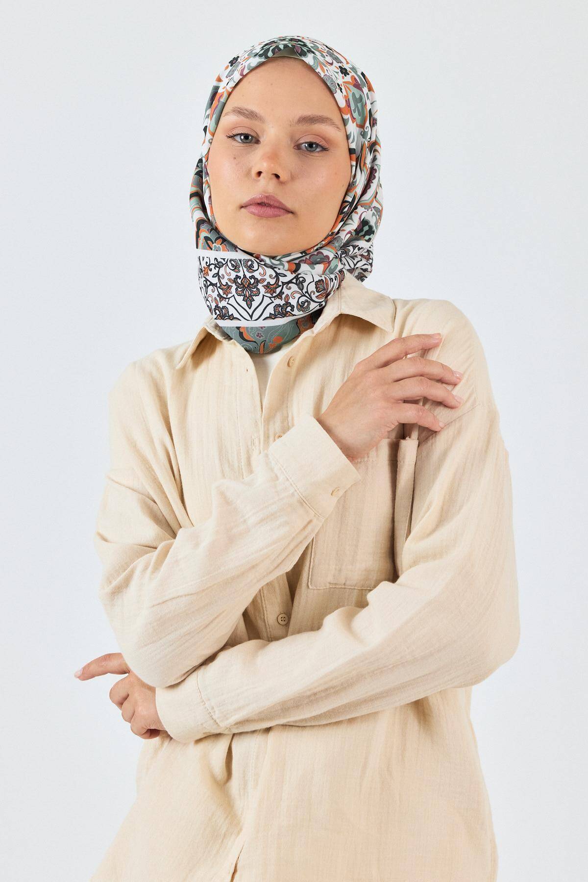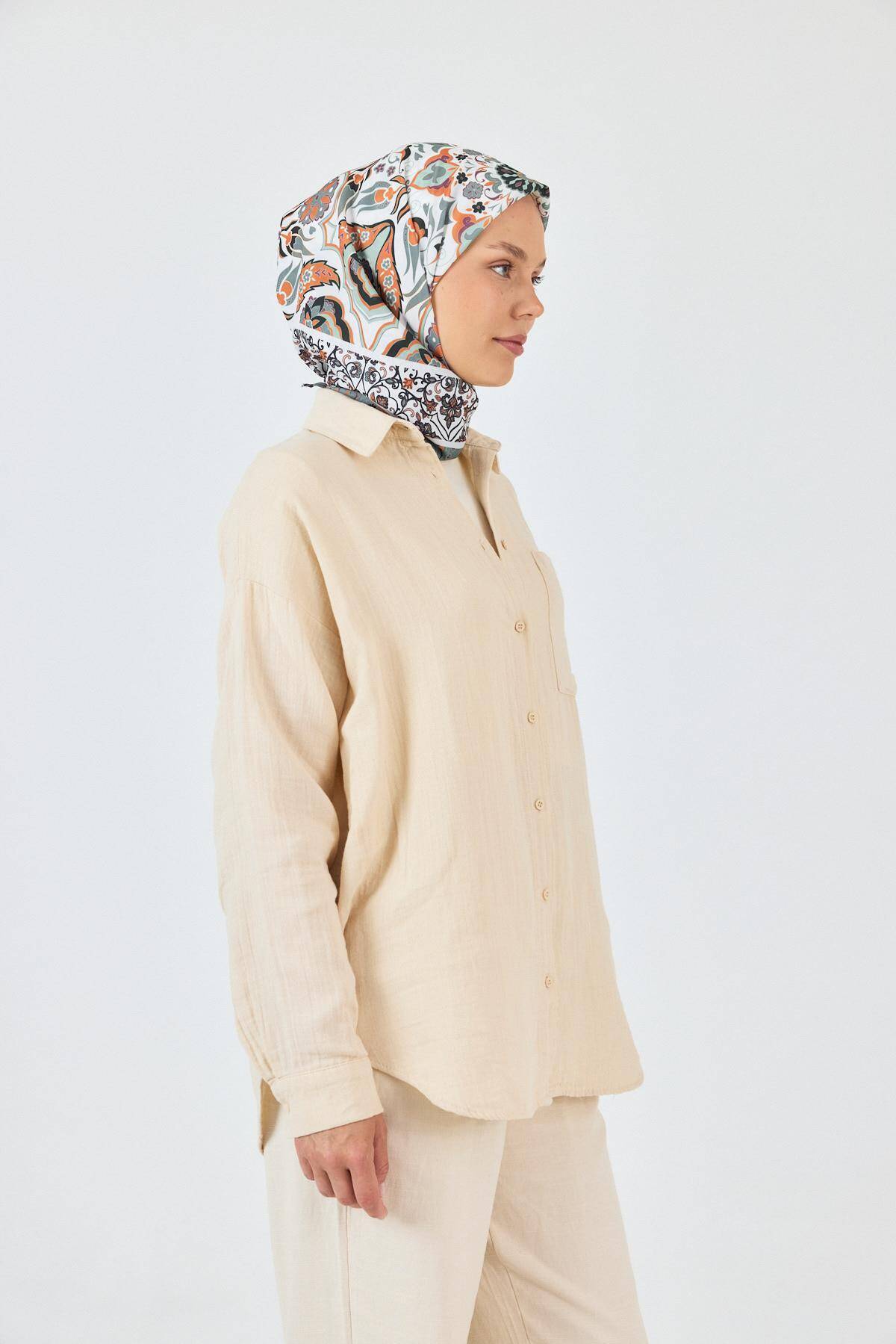 Beyaz Deri Kemer Detaylı Etnik Desenli Kimono 4363A