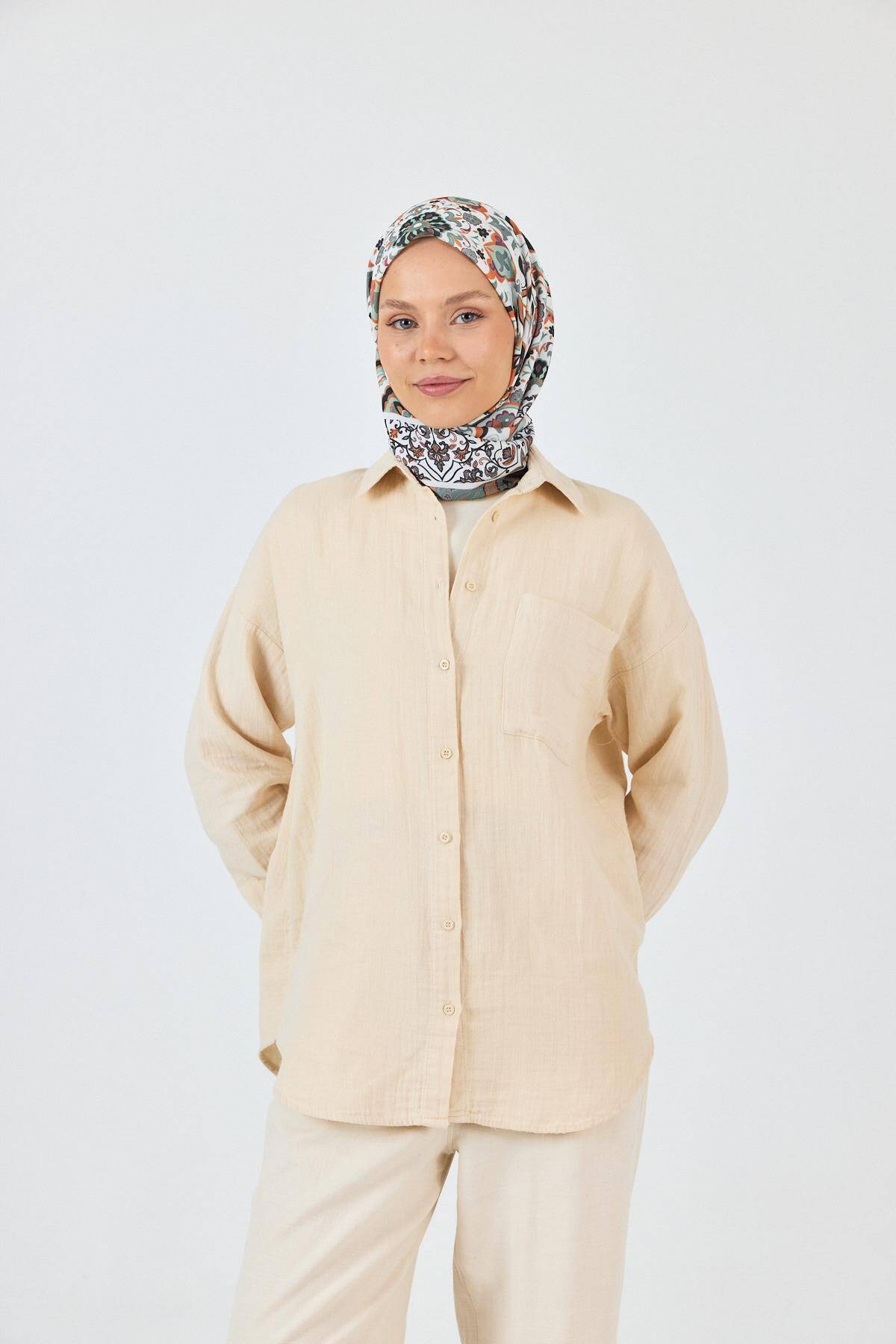 Bej Kapüşonlu Cepli Fermuarlı Kap 4572A