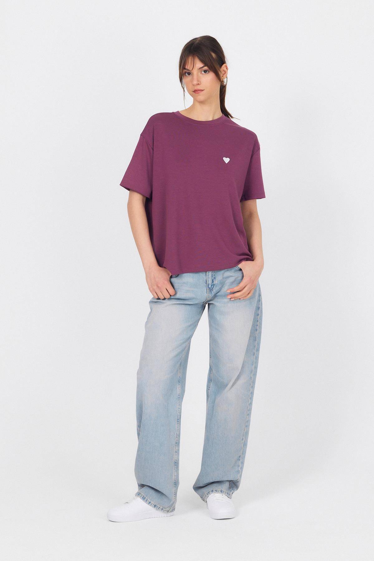 Mor Kalp Nakışlı Premium Kumaş Tişört 6218