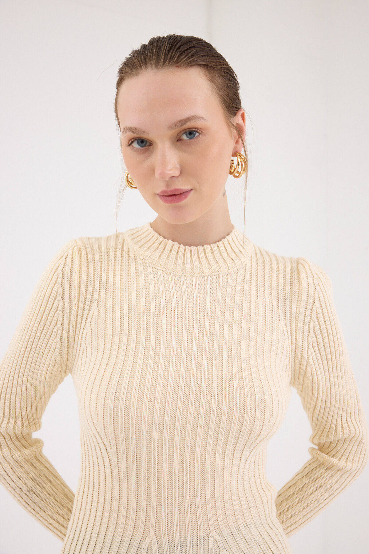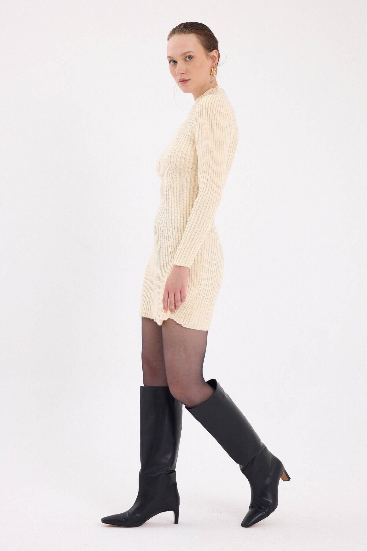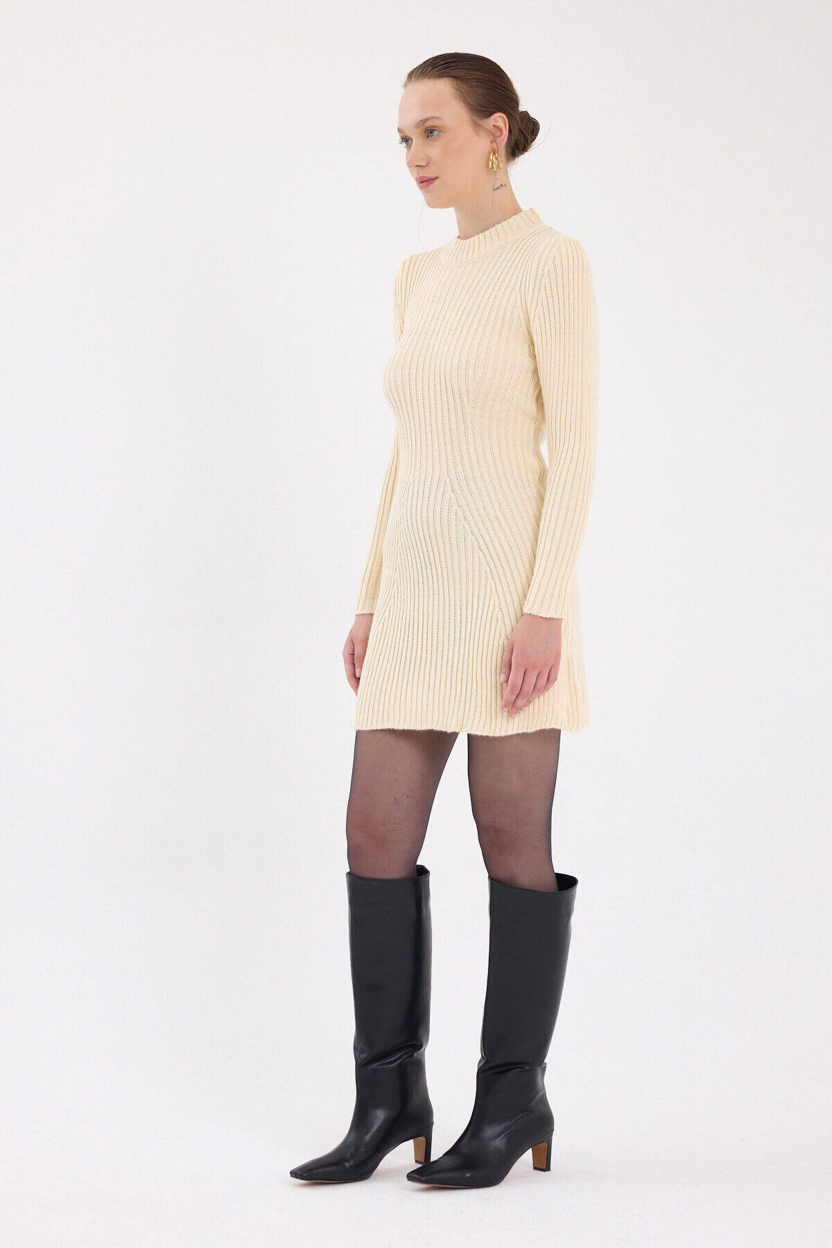 Natural Balıkçı Yaka Triko Mini Elbise 1907