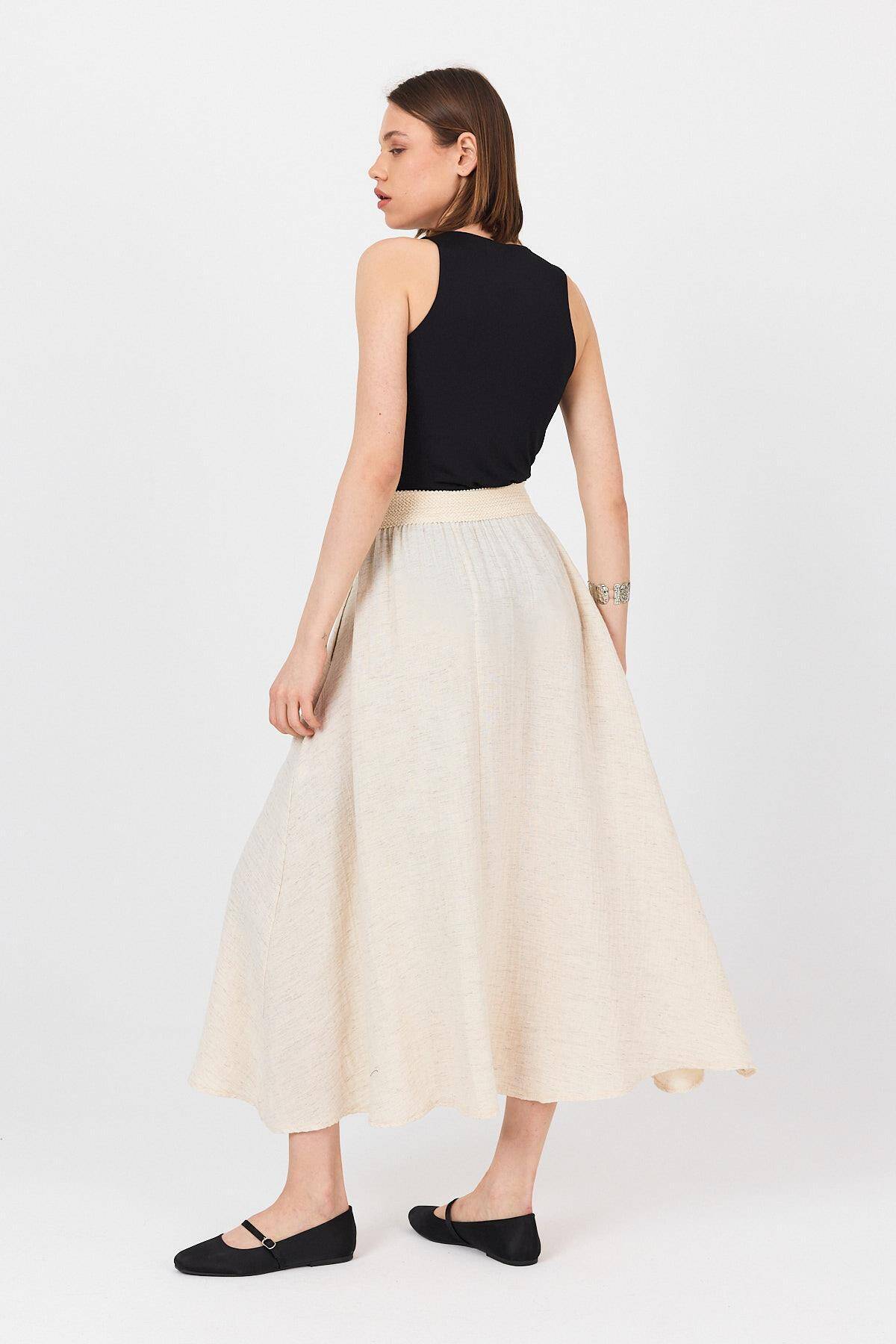 Beyaz Deri Kemer Detaylı Etnik Desenli Kimono 4363A