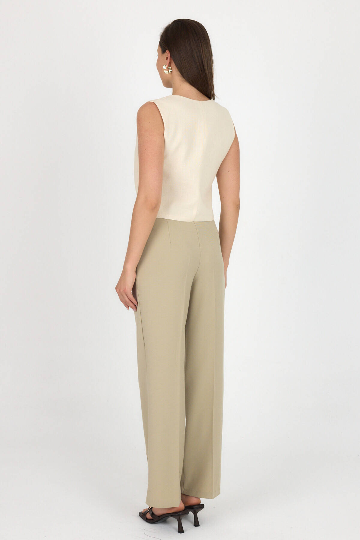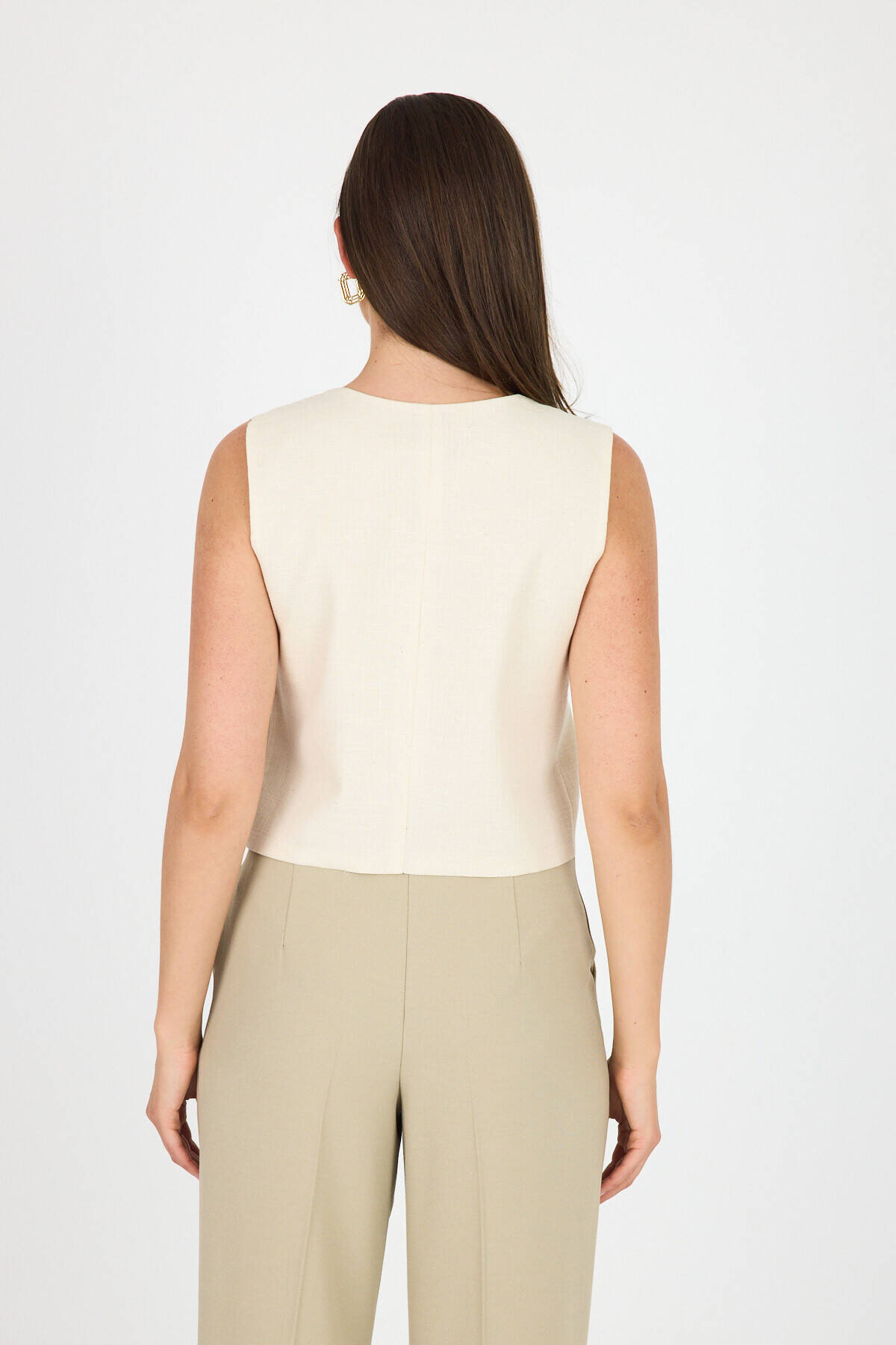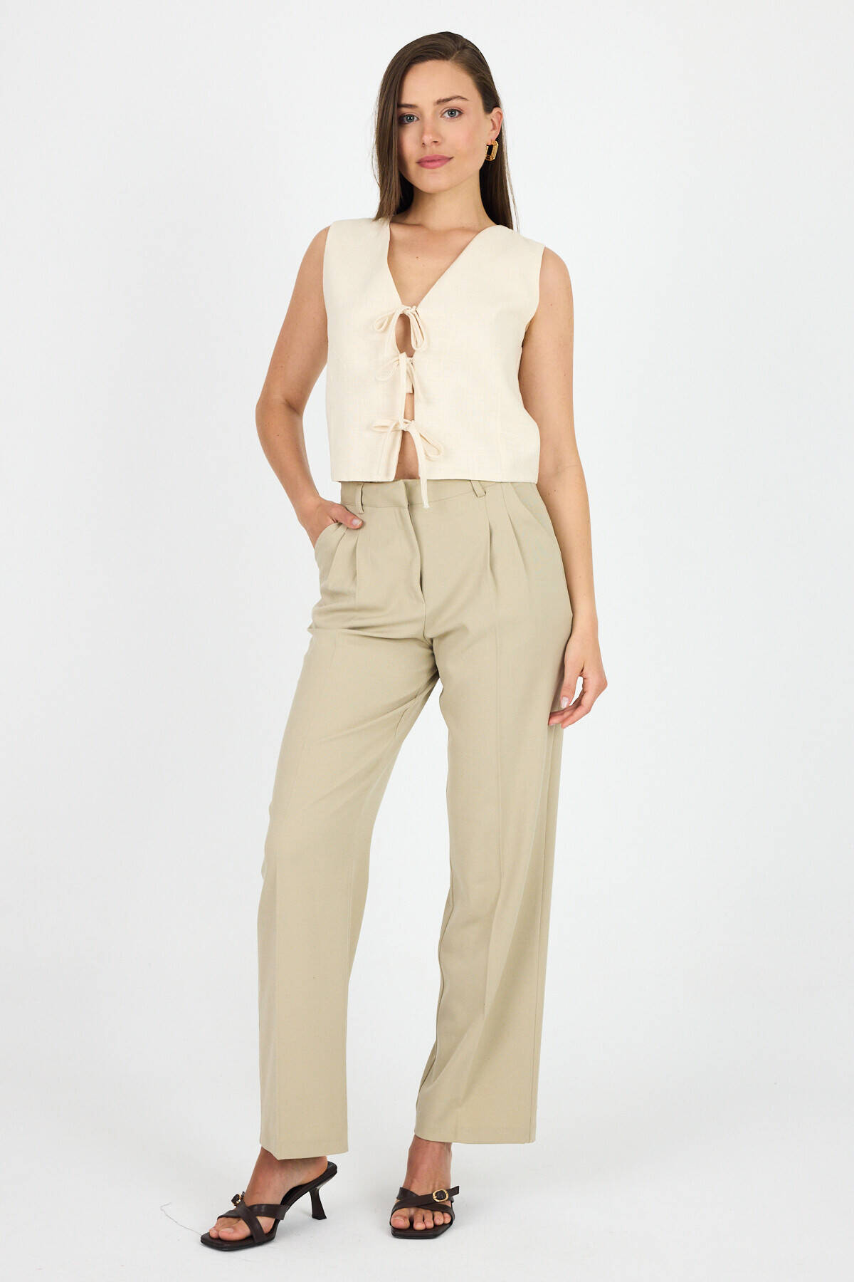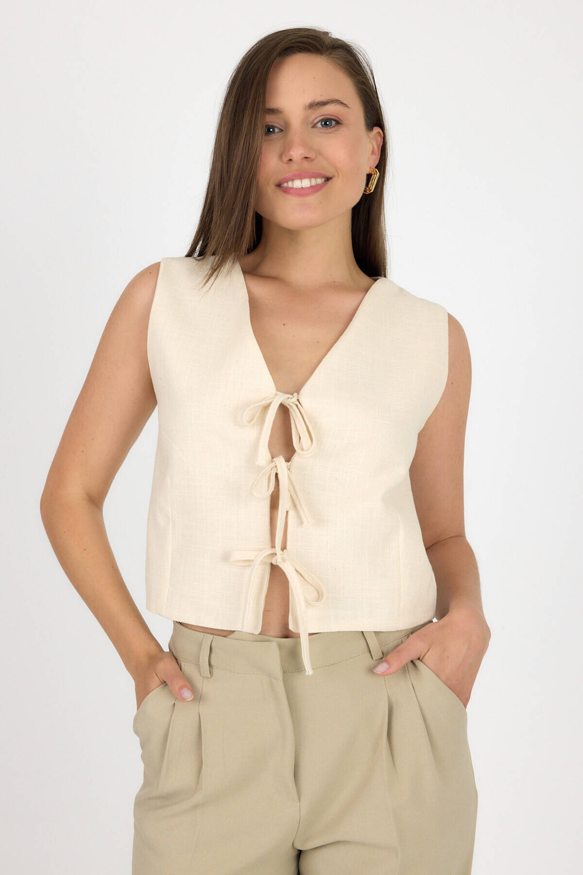 Natural Keten Görünümlü %100 Pamuk Bağlama Detaylı Yelek 3853