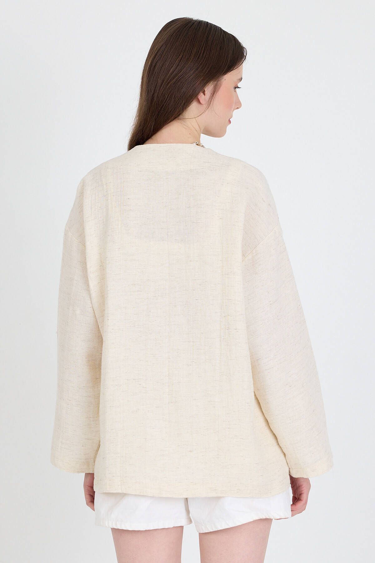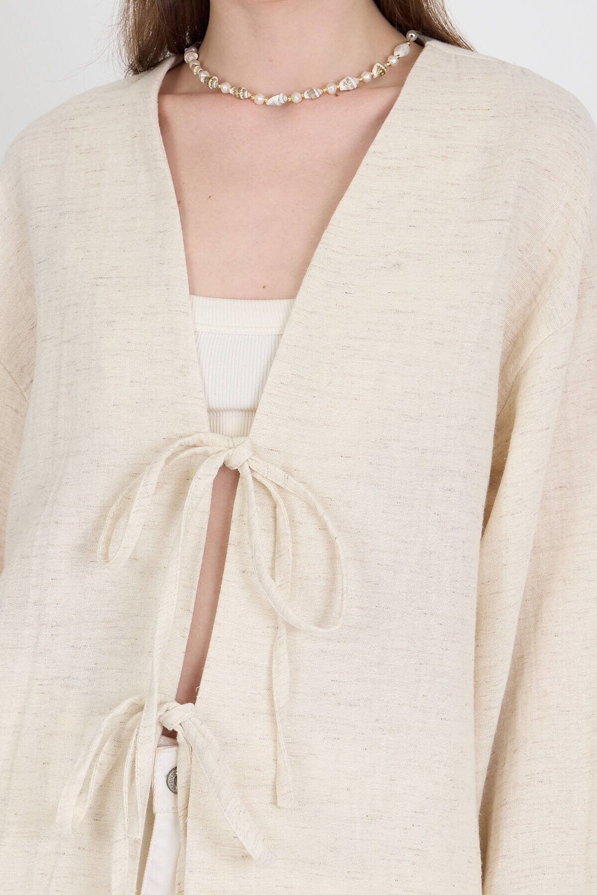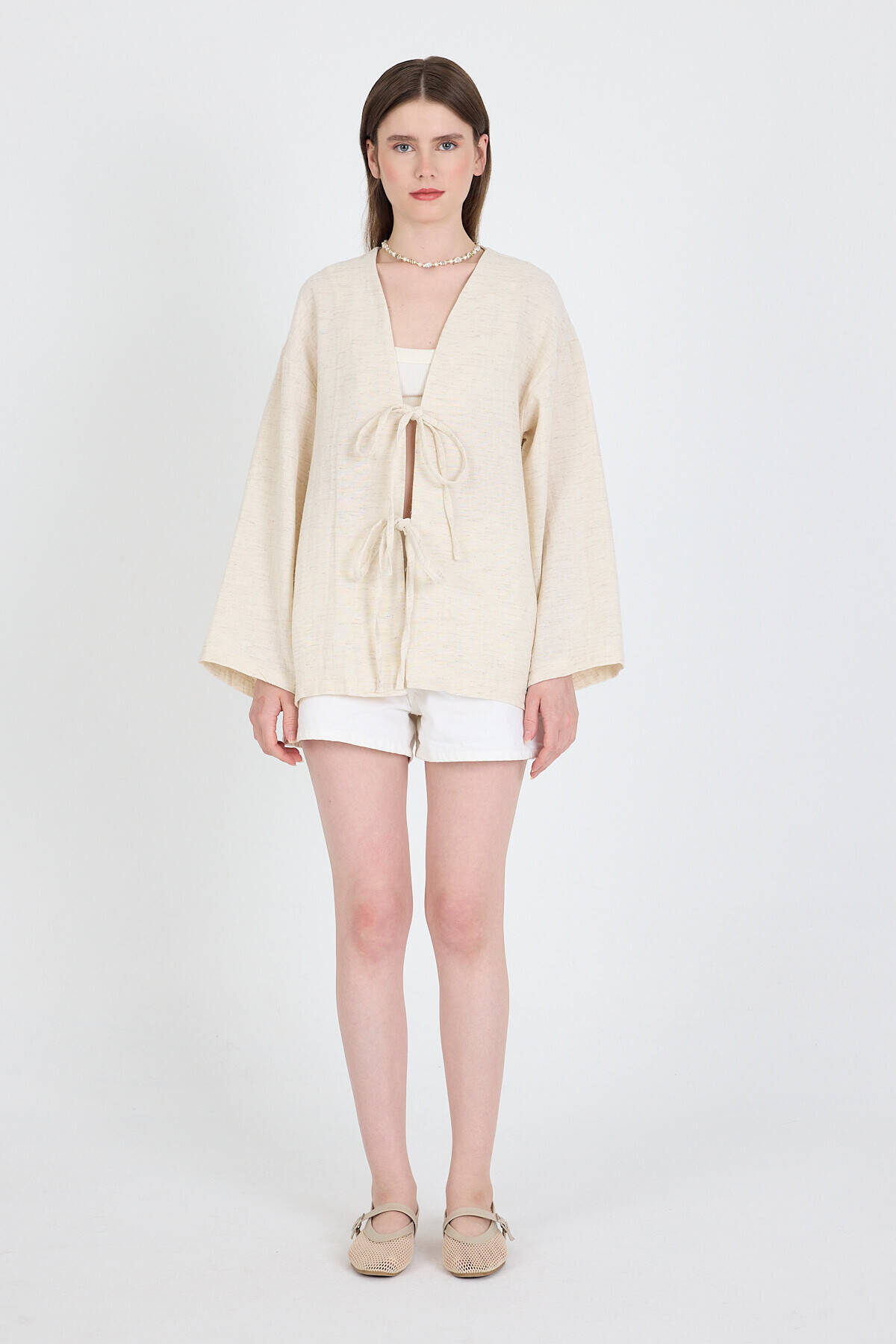Natural Keten Görünümlü %100 Pamuk Bağlamalı Kimono 4818A