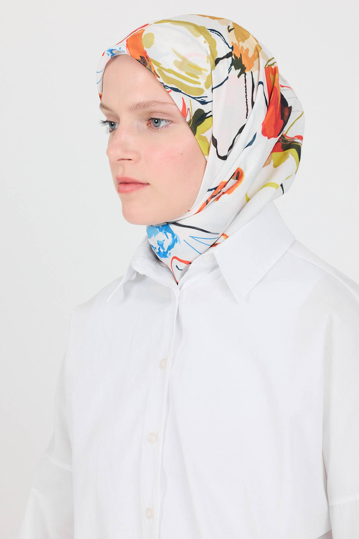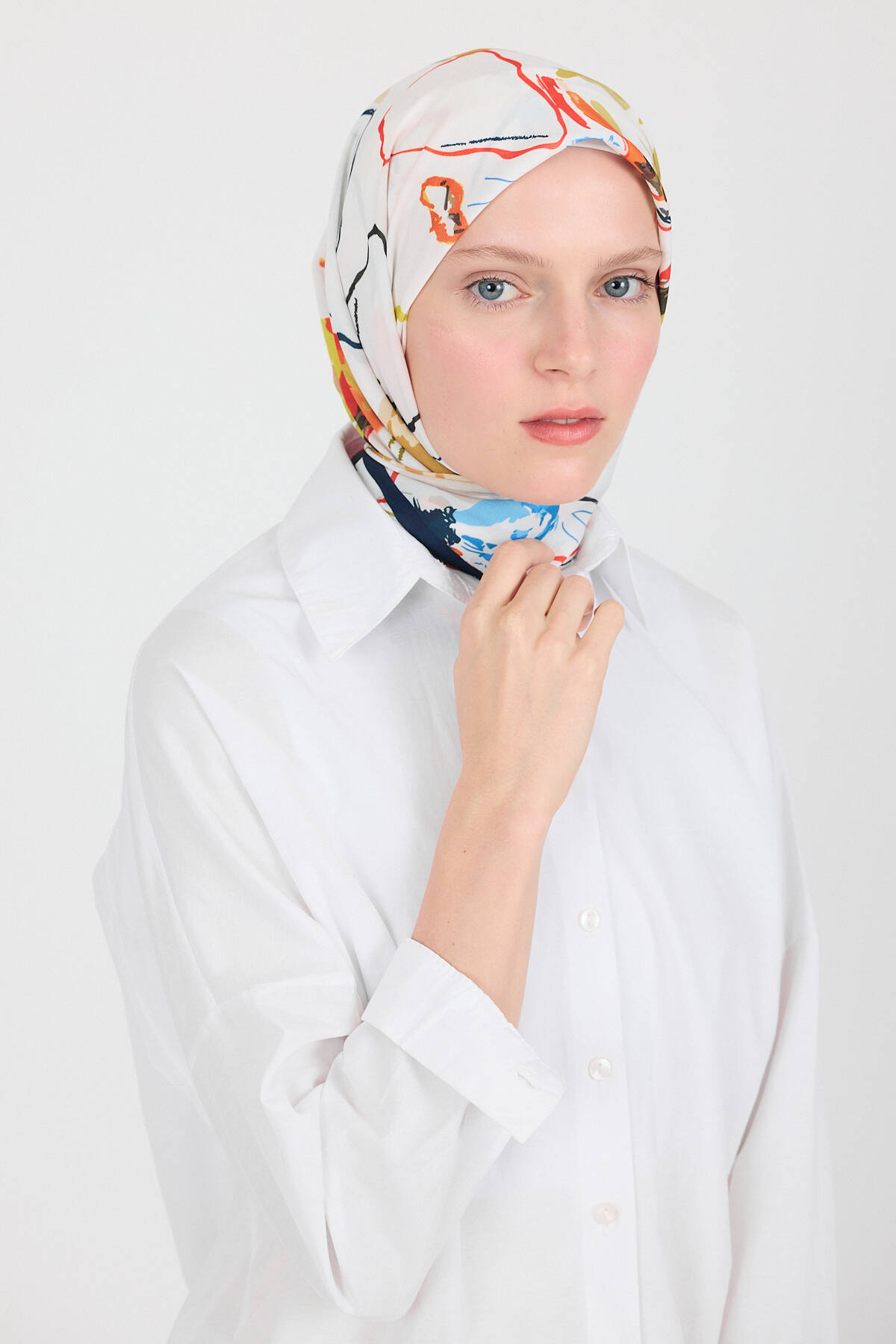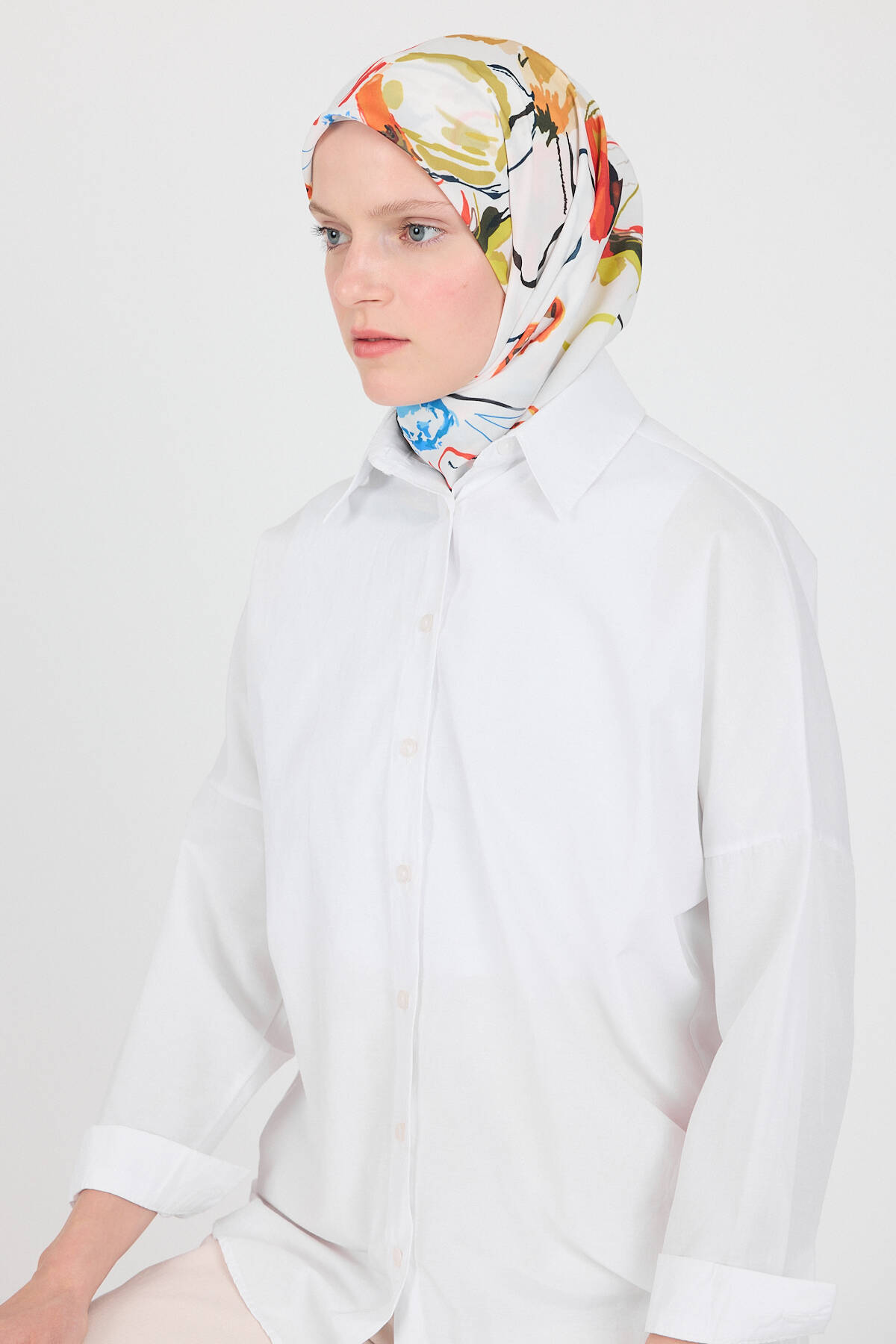 Beyaz Deri Kemer Detaylı Etnik Desenli Kimono 4363A