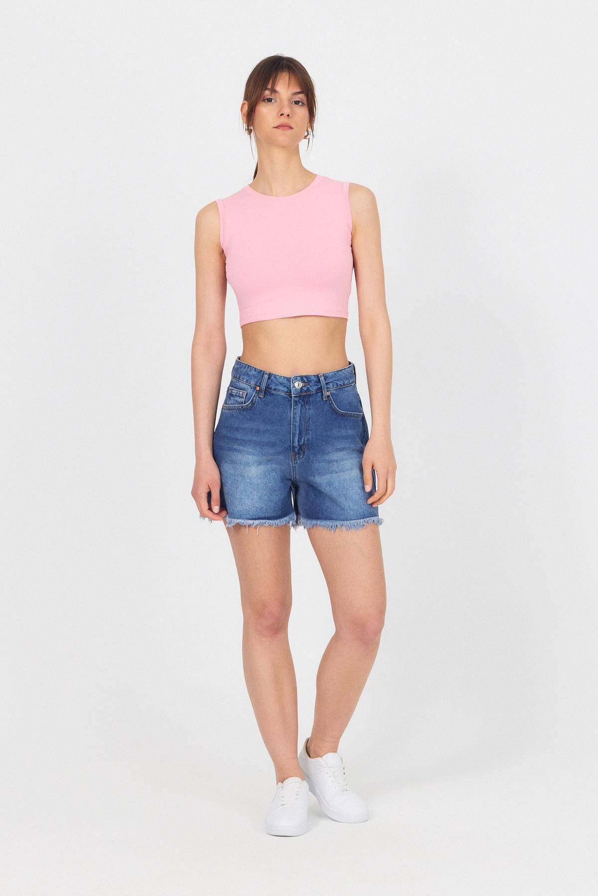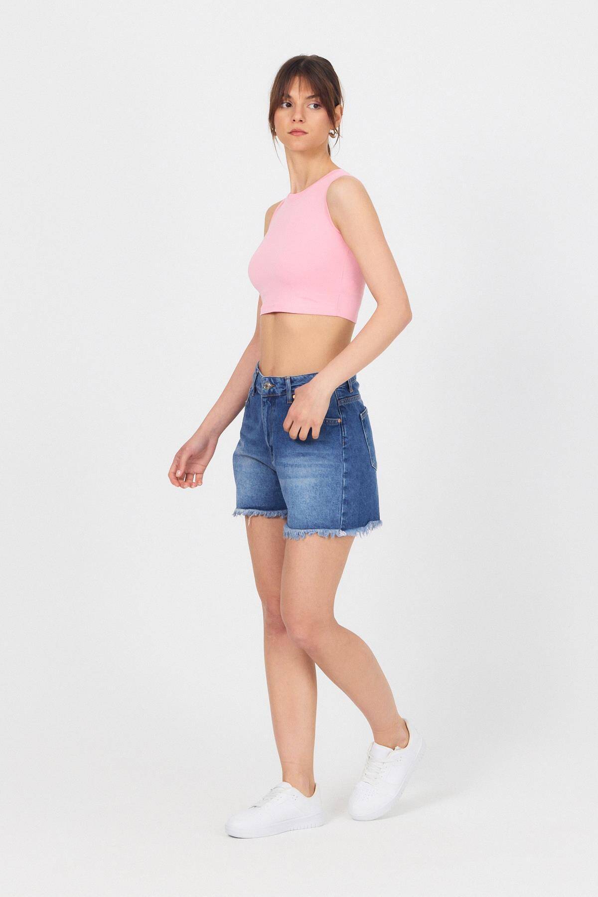 Pembe Bisiklet Yaka Crop Atlet 9189M