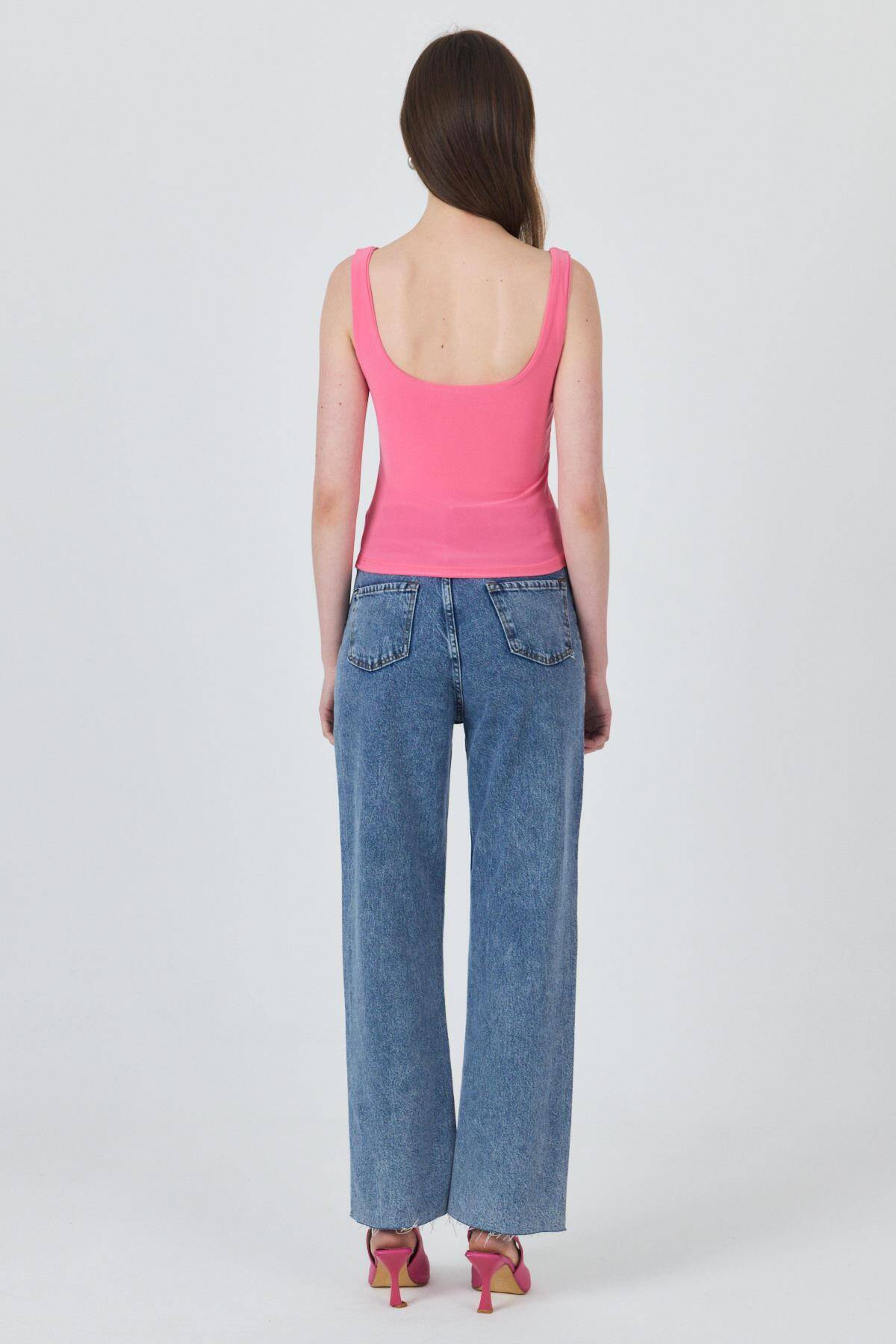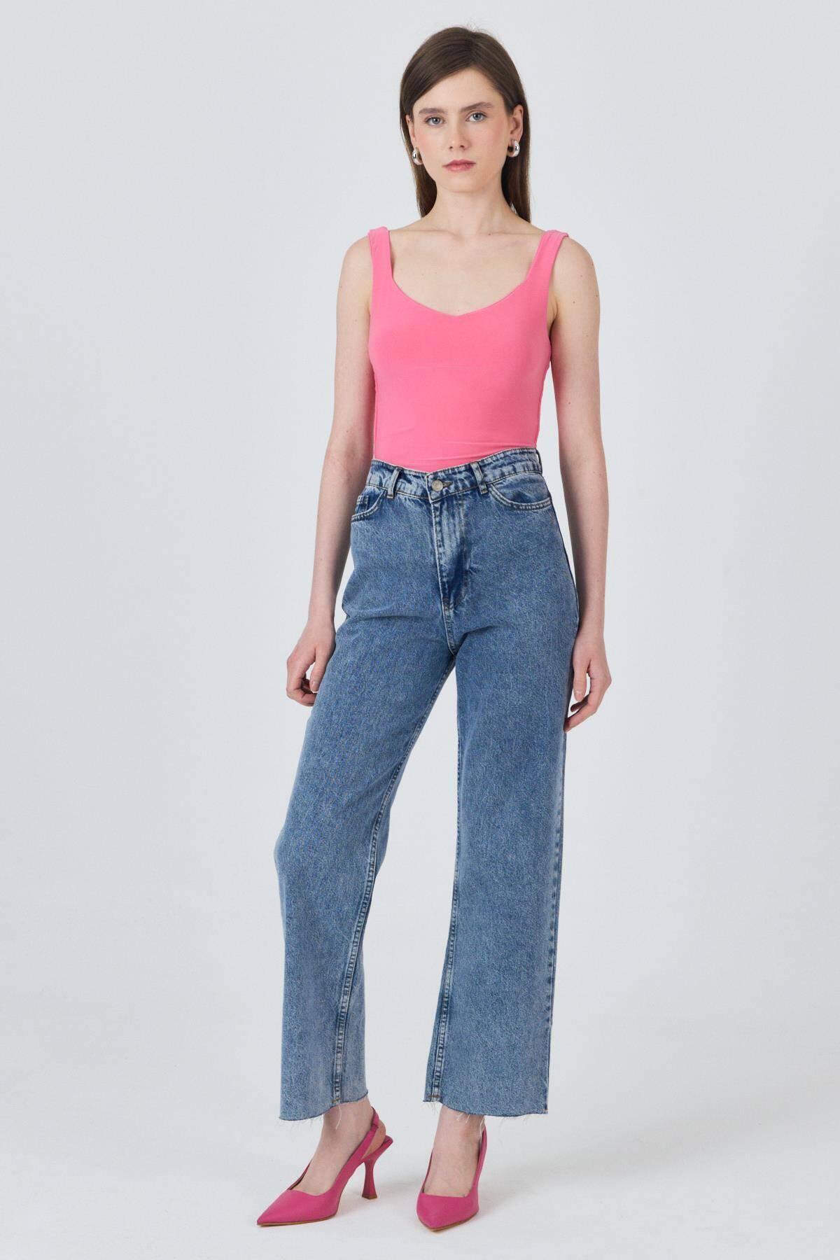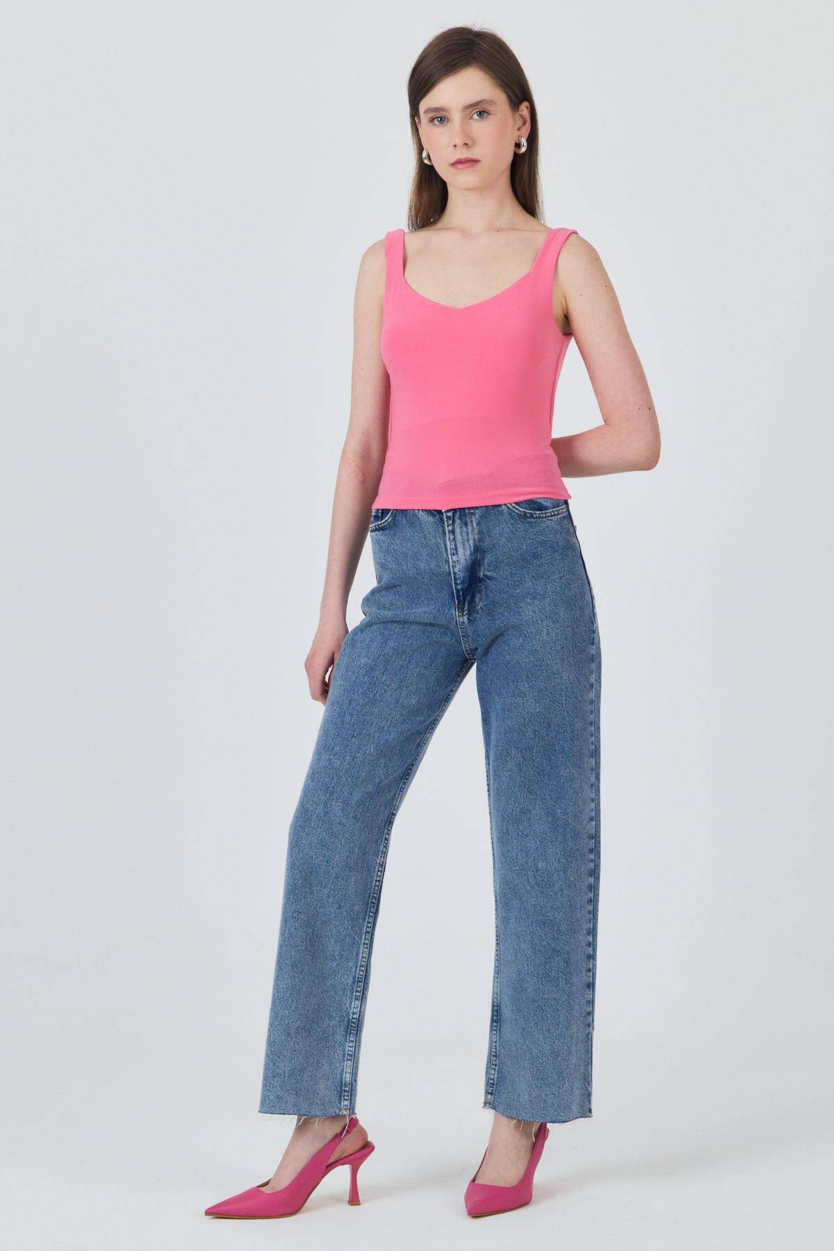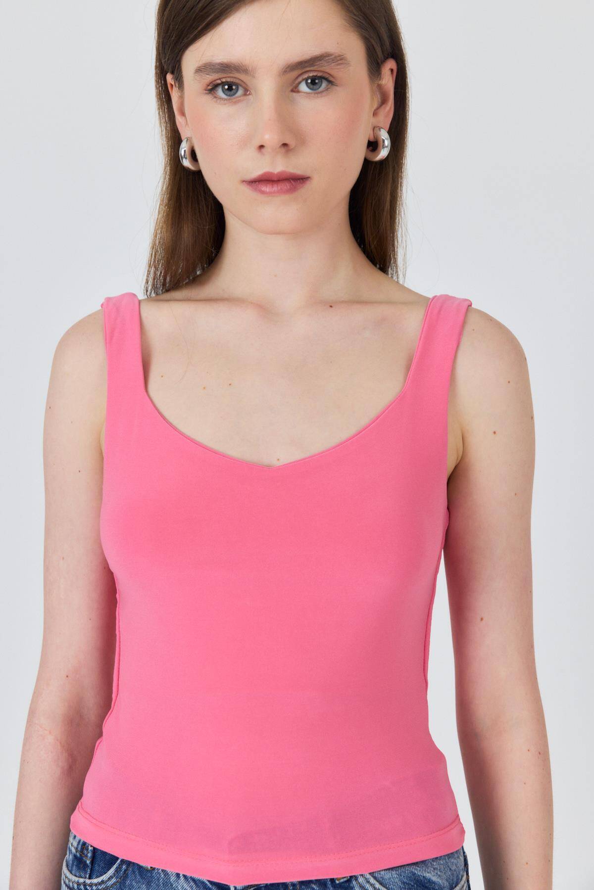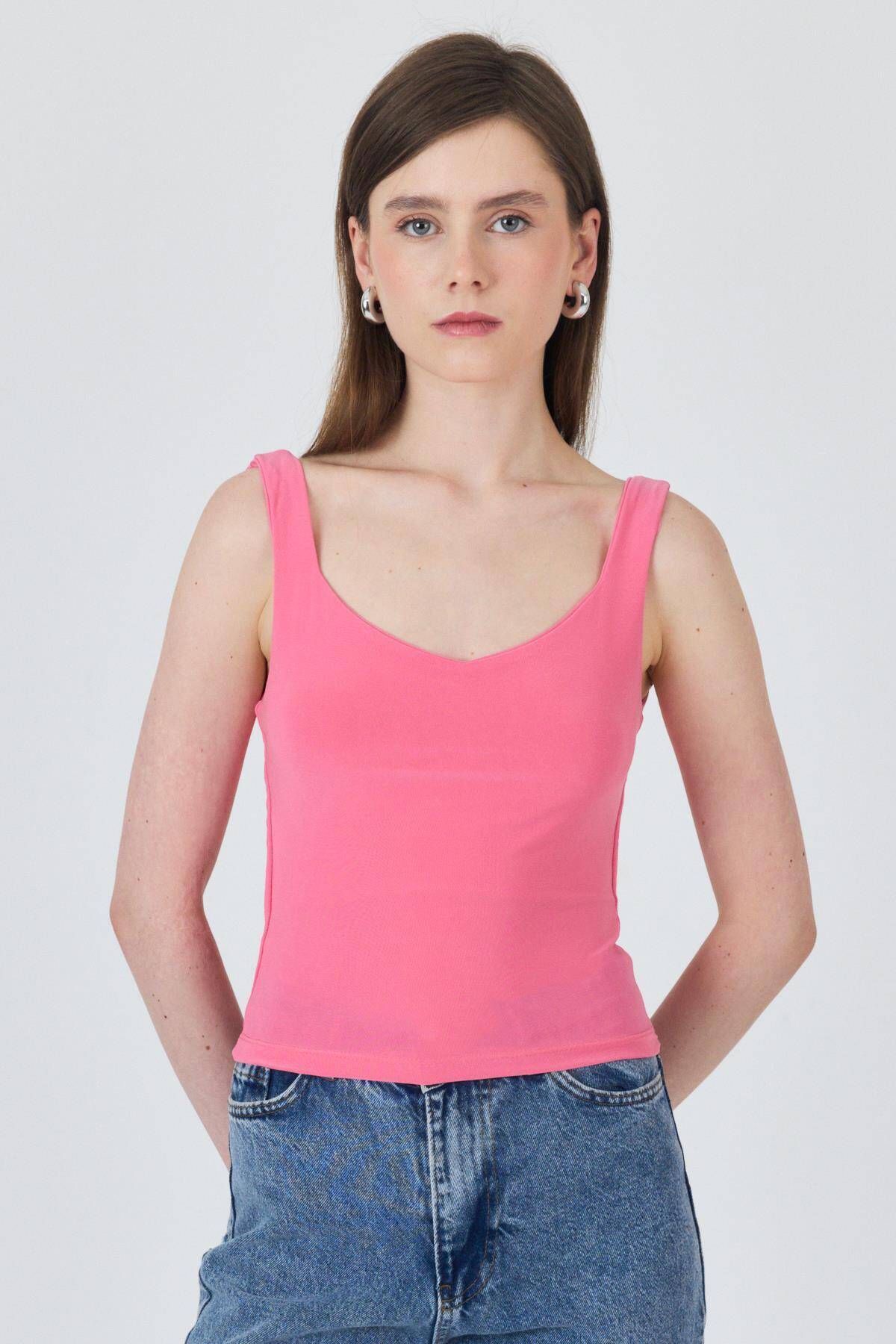 Pembe Kalın Askılı V Yaka Bluz 13293