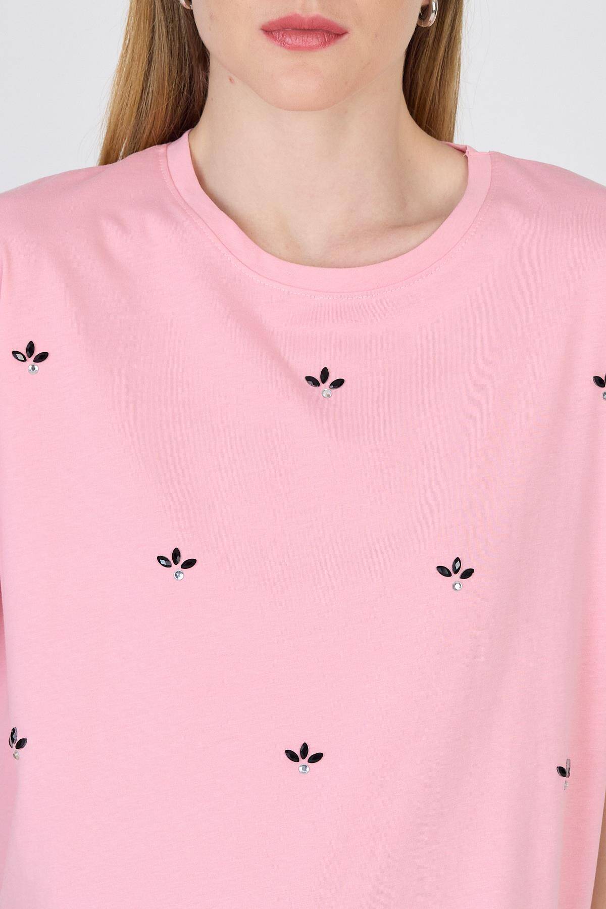 Pembe Yazı Baskılı %100 Pamuk Oversize Tişört 2150-18M