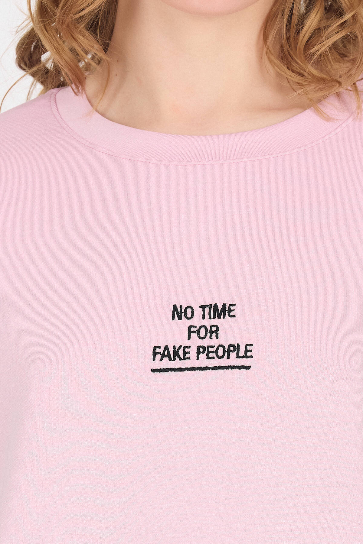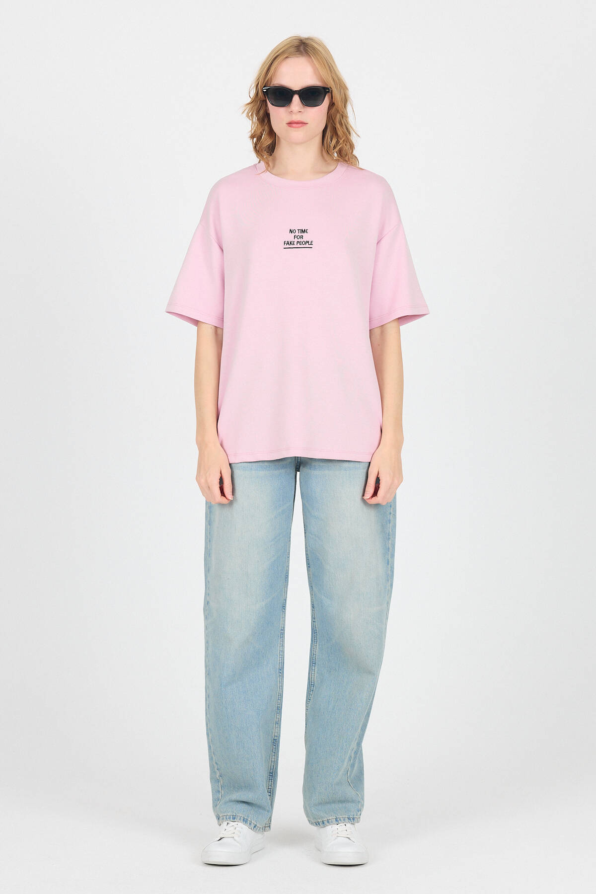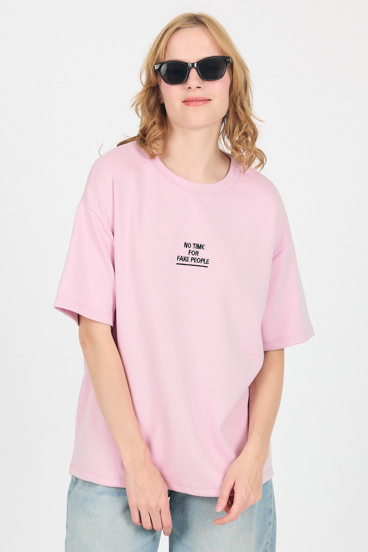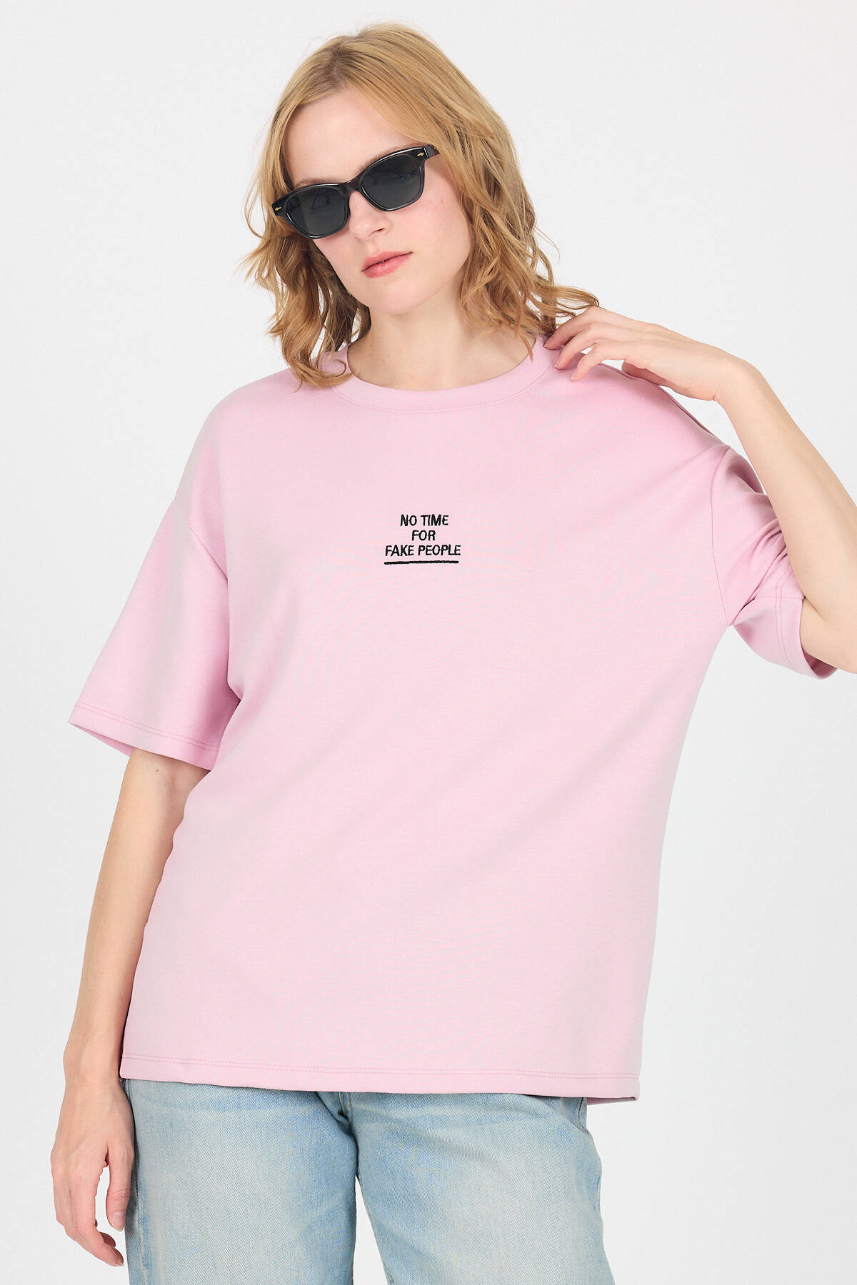 Pembe Yumuşak Dokulu Yazı Baskılı Oversize Tişört 6265
