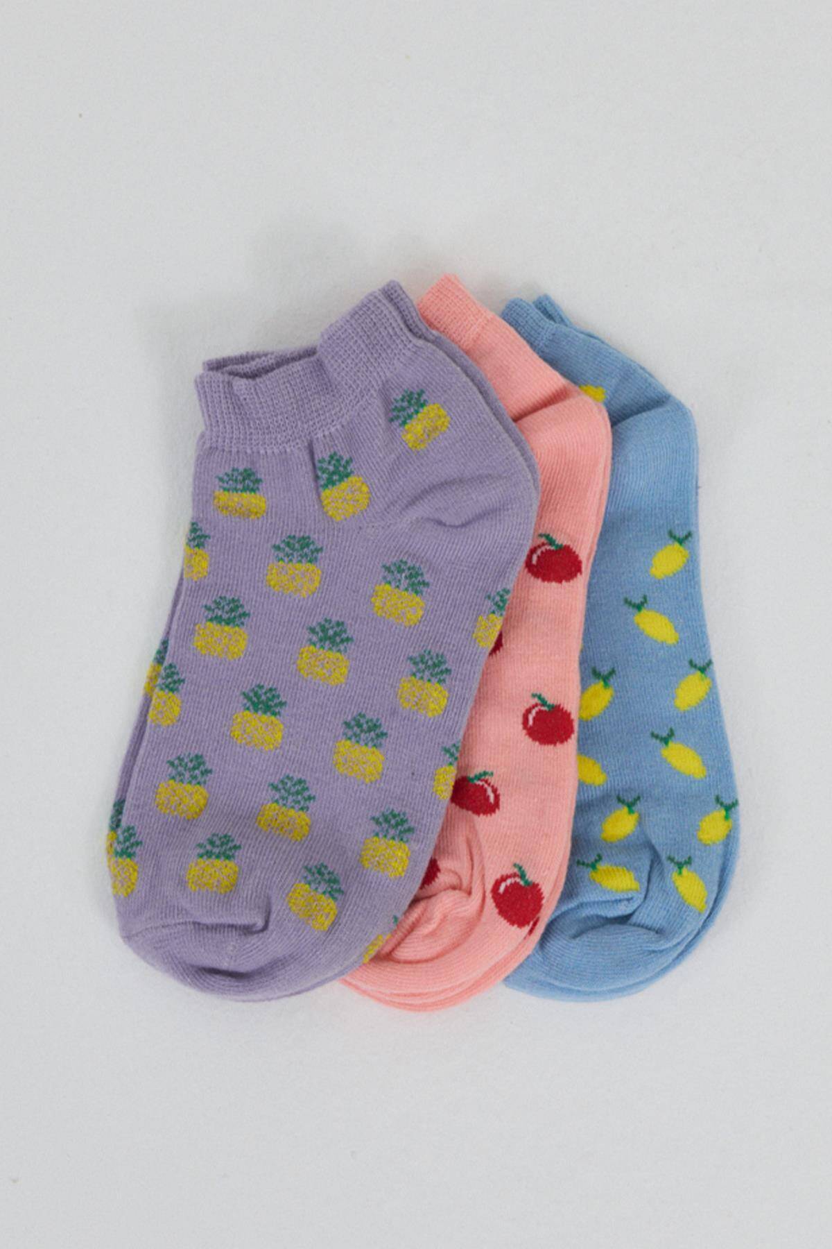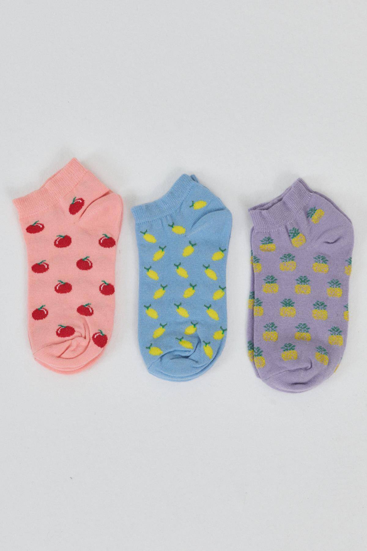 Renkli 3'lü Meyve Desenli Örme Patik Çorap 1117