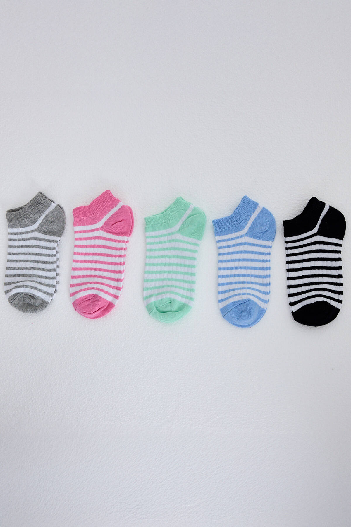 Renkli Çizgili 5'li Örme Patik Çorap 1203