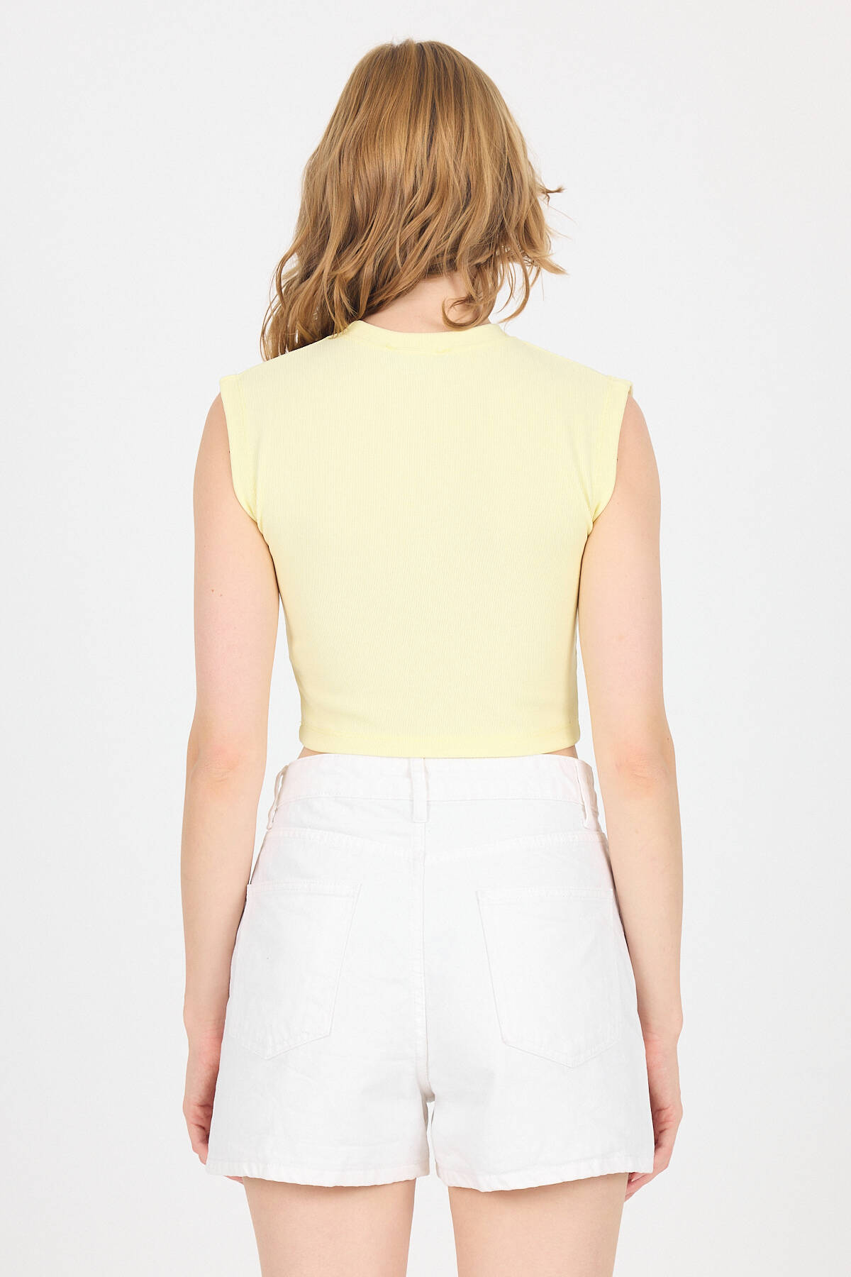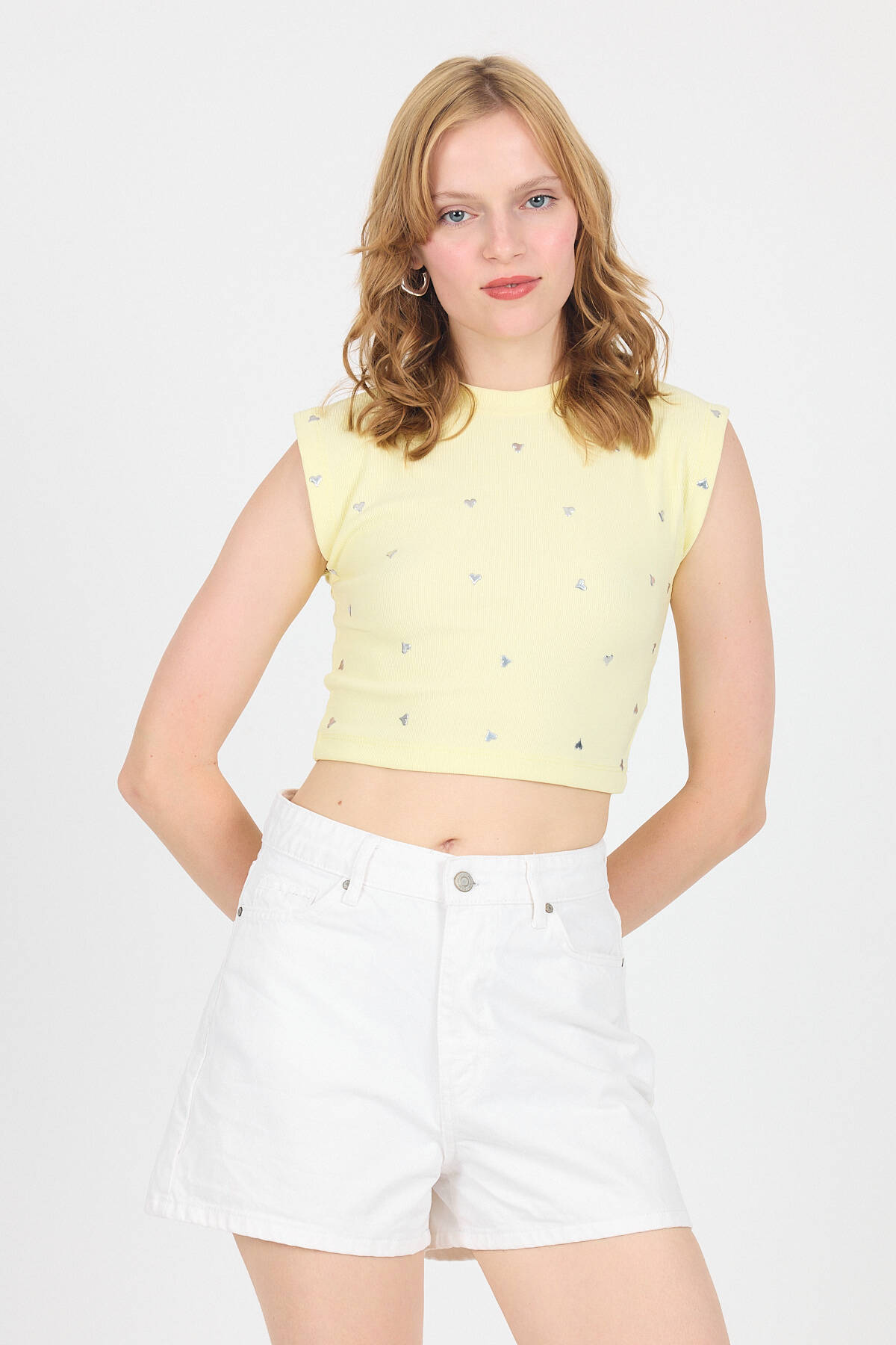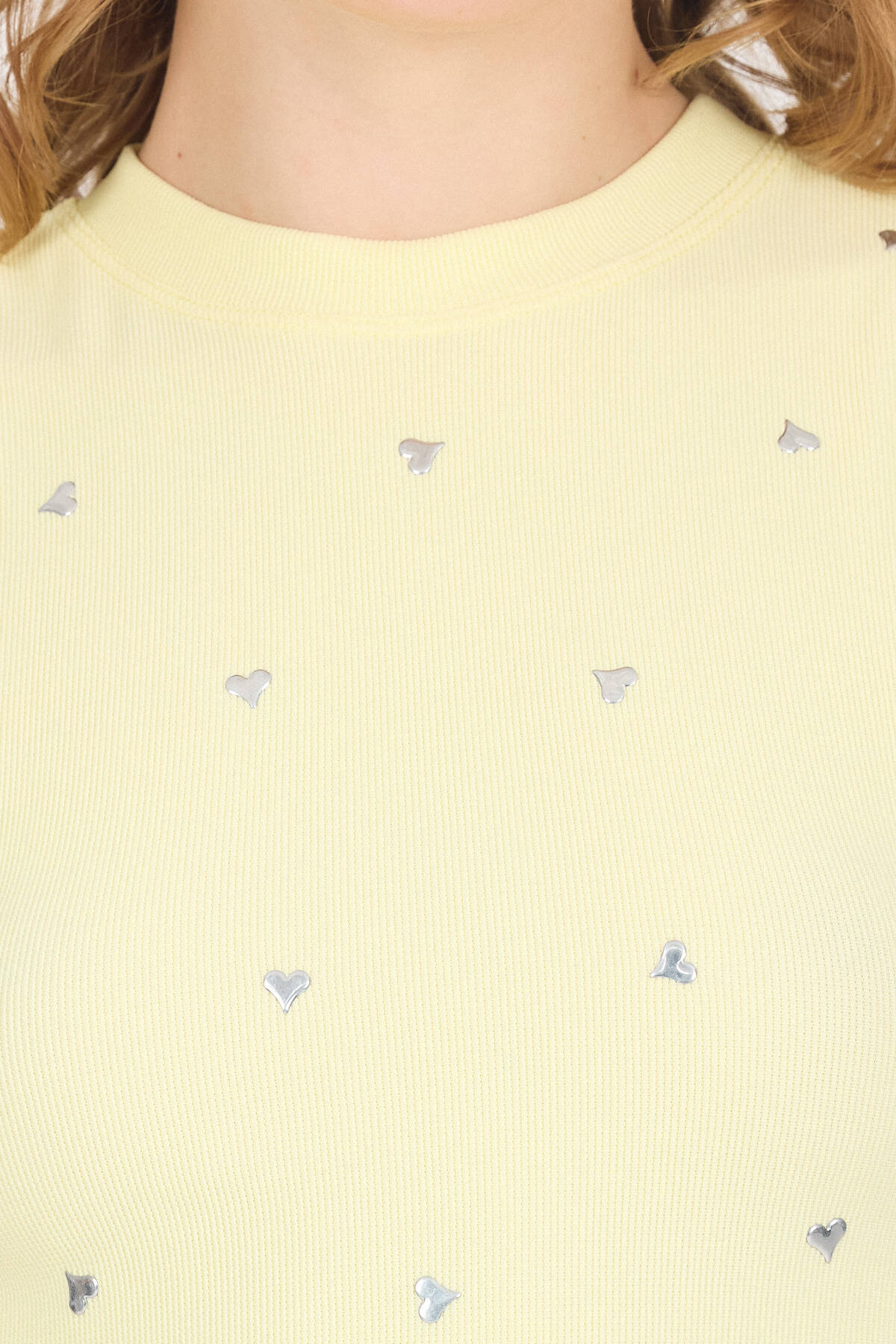 Sarı Gümüş Kalp Detaylı Crop Tişört 2499