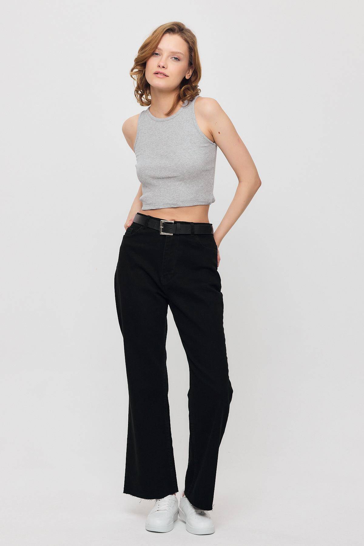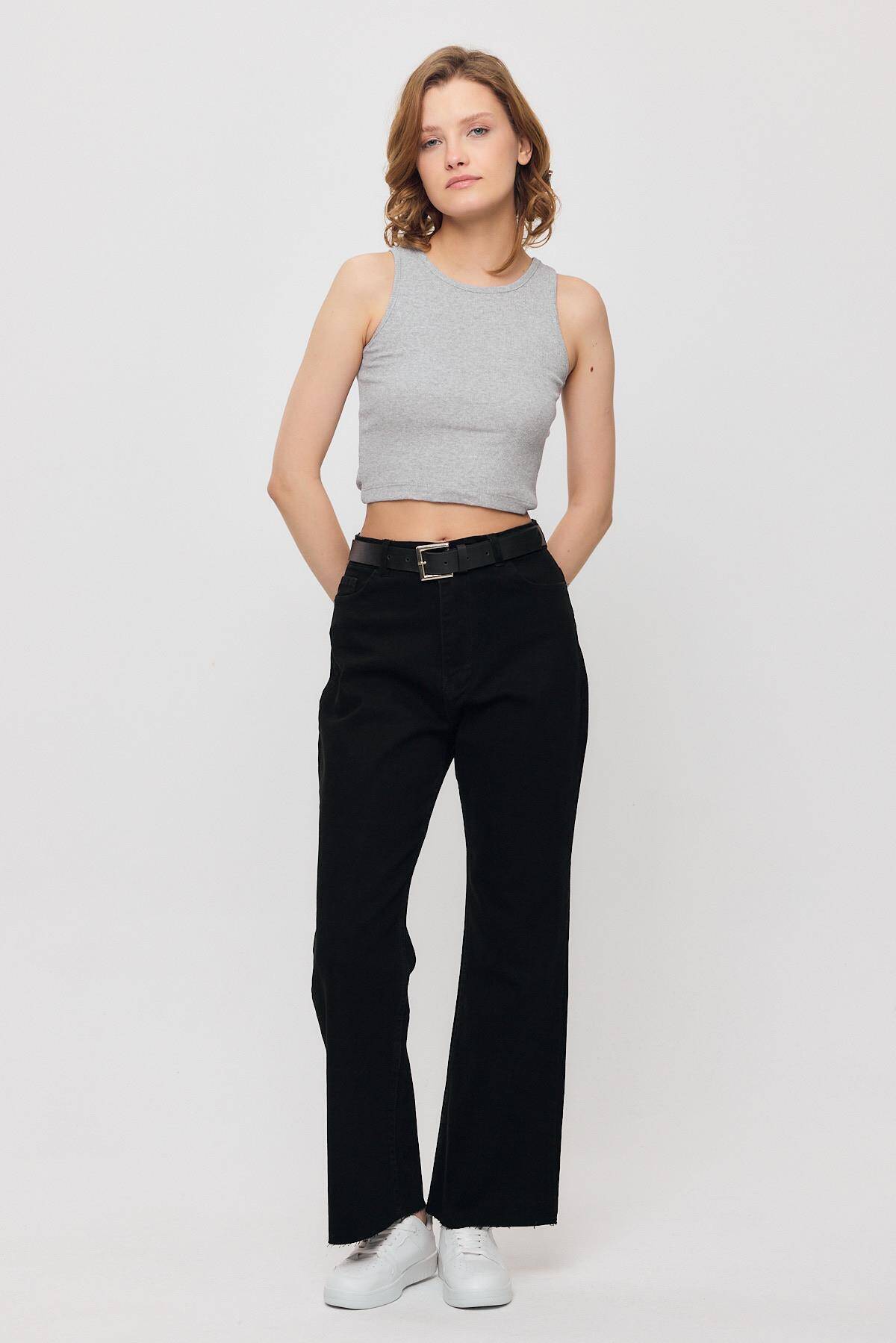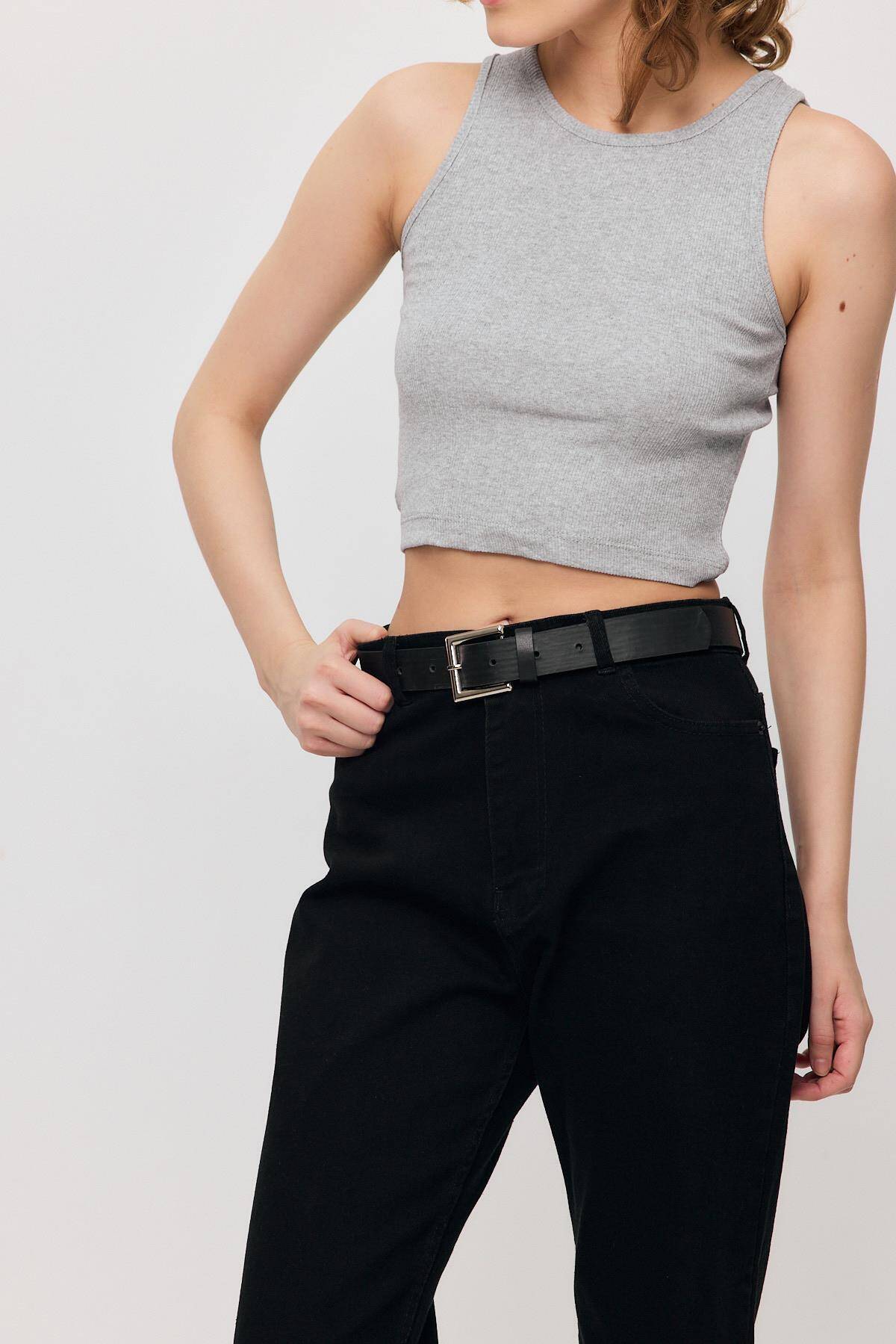 7149A Belden Bağlamalı Uzun Kaşe Kaban Siyah