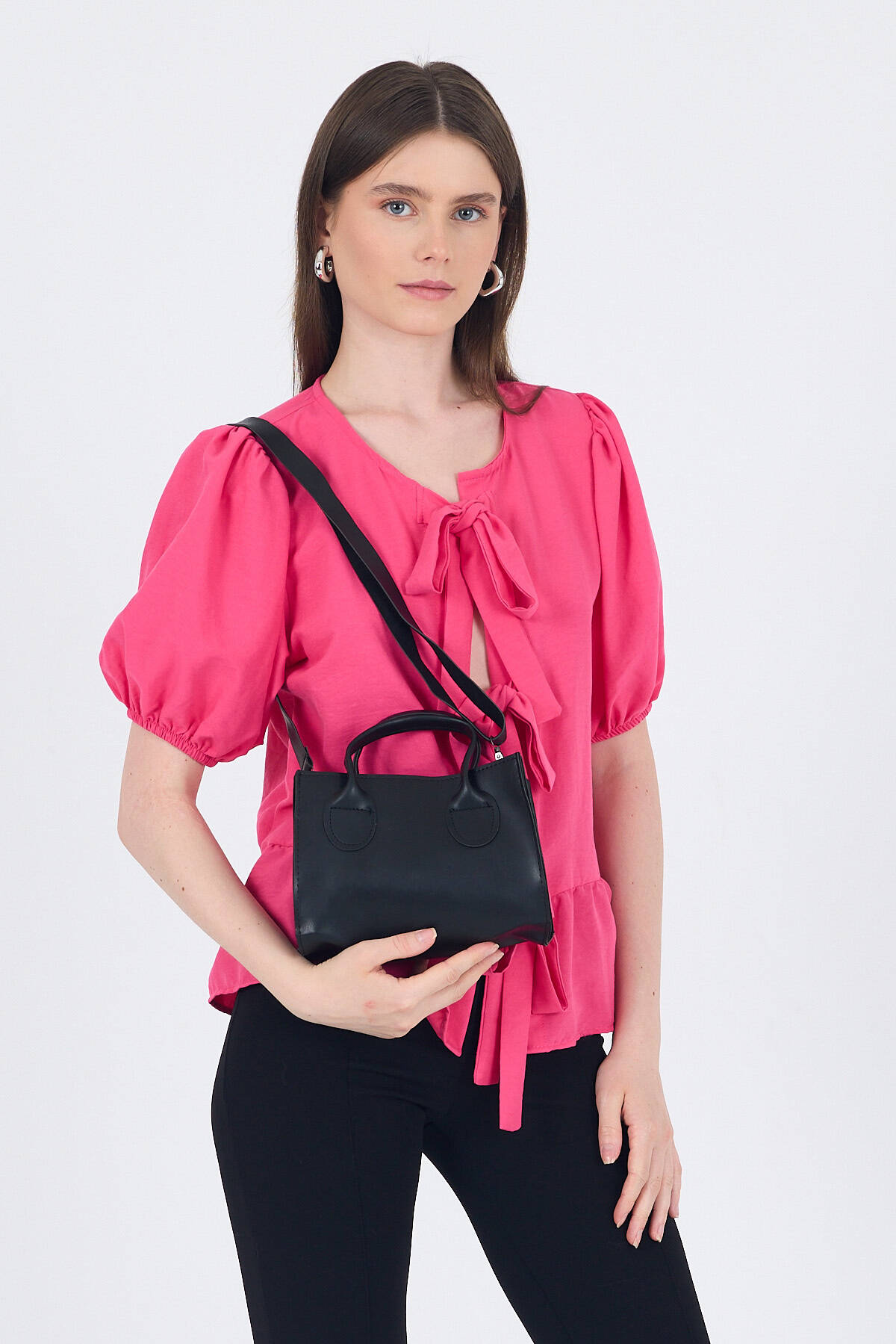7149A Belden Bağlamalı Uzun Kaşe Kaban Siyah