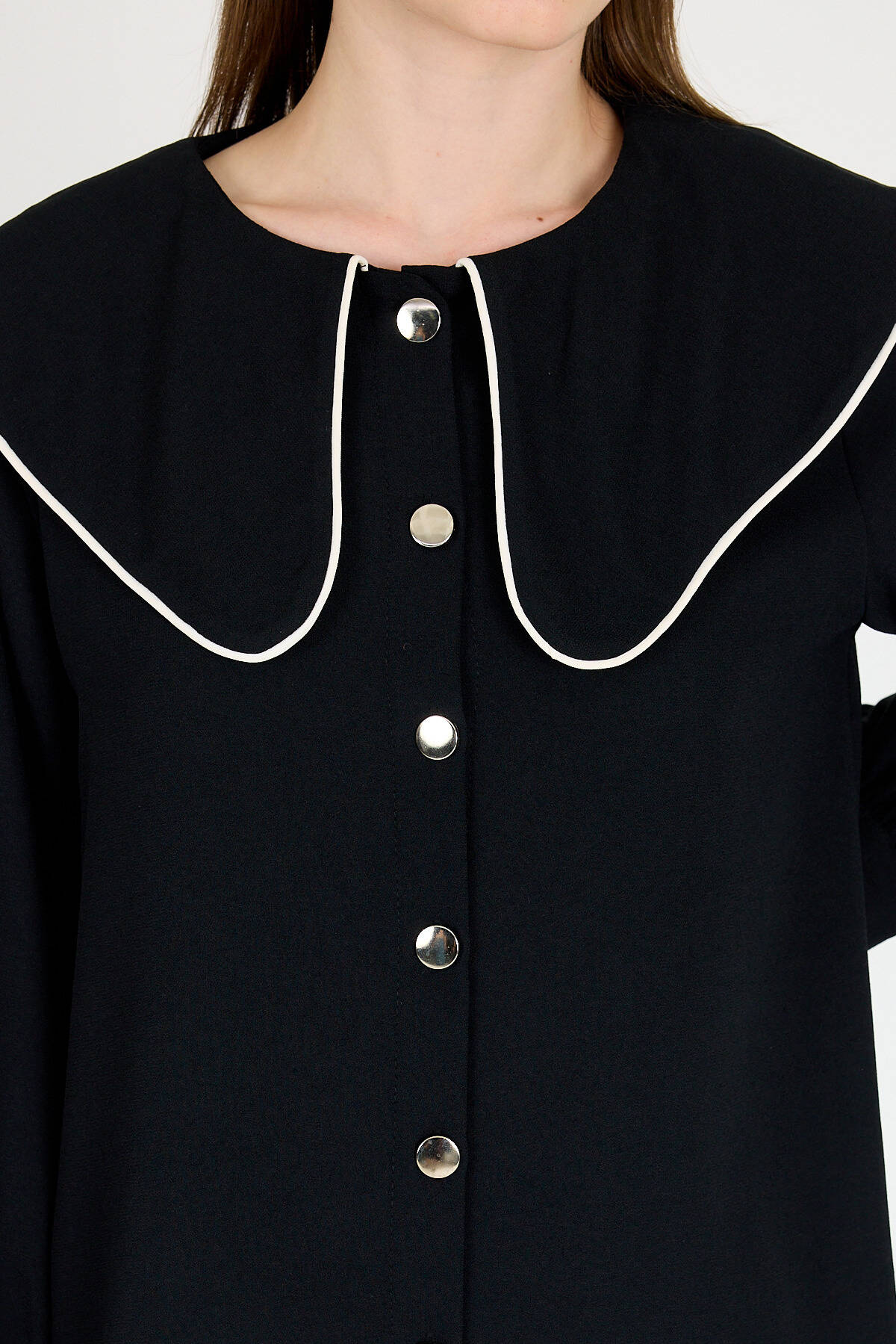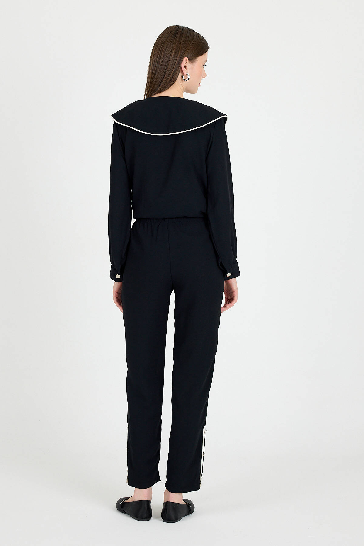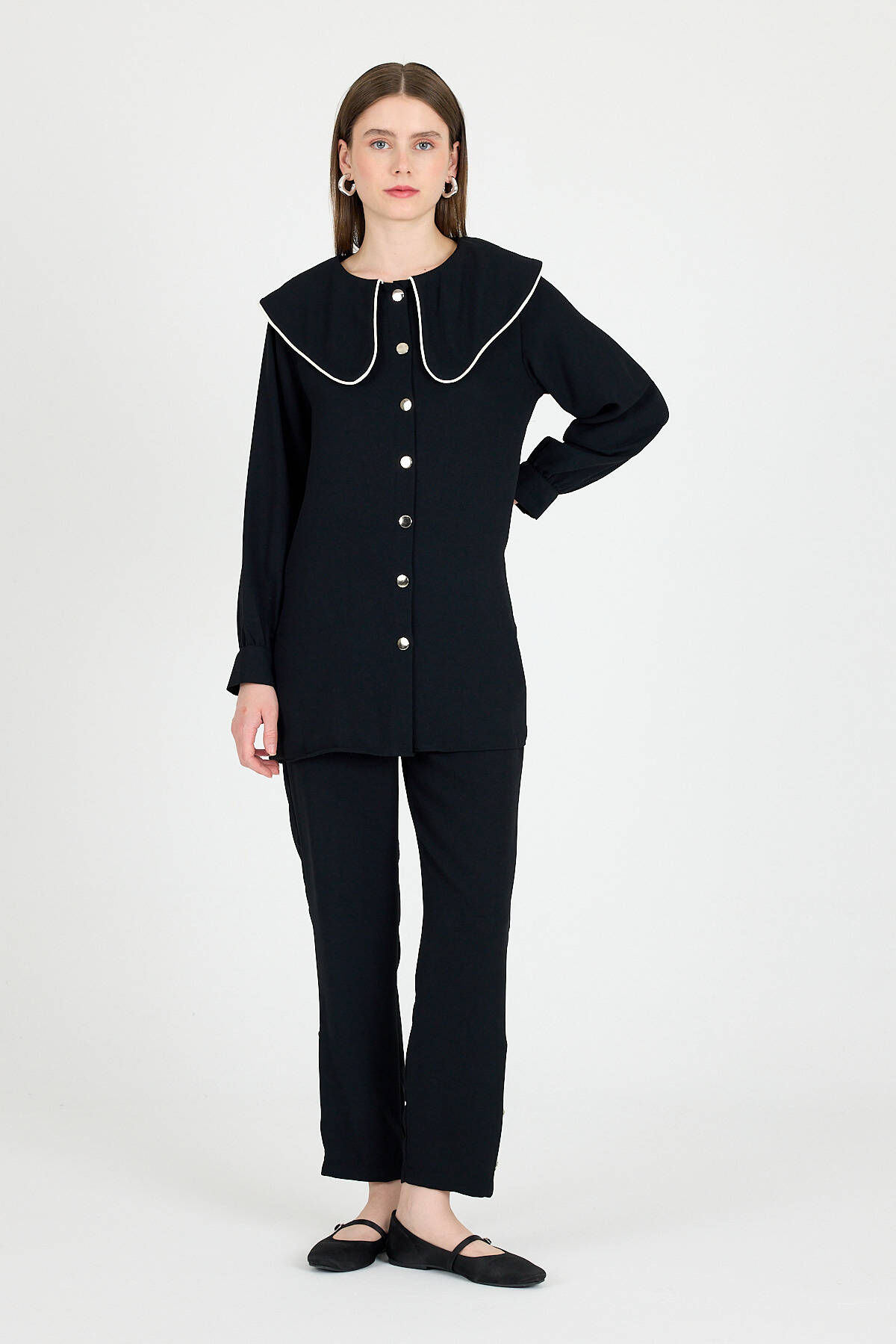 Siyah Bebe Yaka Düğmeli Tunik ve Yanı Şerit Detaylı Pantolon Takım 4661A