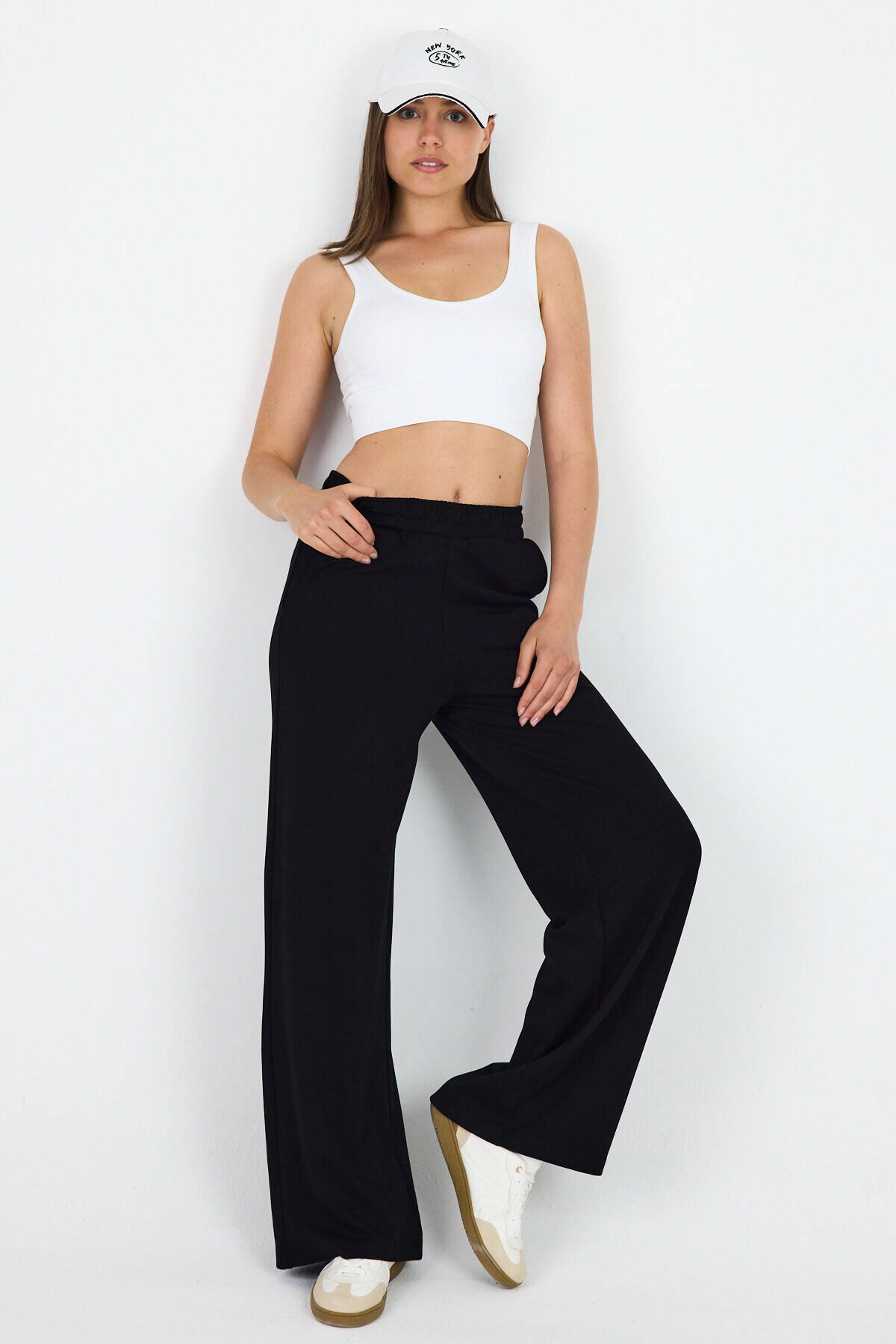 Siyah Bel Lastik Geniş Paça Eşofman 2001
