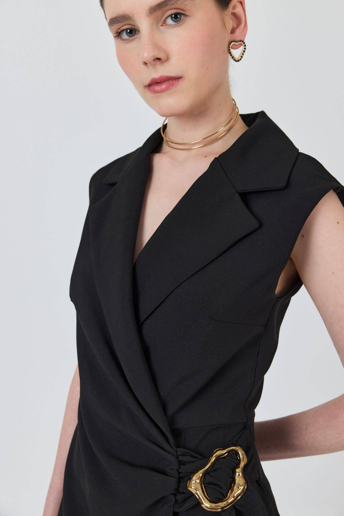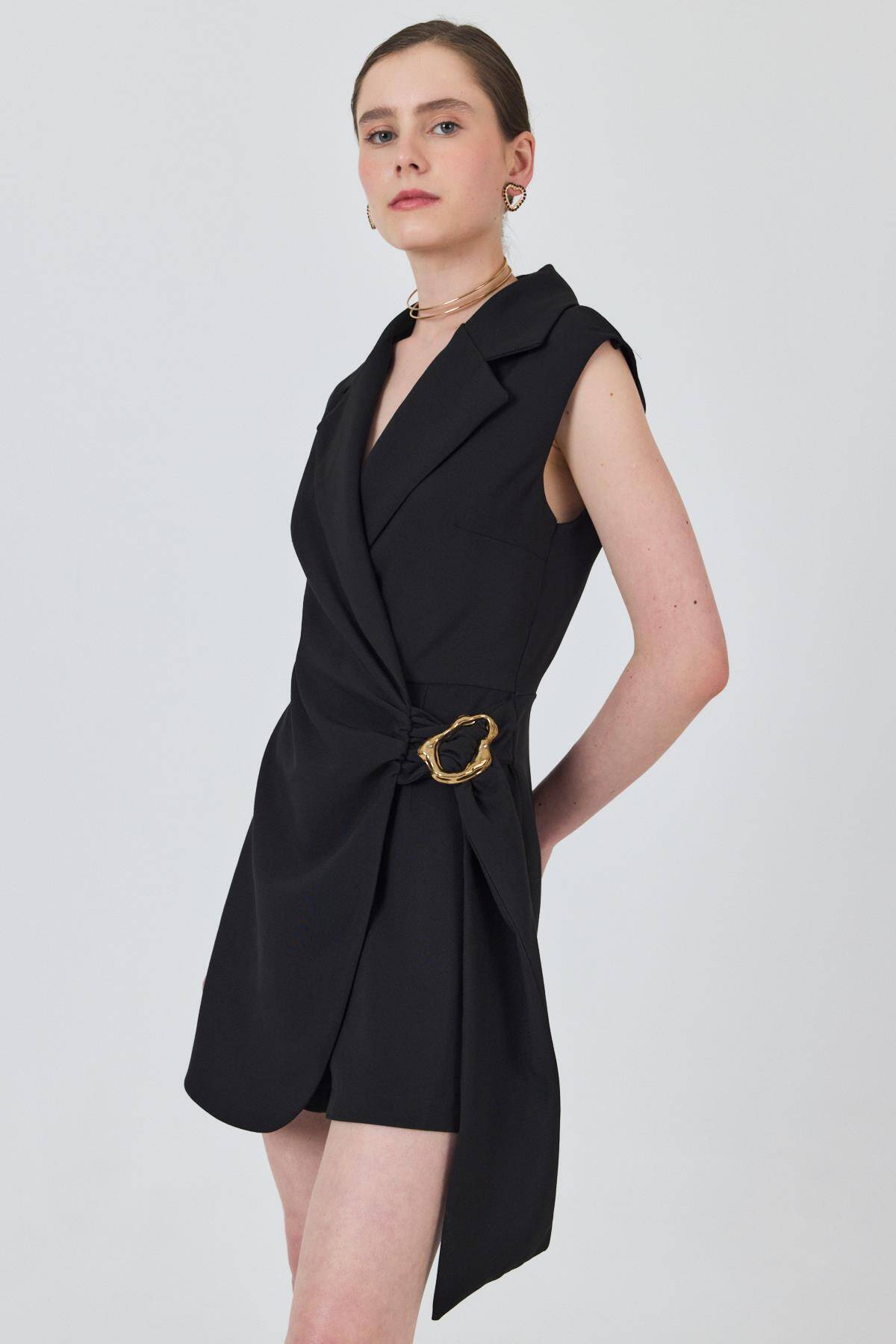 Siyah Bel Toka Detaylı Tulum 251901