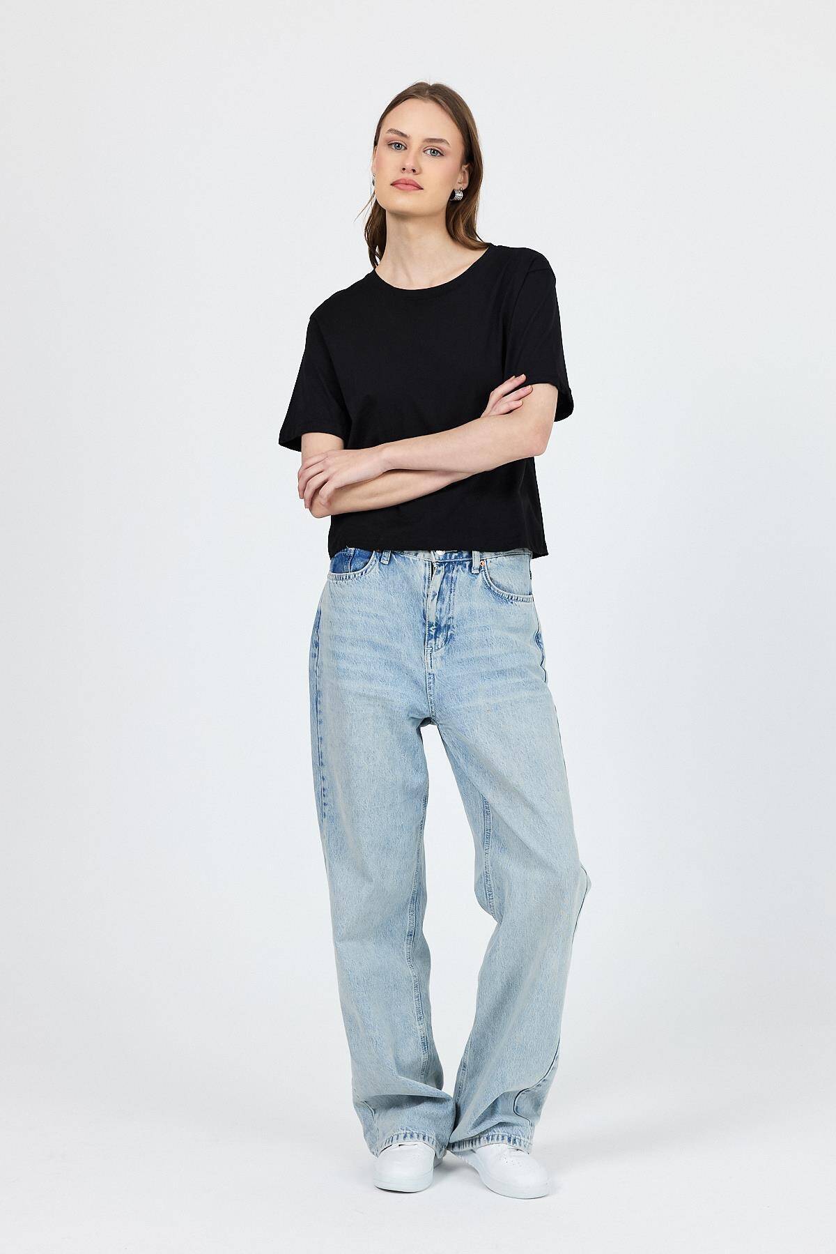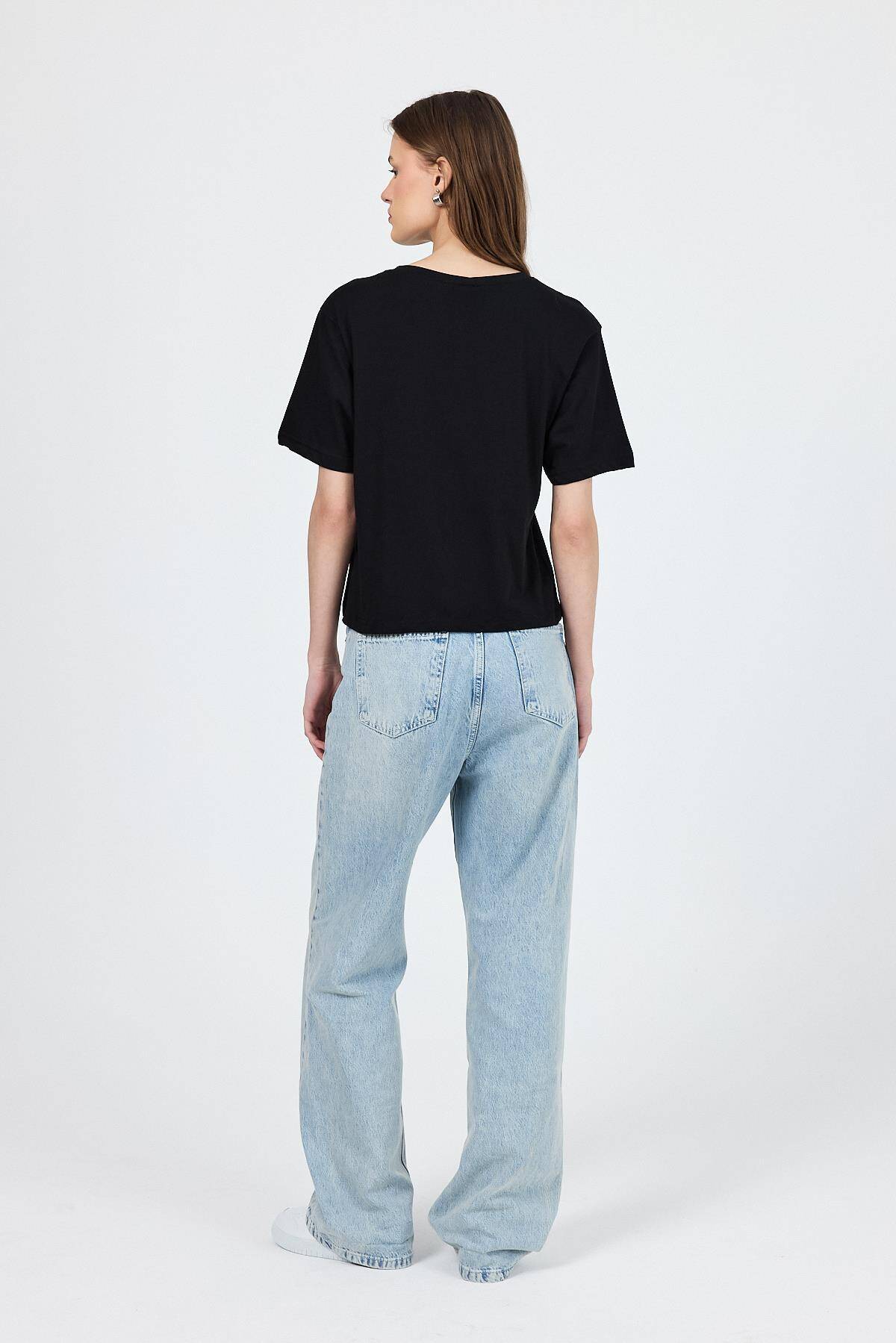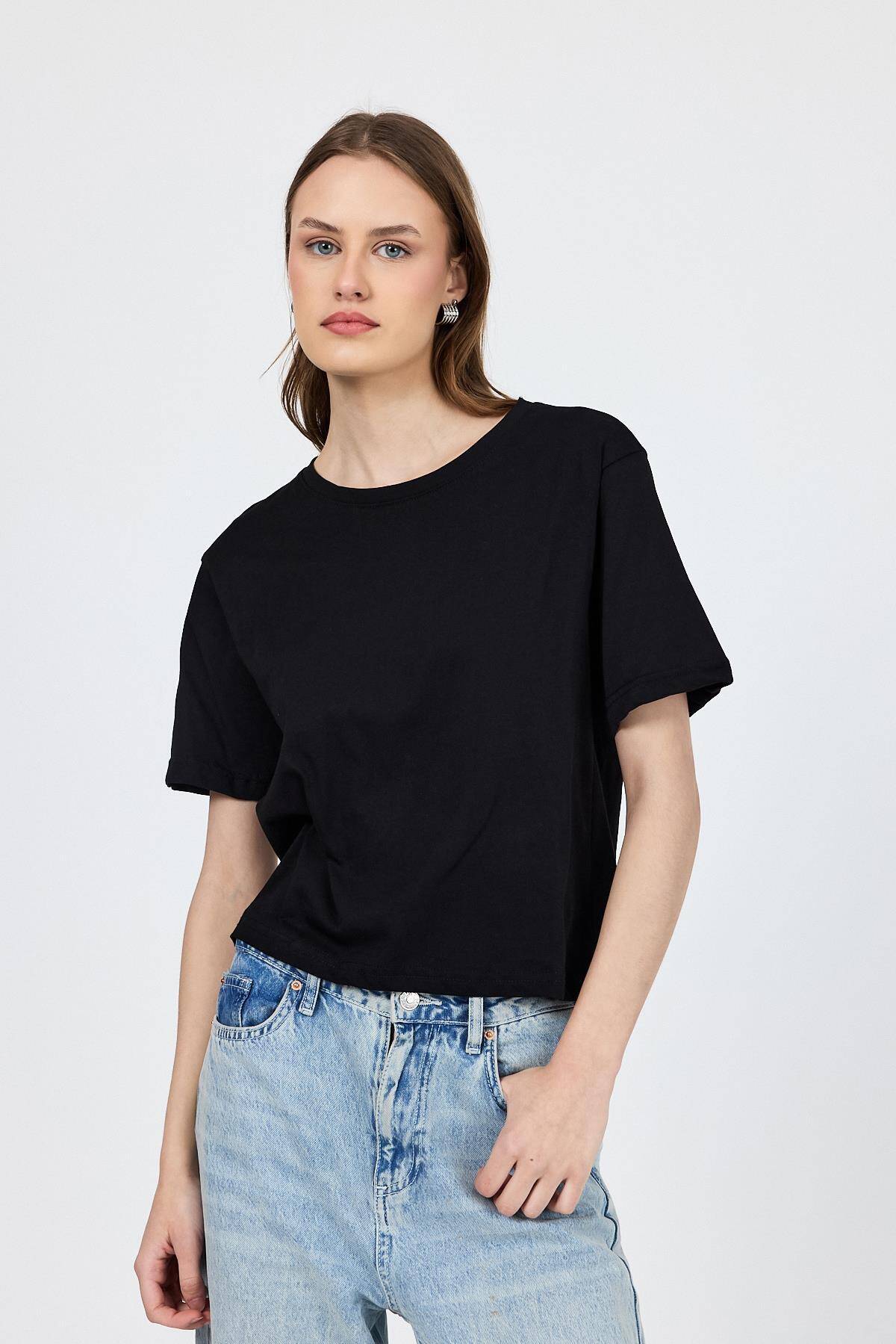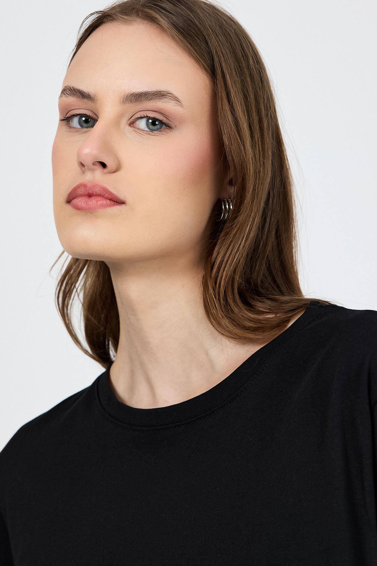 Siyah Bisiklet Yaka %100 Pamuk Relaxed Fit Tişört 2142M