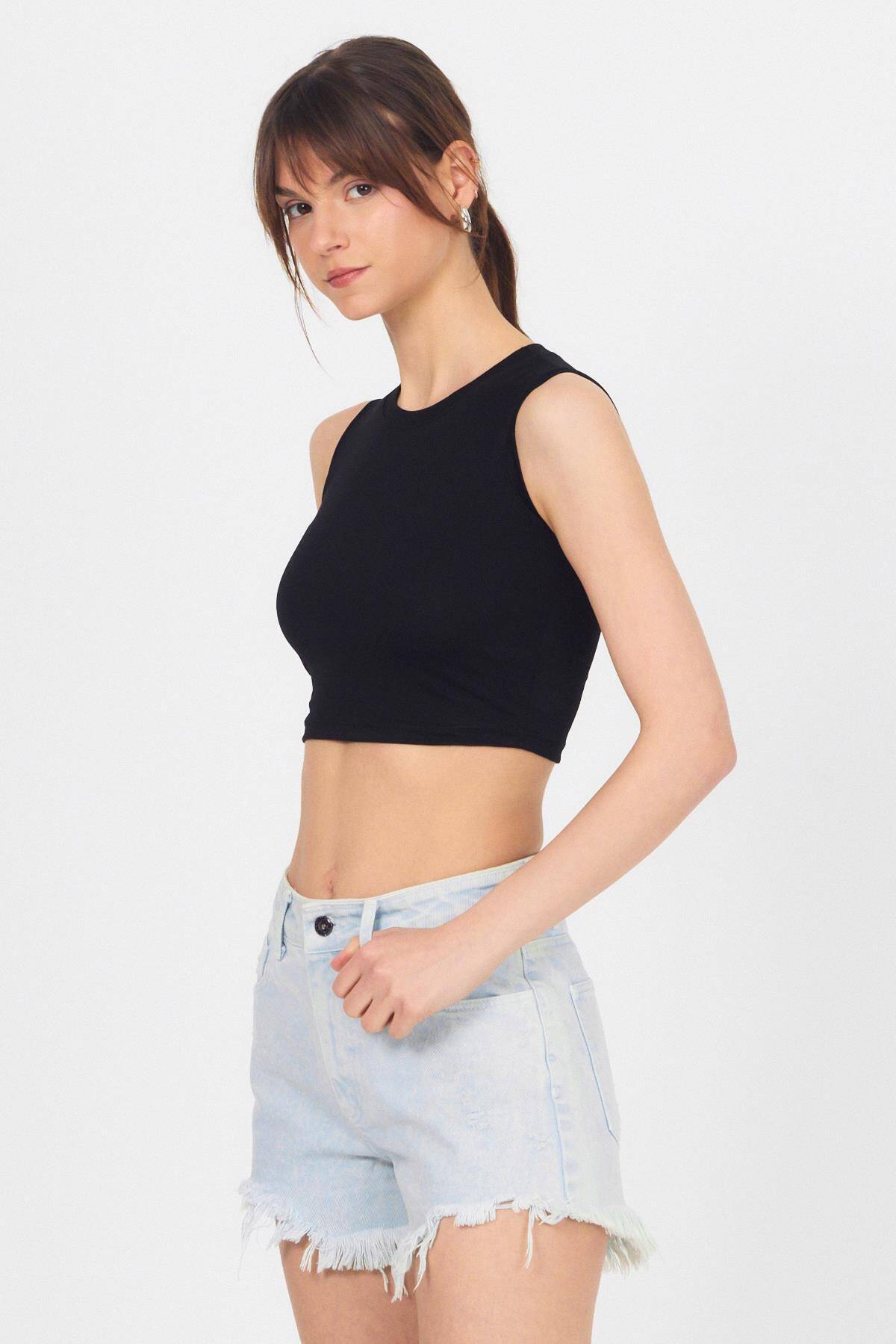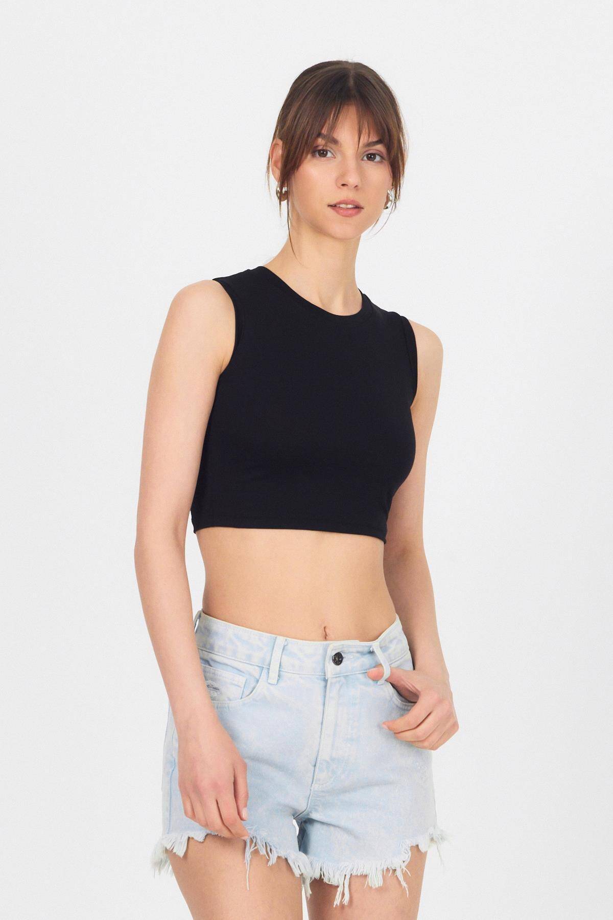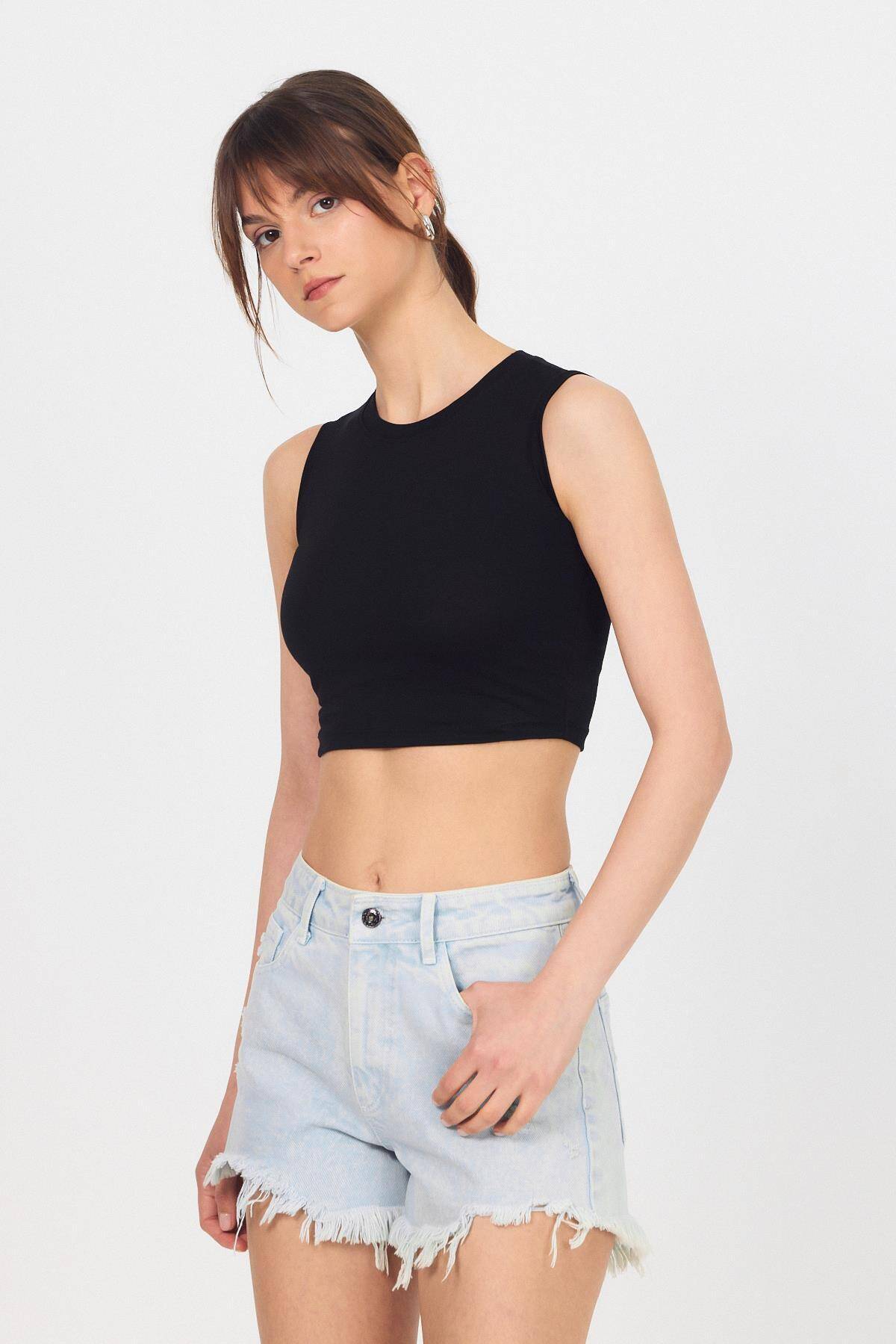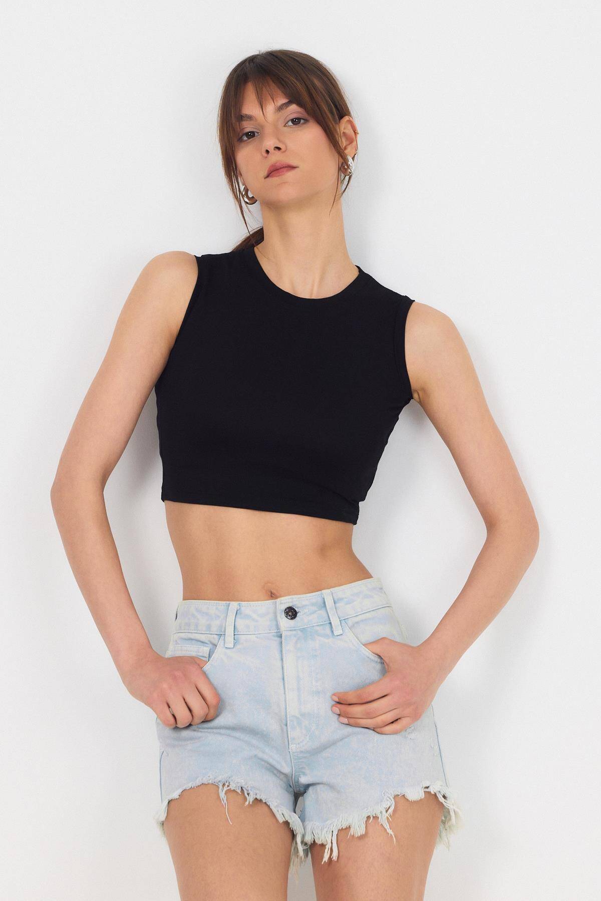 Siyah Bisiklet Yaka Crop Atlet 9189M