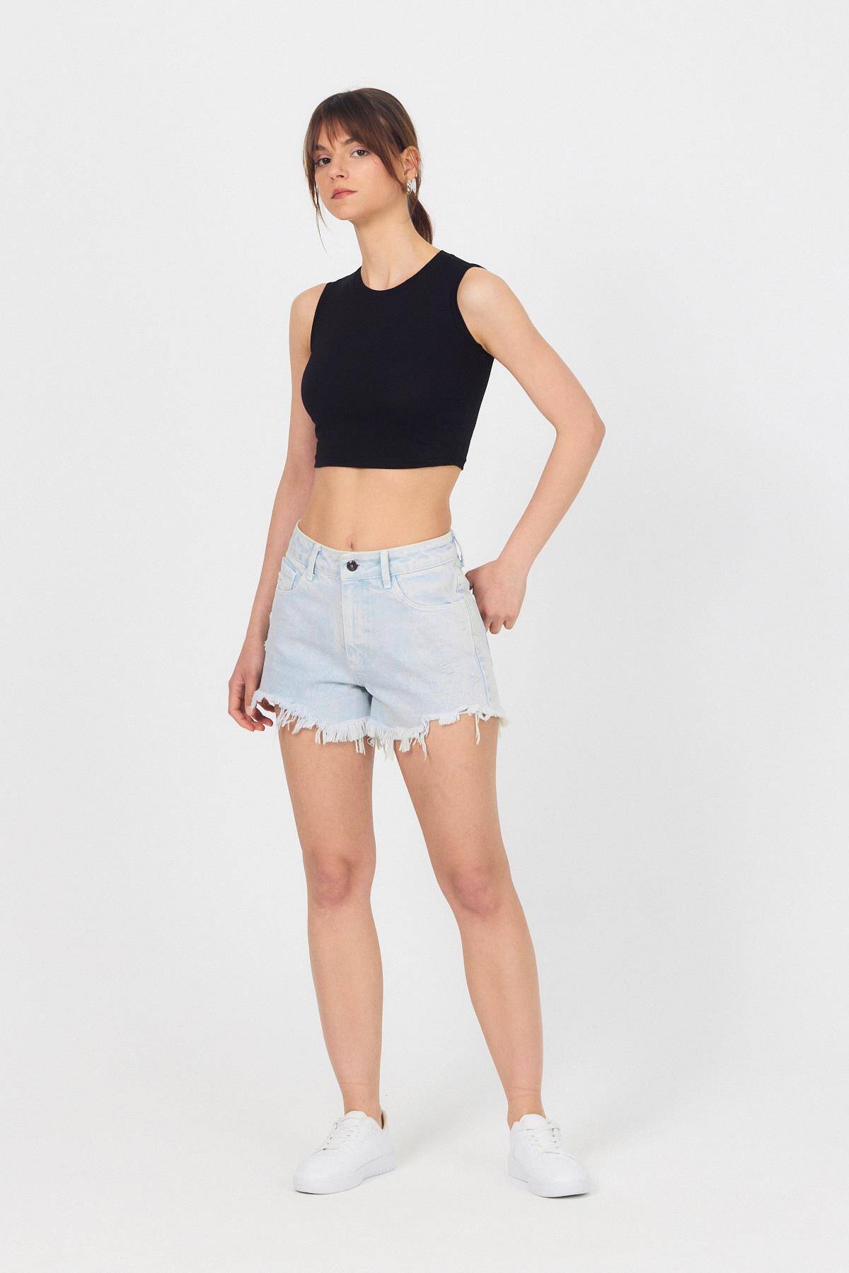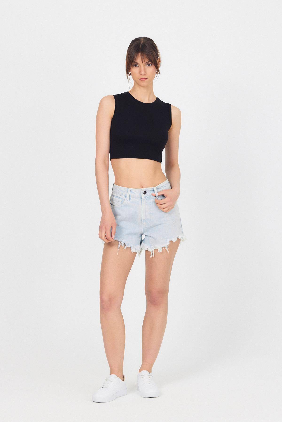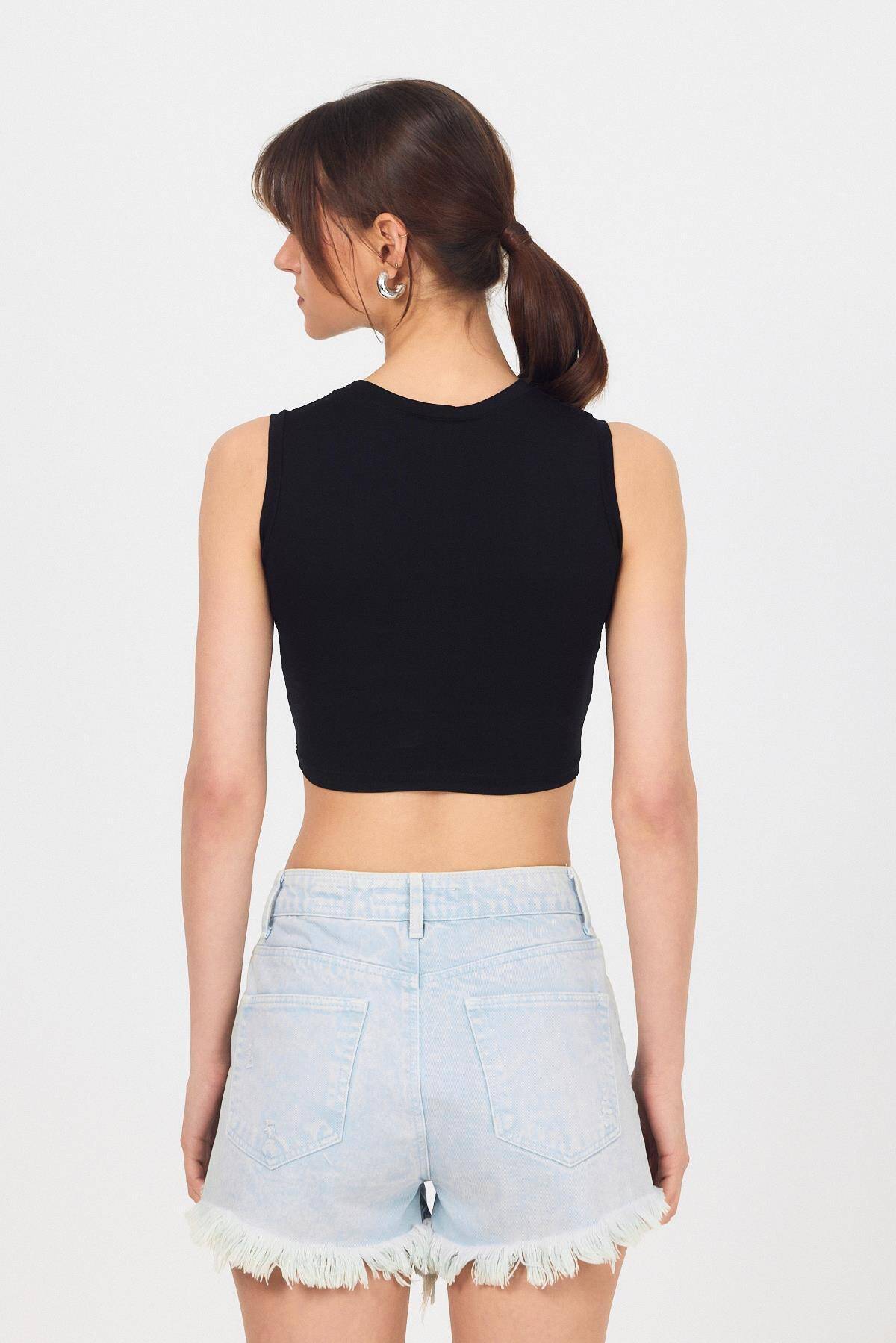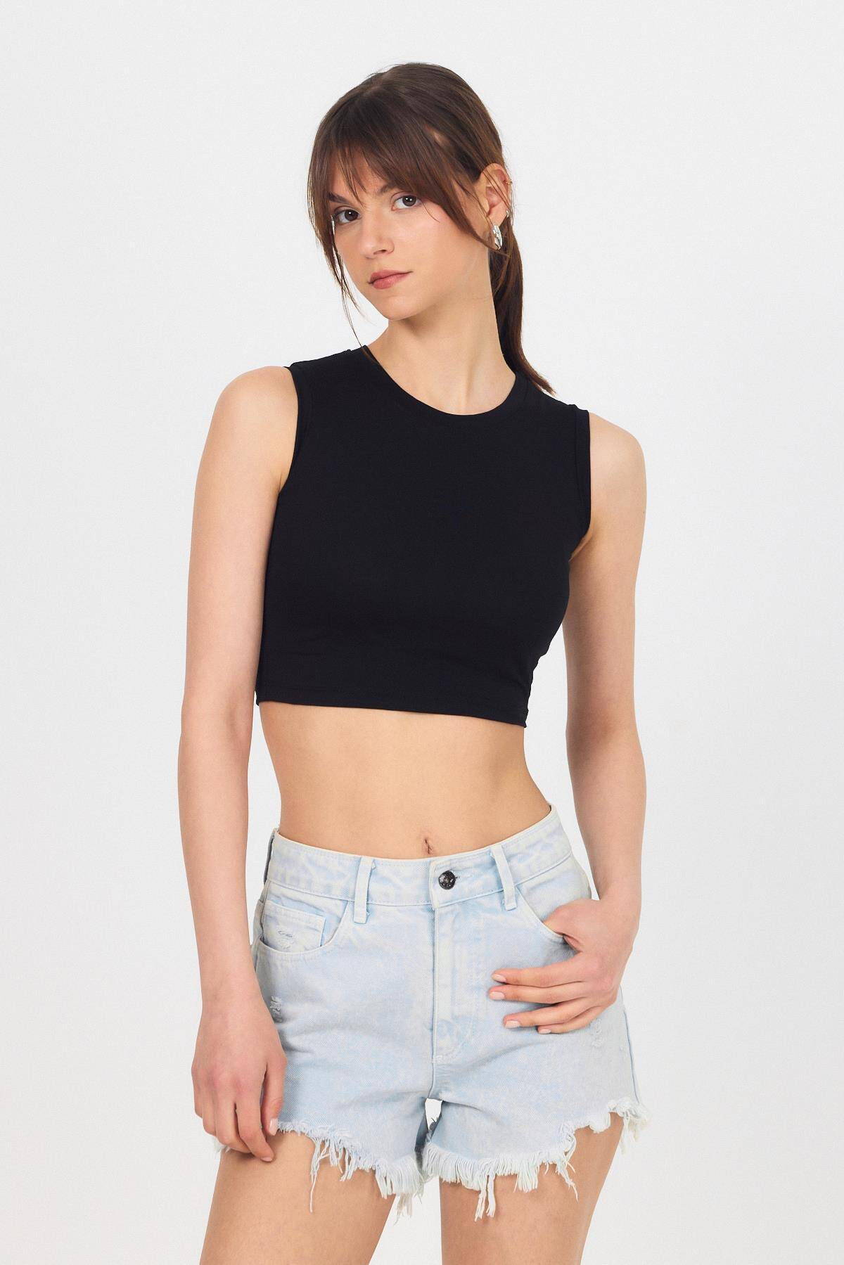 Siyah Bisiklet Yaka Crop Atlet 9189M