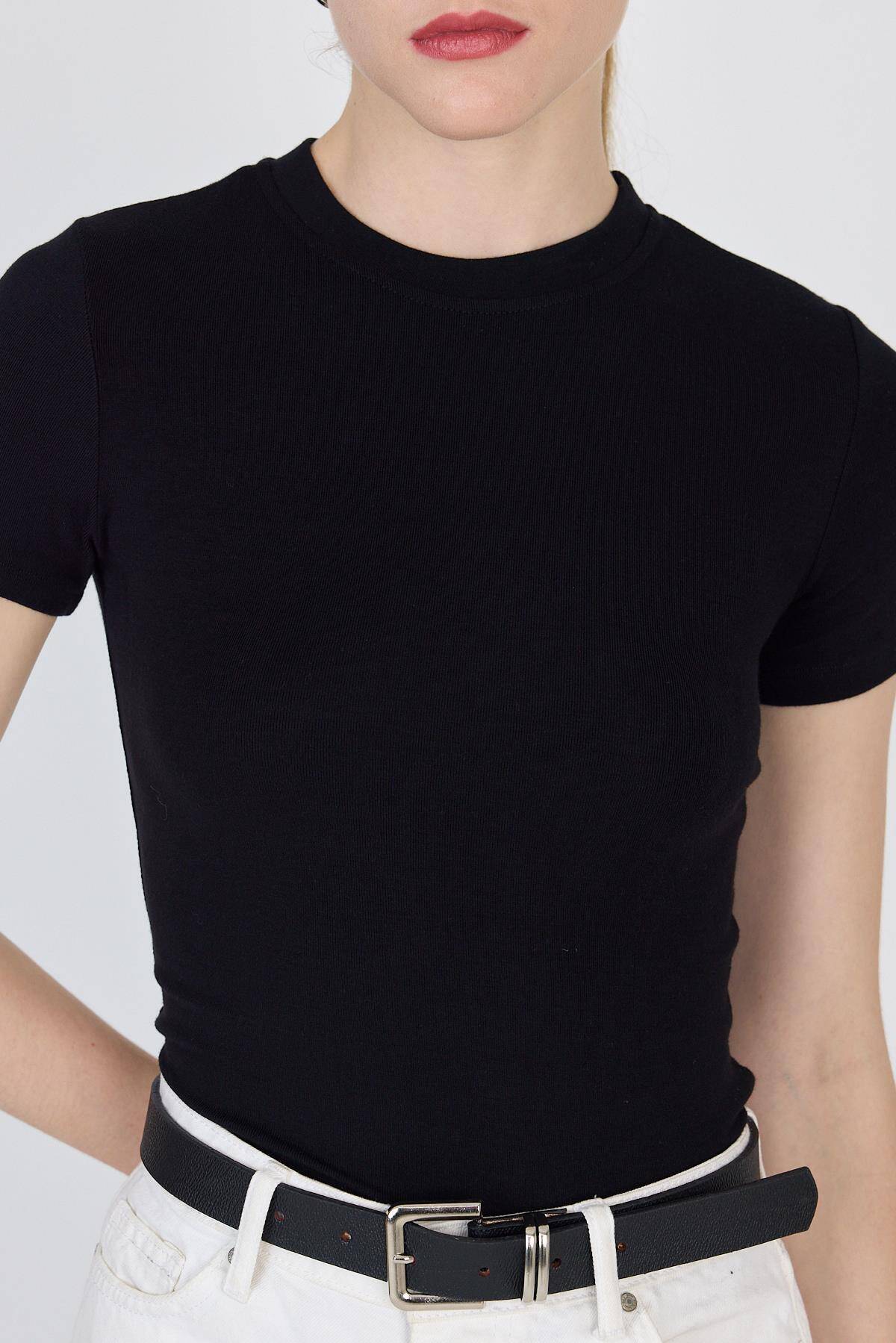 Siyah Bisiklet Yaka Viskoz/Yumuşak Kumaş Slim Fit Tişört 1468