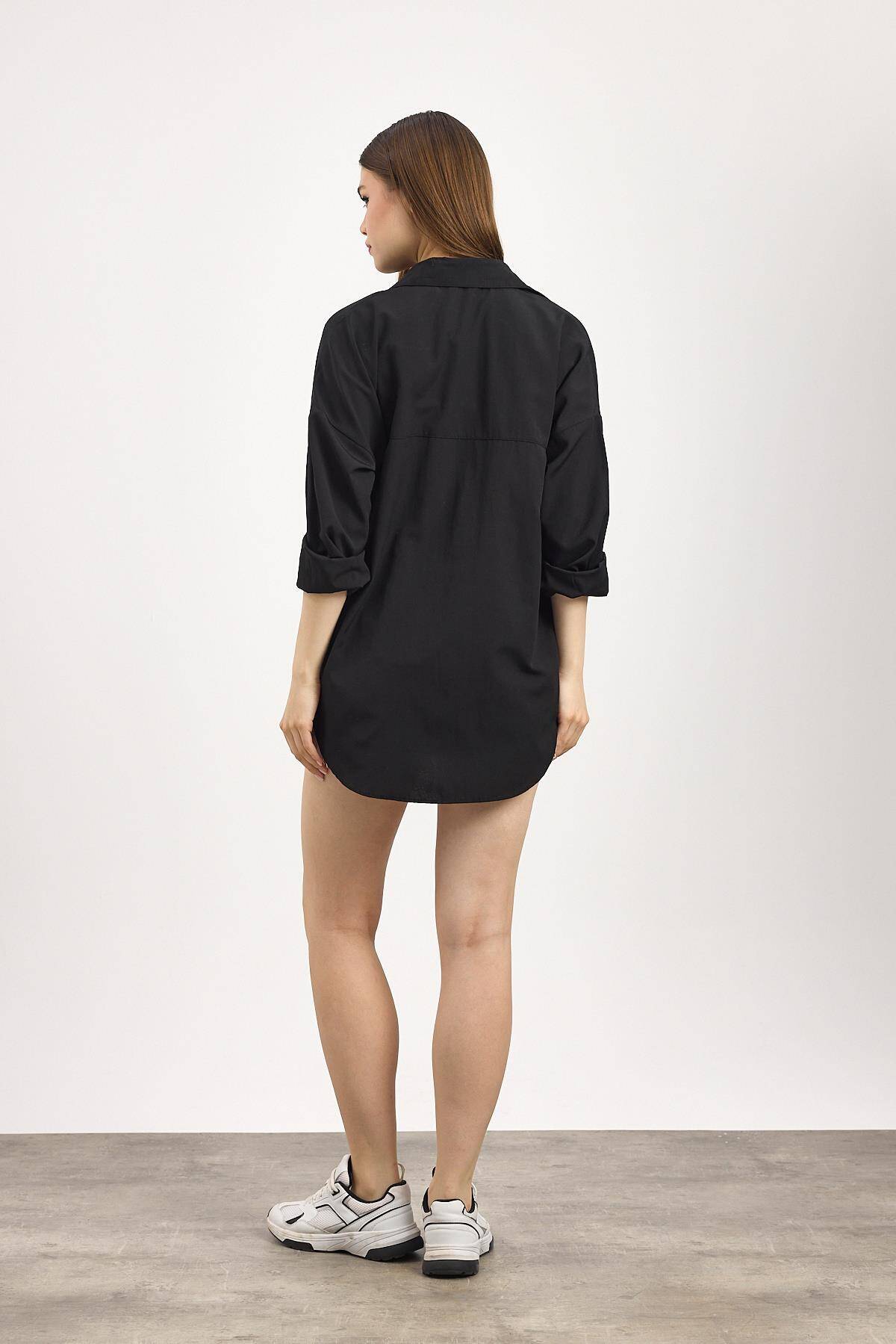Siyah Çift Cepli Oversize Uzun Basic Gömlek TCR 6256A