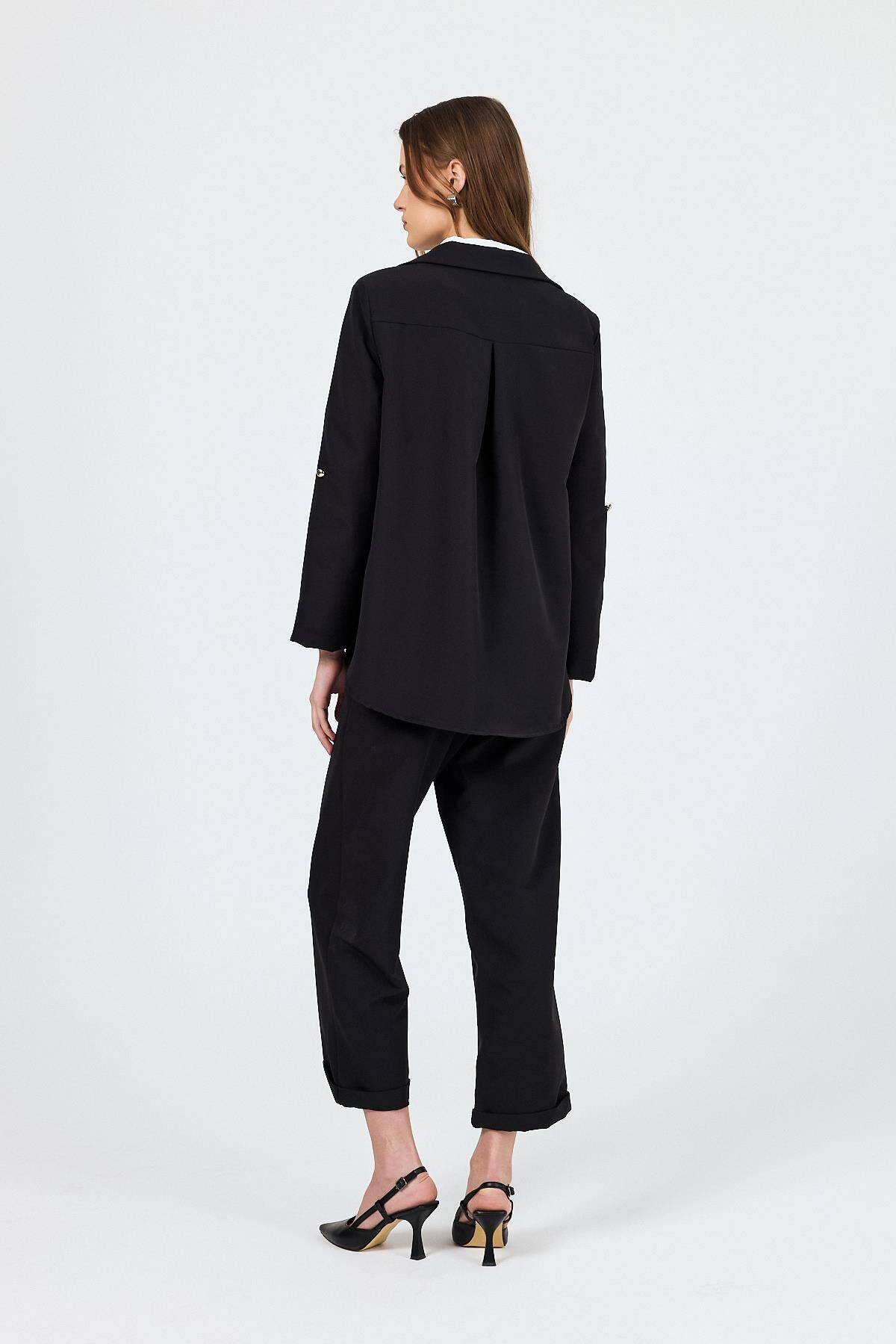 7149A Belden Bağlamalı Uzun Kaşe Kaban Siyah