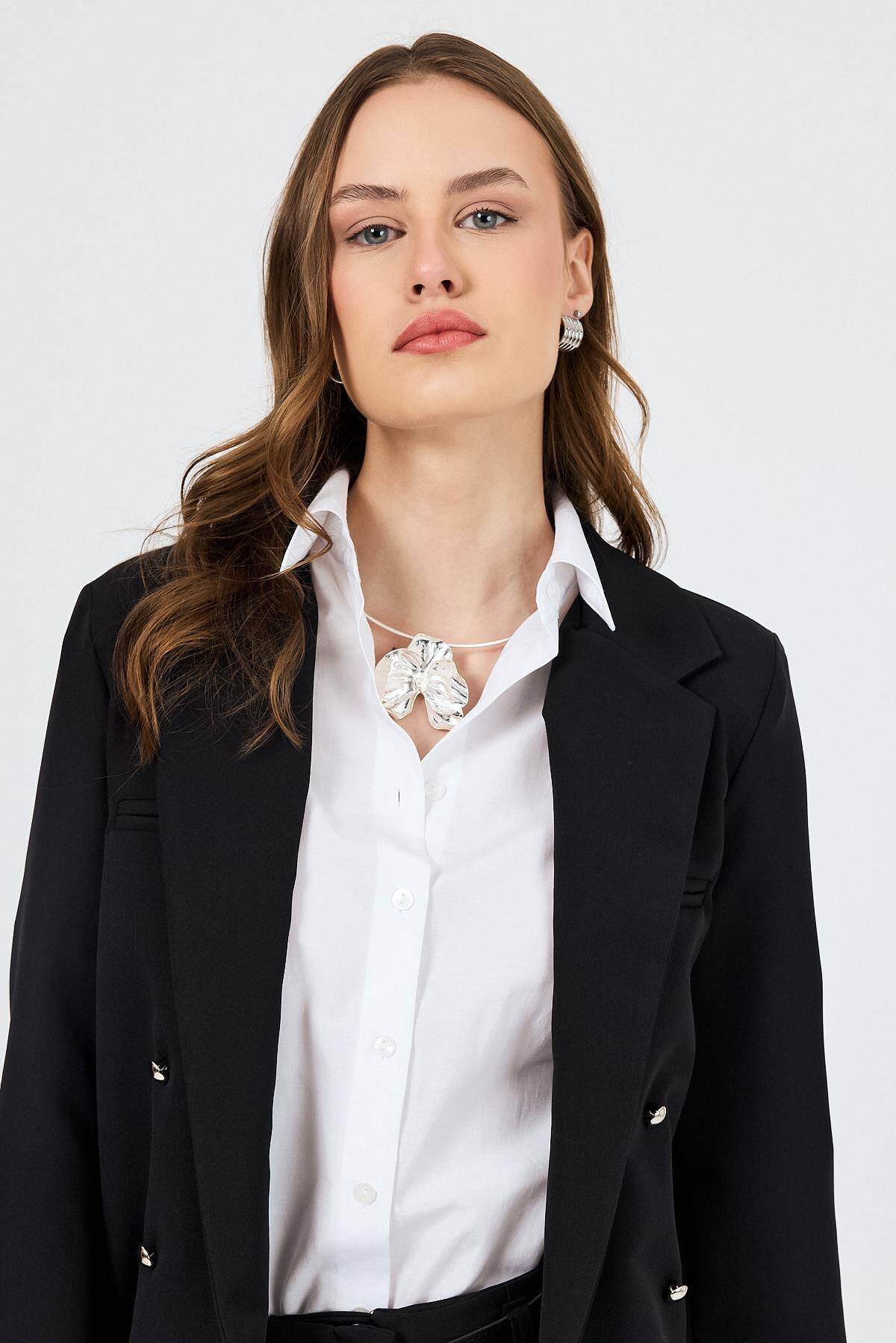 Siyah Çift Düğmeli Kemerli Takım 6670A