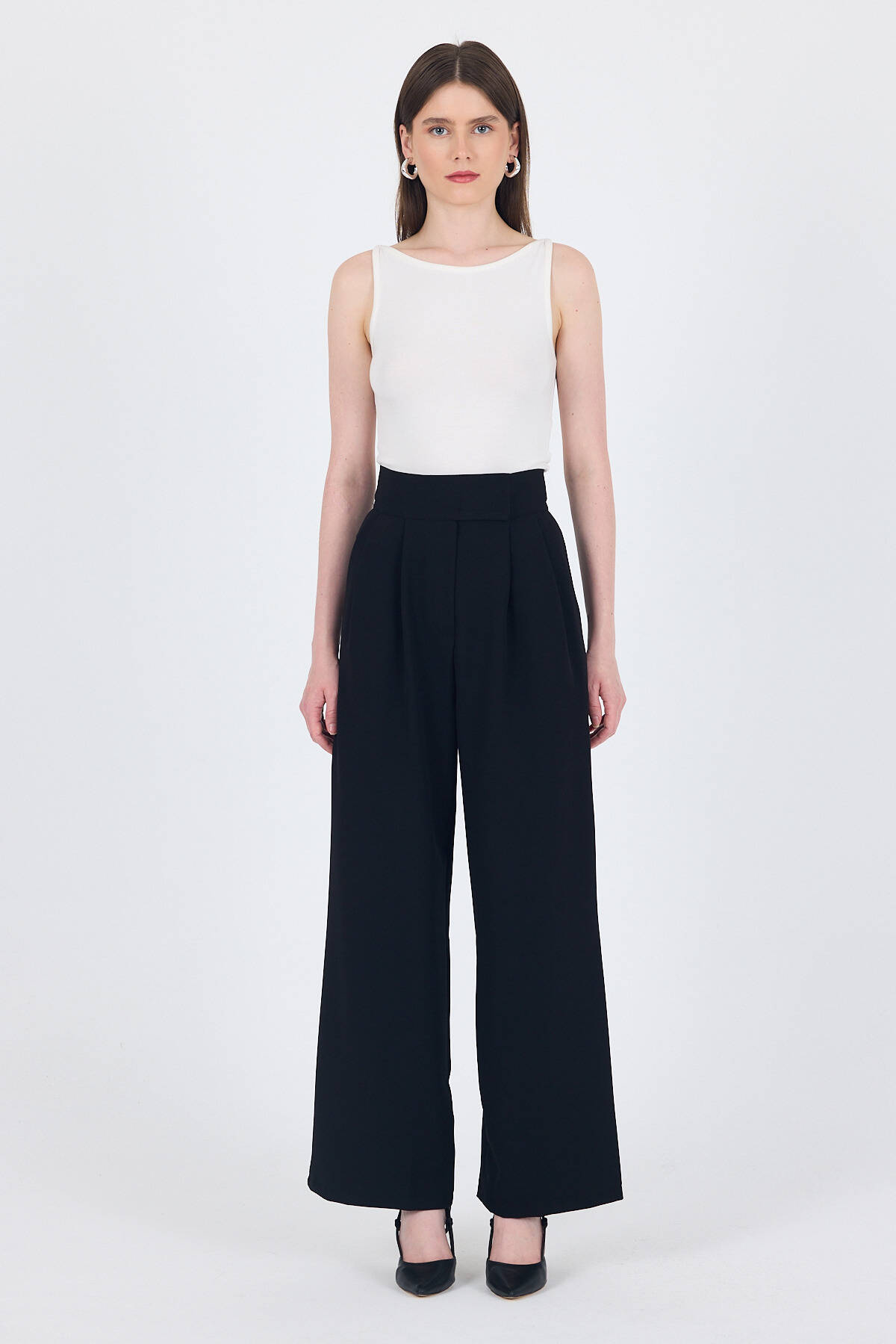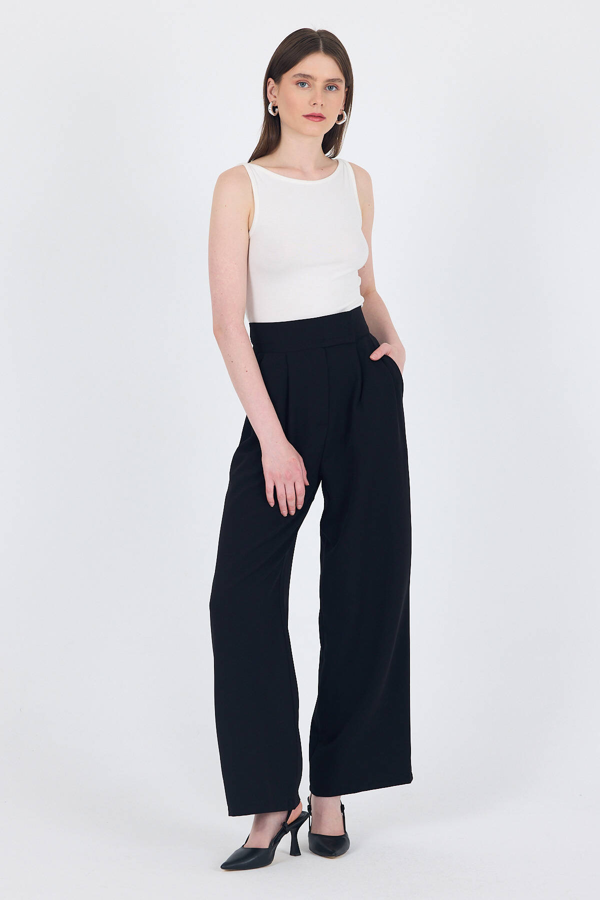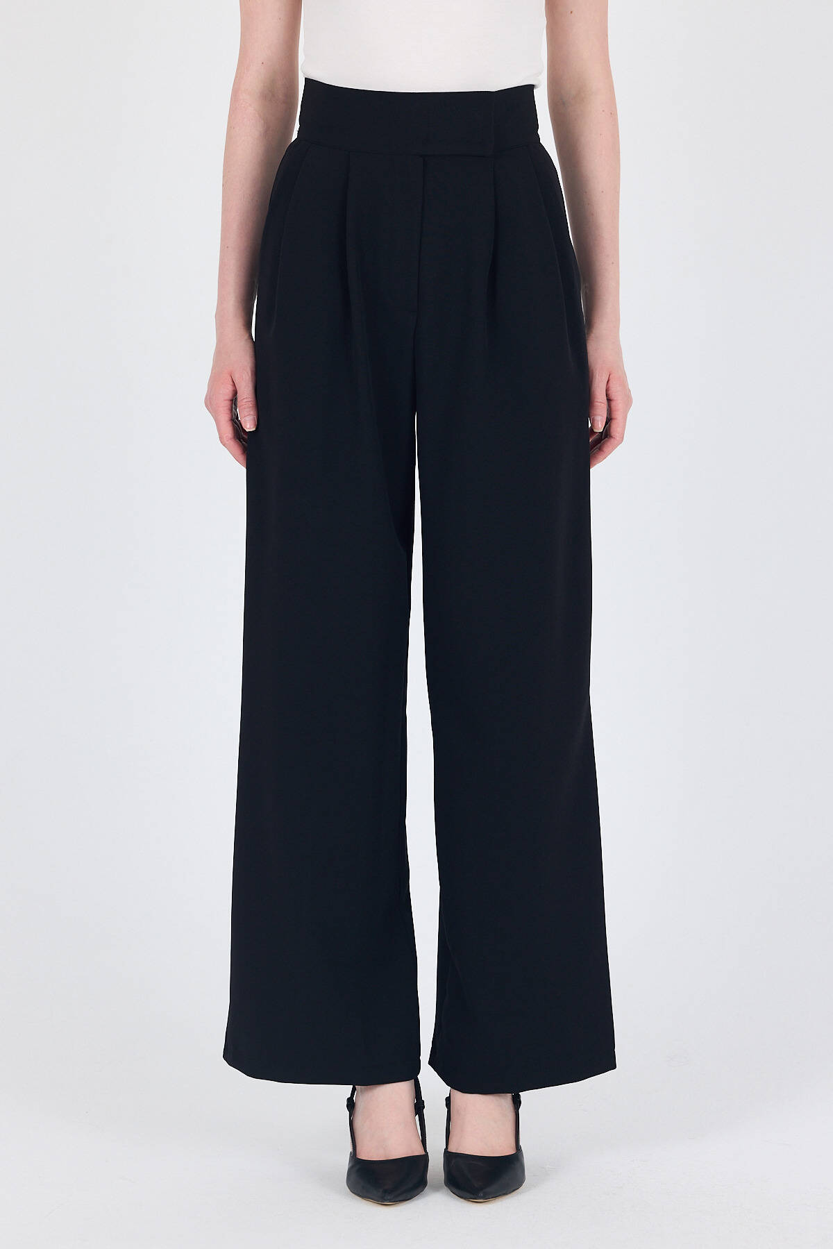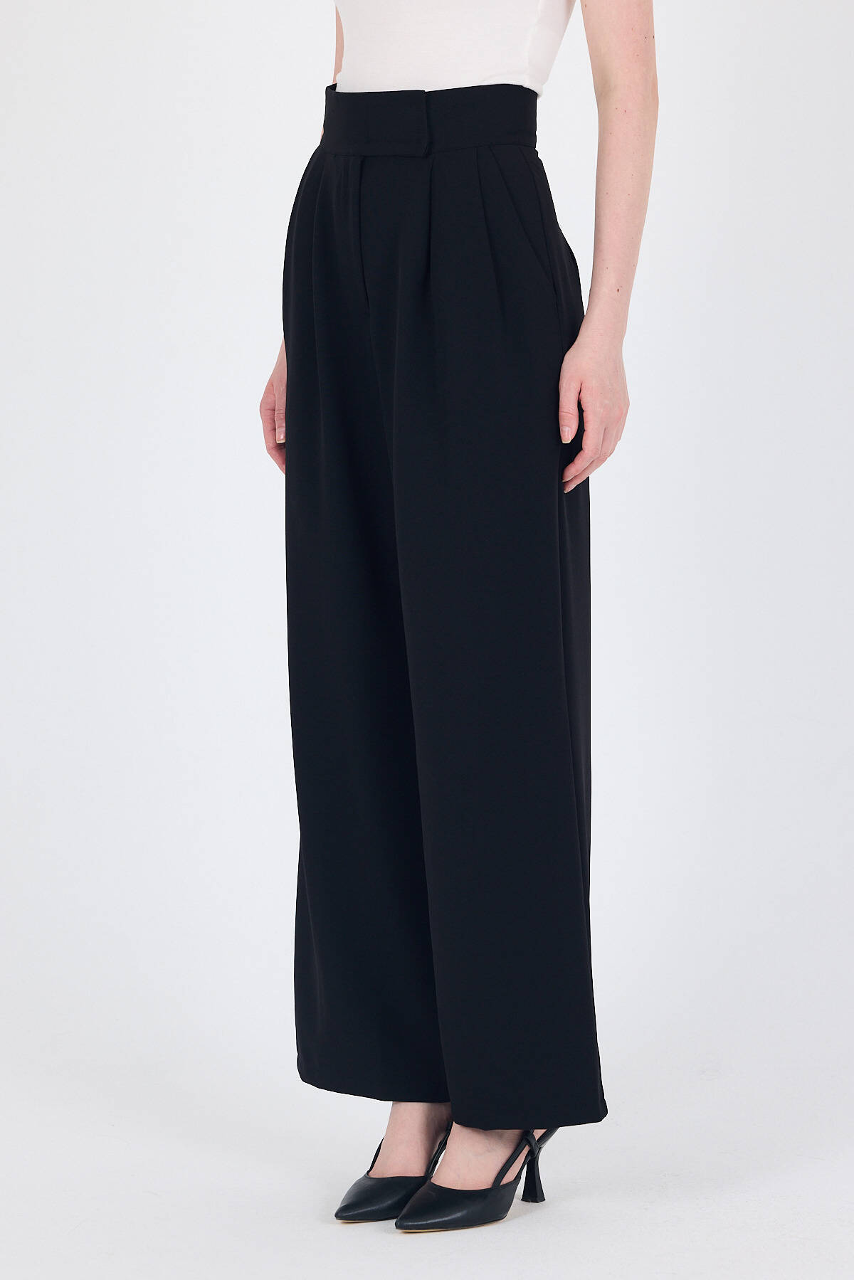 Siyah Cırt Kapama Detaylı Palazzo Pantolon 1615