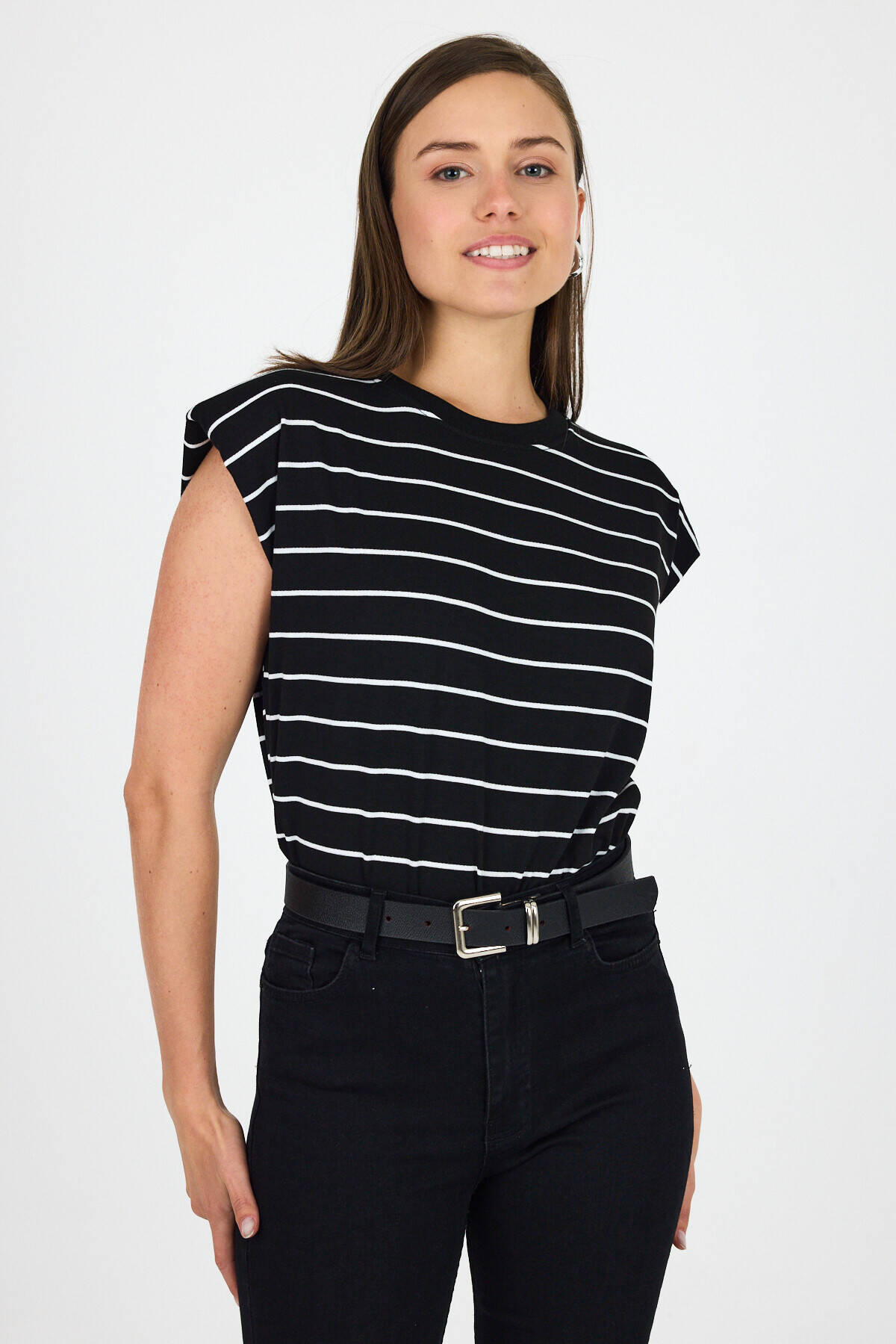 Siyah Çizgili Bisiklet Yaka Vatkalı Pamuklu Tişört 1761
